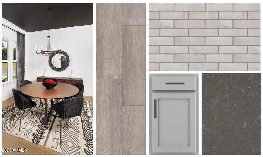 This home is elevated by designer finishes from the Foundry Collection, bringing repurposed charm and urban character to life. Think vintage-inspired details, warm textures, and contemporary contrast--where matte black accents, rich cabinetry, and refined surfaces create a bold yet welcoming atmosphere. The gourmet kitchen is the heart of the home, showcasing 42'' gray shaker cabinets with black hardware, sleek quartz countertops, and a stylish subway tile backsplash that nods to classic industrial design. Durable plank-style tile flooring flows through the main living areas, while plush carpeting adds comfort and warmth to the bedrooms.