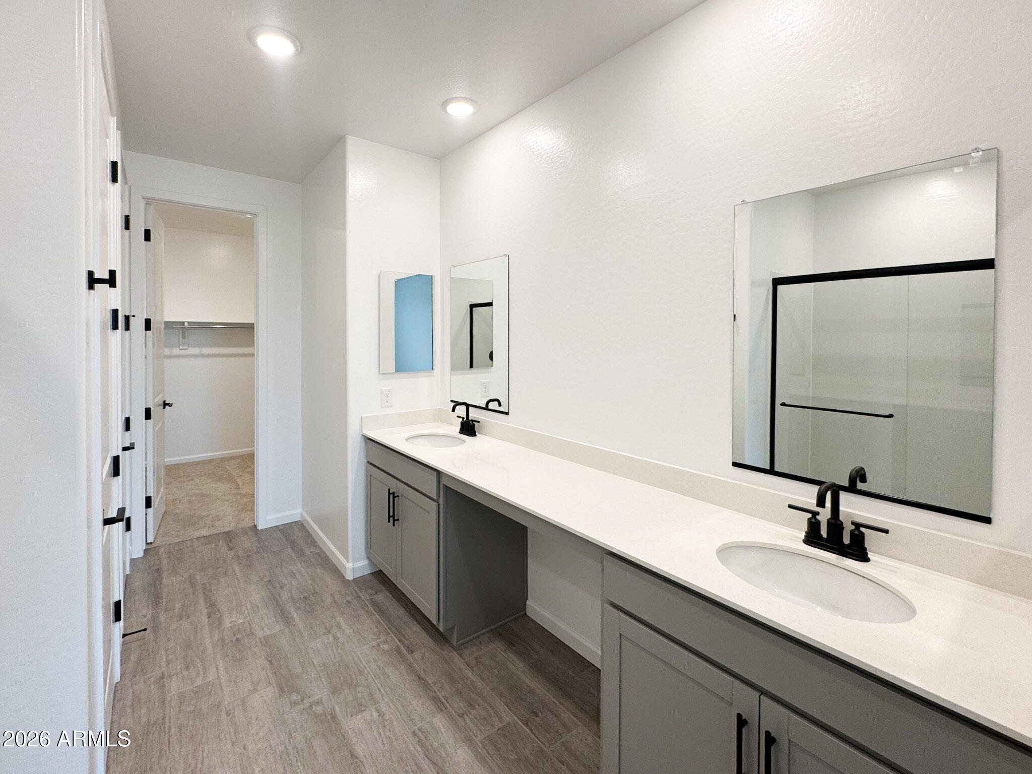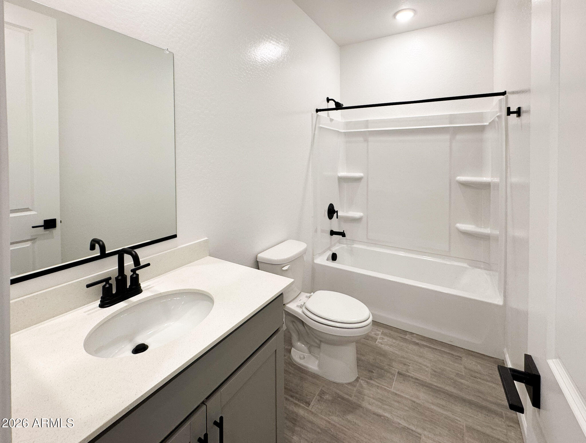 Step inside to an open-concept design where modern finishes create a cohesive, elevated feel. The kitchen makes a bold statement with our Foundry Collection details, featuring 42'' Grey cabinetry, Black Bronze accents, Pro Storm quartz countertops, and a striking 3'' x 10'' Bobo Cinder tile backsplash. Durable 7'' x 22'' wood-look plank tile runs throughout the main living areas, while plush carpeting in the bedrooms and den creates comfortable, quiet retreats.