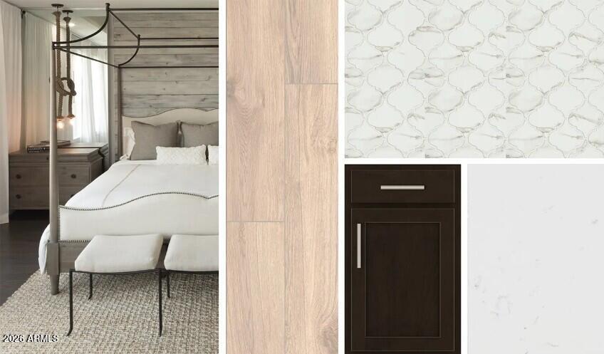 Welcome to Stonebridge Manor, Waddell's premier brand-new community! The stunning Lavender floorplan sits on a corner lot and is designed for modern living, offering 2,222 square feet of thoughtfully crafted space with 4 bedrooms, a guest retreat, 3 full bathrooms, and a 2.5-car garage. Ideal for entertaining and everyday comfort, the expansive kitchen boasts a large island, pantry, and generous dining and great room areas. This quick move-in home radiates warmth and elegance with designer finishes from the Roosevelt Collection, featuring 8X36 light wood-look plank tile floors in the main living areas and plush carpeting in the bedrooms. The kitchen is a true centerpiece, showcasing 42'' warm brown Fairview Sarsaparilla shaker cabinets with Satin Nickel hardware, Biancone Quartz counters, and a tile backsplash, blending luxury with functionality. Fully turn-key, this home includes stainless steel applianceselectric range, microwave, dishwasher, refrigeratoras well as a white washer and dryer, 2" blinds, and a garage door opener for added convenience. Additional upgrades include 8' doors throughout, a soft water loop, and pavers at the driveway and entry, enhancing its sophisticated appeal. The spacious great room features a 4-panel sliding glass door that seamlessly extends to the covered patio and backyard, perfect for embracing indoor-outdoor living. Thoughtfully designed with high-end finishes and practical upgrades, the Lavender plan is the perfect blend of style, comfort, and convenienceready to welcome you home! Spectacular Mountain Views! Minutes from Prasada in a master-planned community featuring Walking Trails, Greenbelts, Neighborhood Park with Playground, Basketball Court, Bocce Ball, and Corn Hole. Conveniently located near the 303 & Northern Pkwy. Top rated schools, shopping and dining!