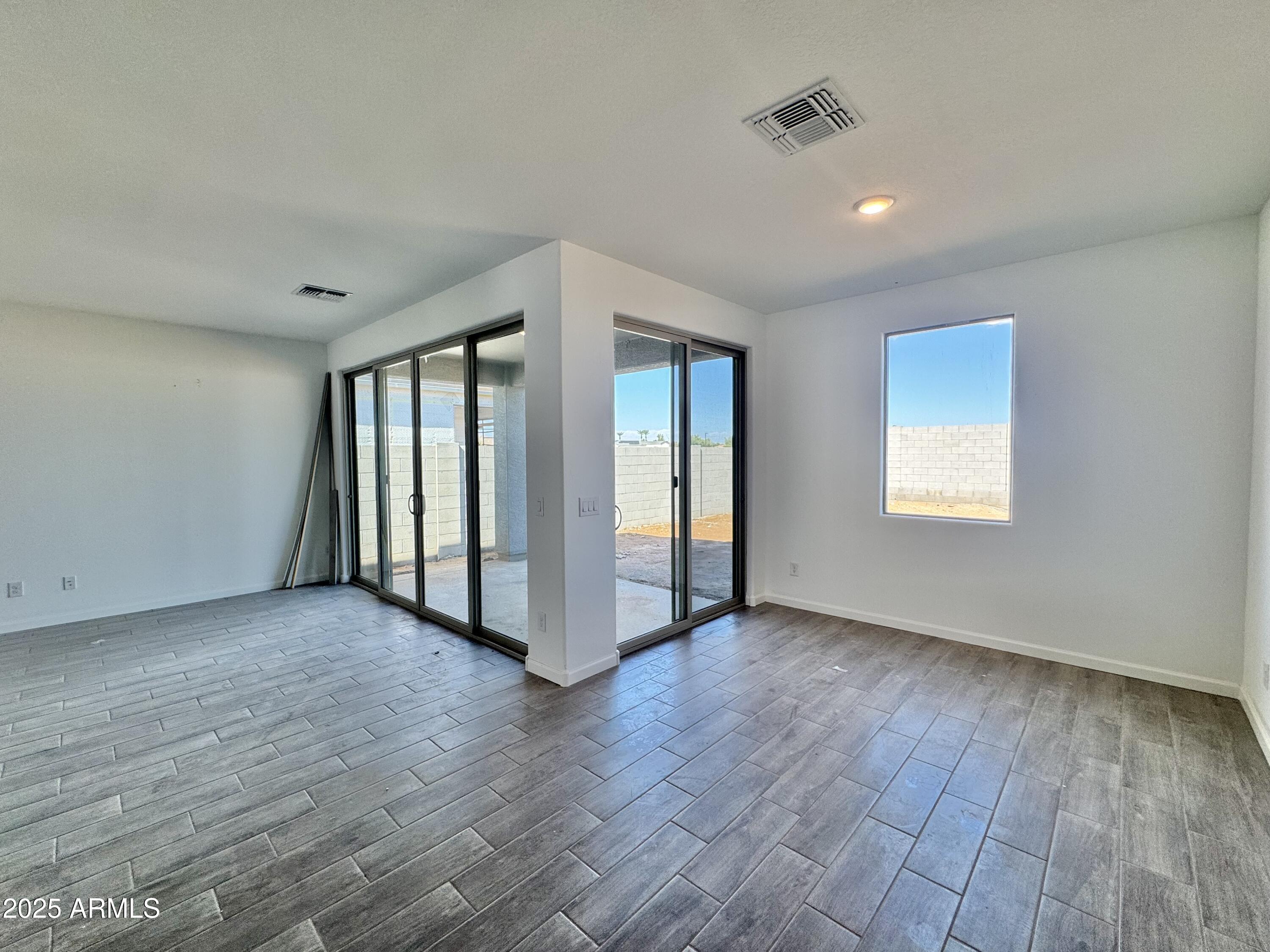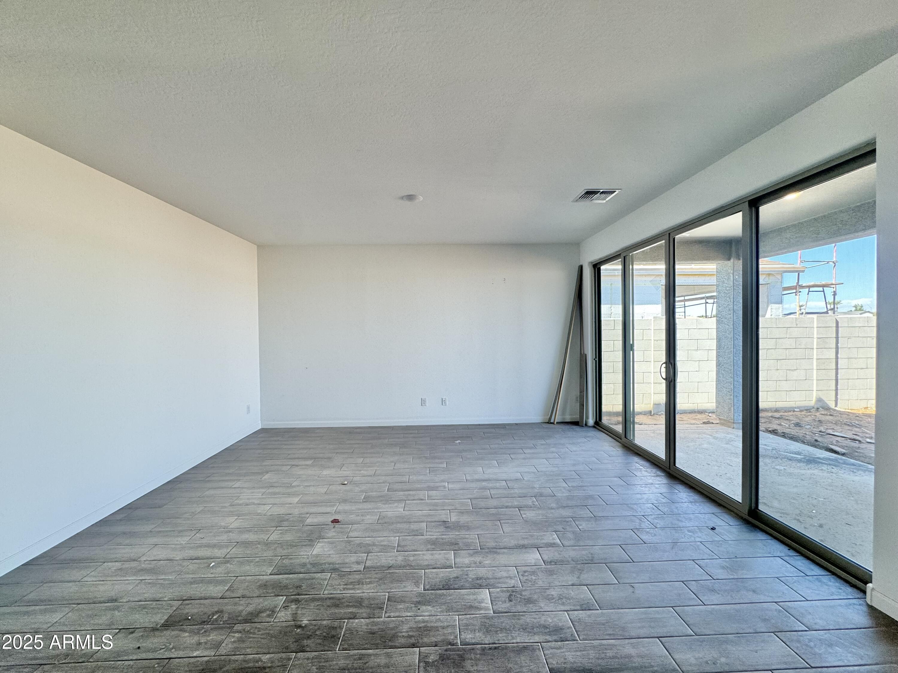 Additional highlights include 7 "x 22 " plank tile flooring in the main living areas, plush carpeting in the bedrooms, and a paver driveway and entry that enhance curb appeal. Thoughtful upgrades such as a soft water loop, blinds, and a garage door opener ensure effortless move-in readiness. The covered patio, accessible through the 4-panel sliding glass door, invites you to enjoy Arizona's beautiful weather year-round.