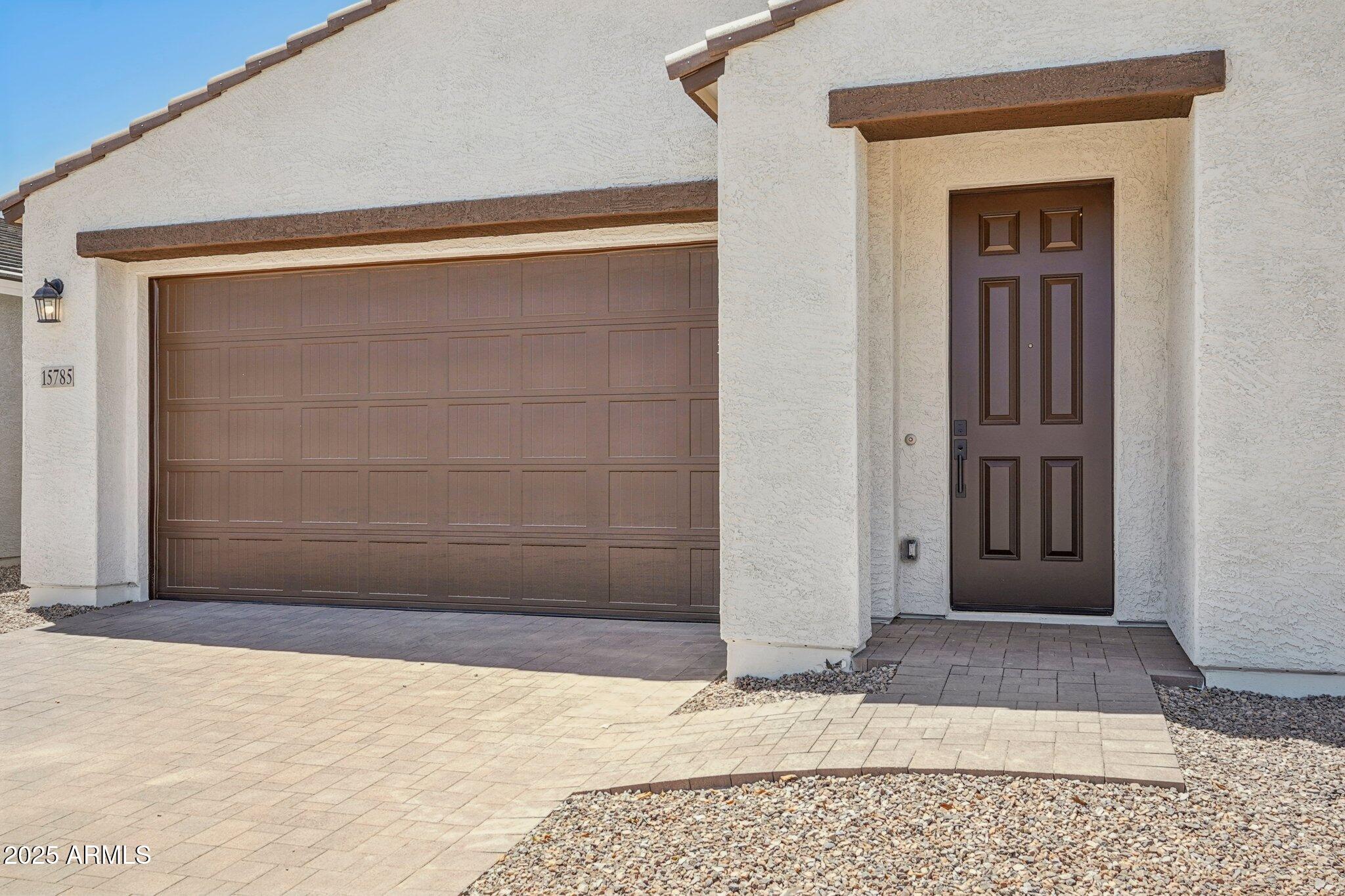 Curb appeal is elevated with pavers at the driveway and entry, completing the stylish and welcoming exterior.