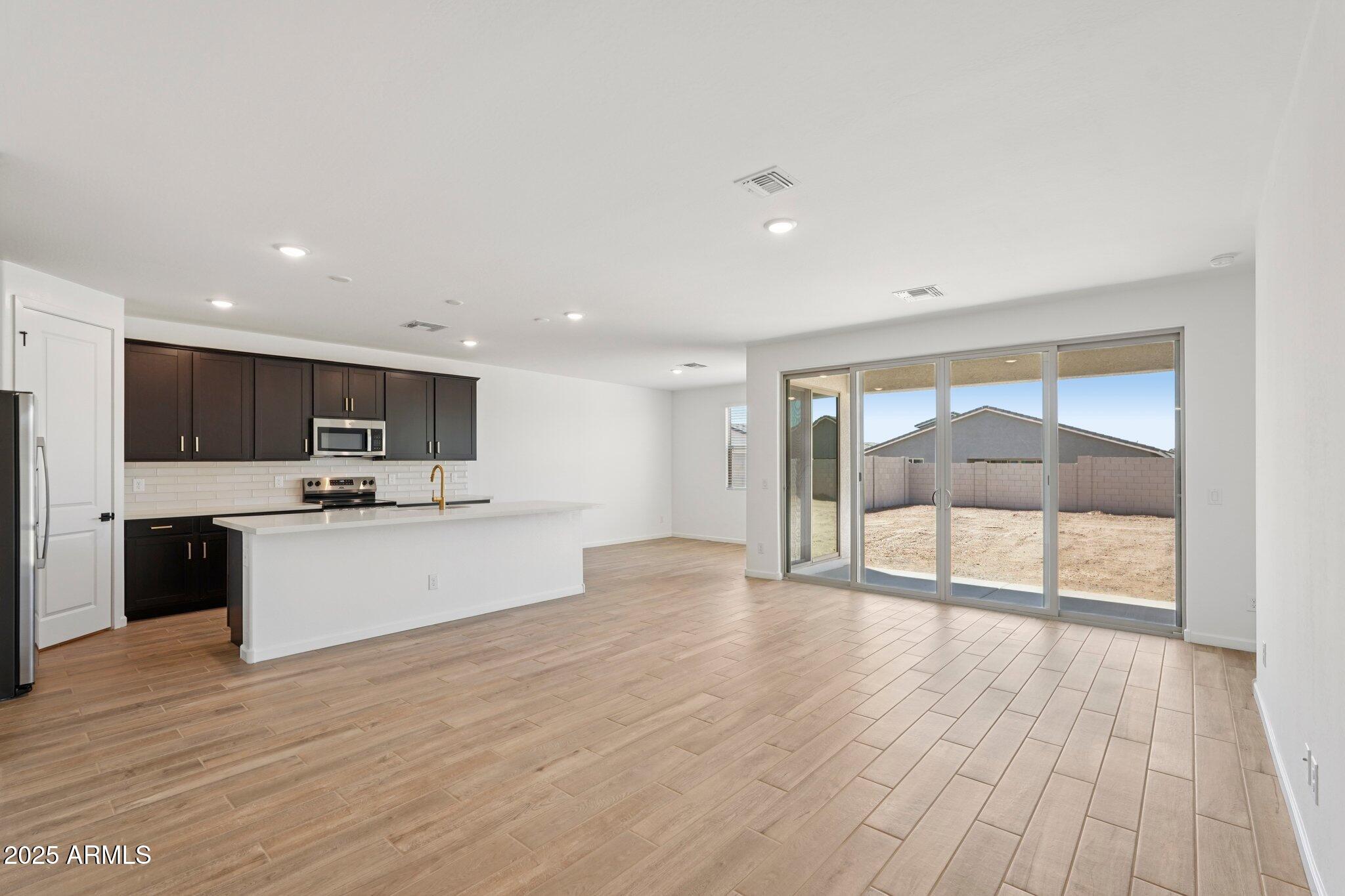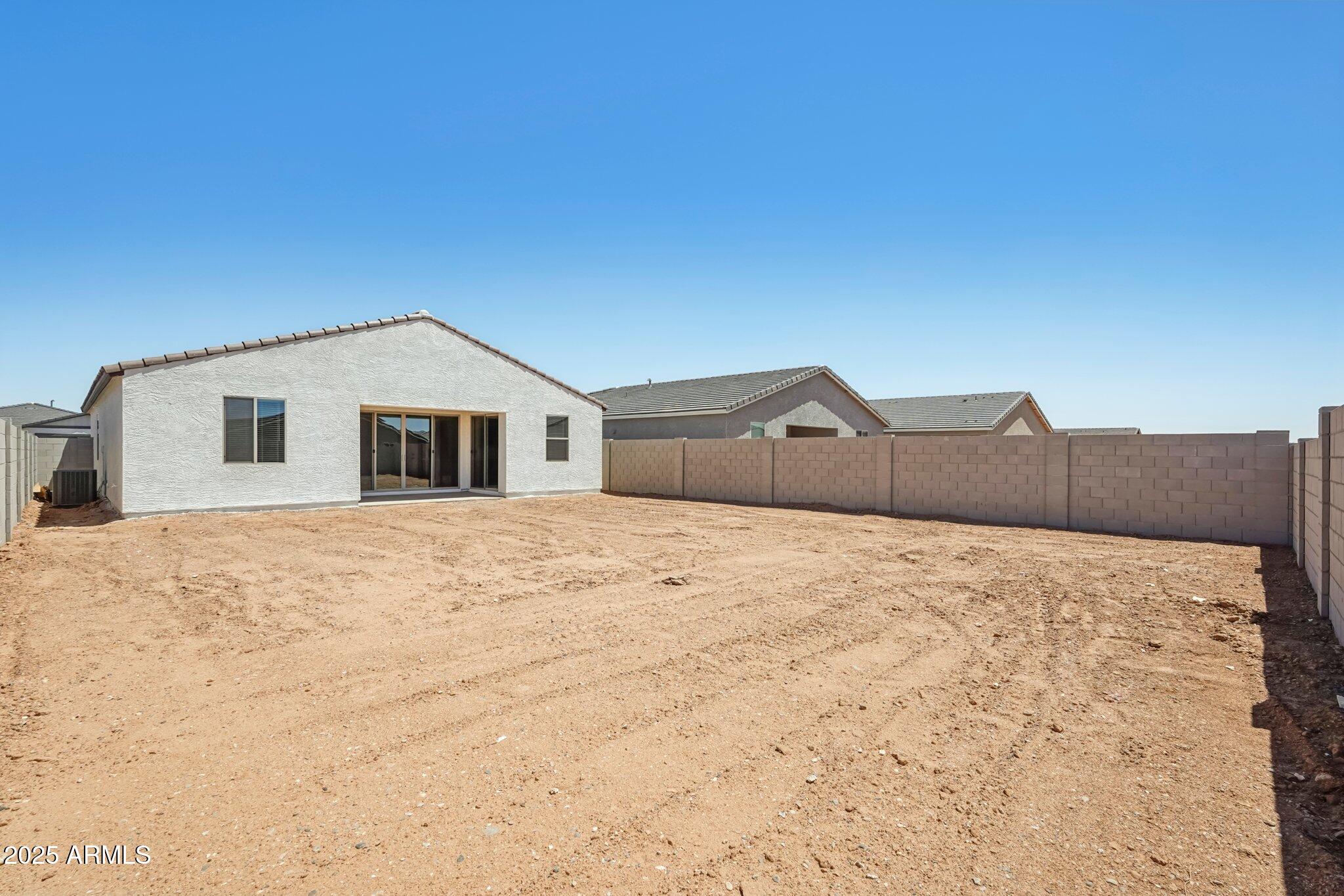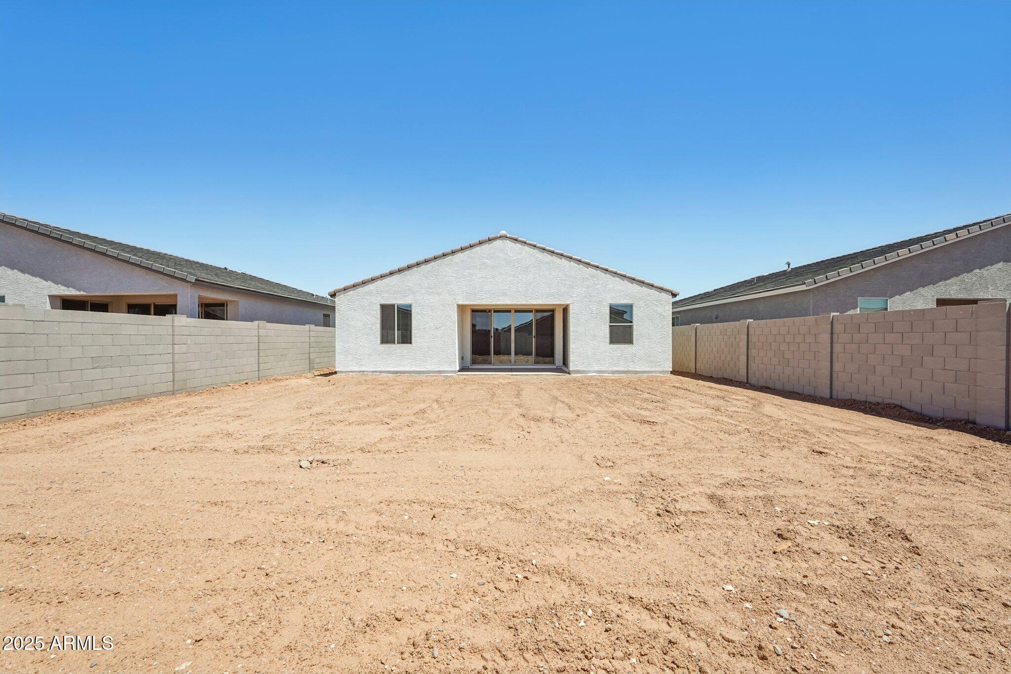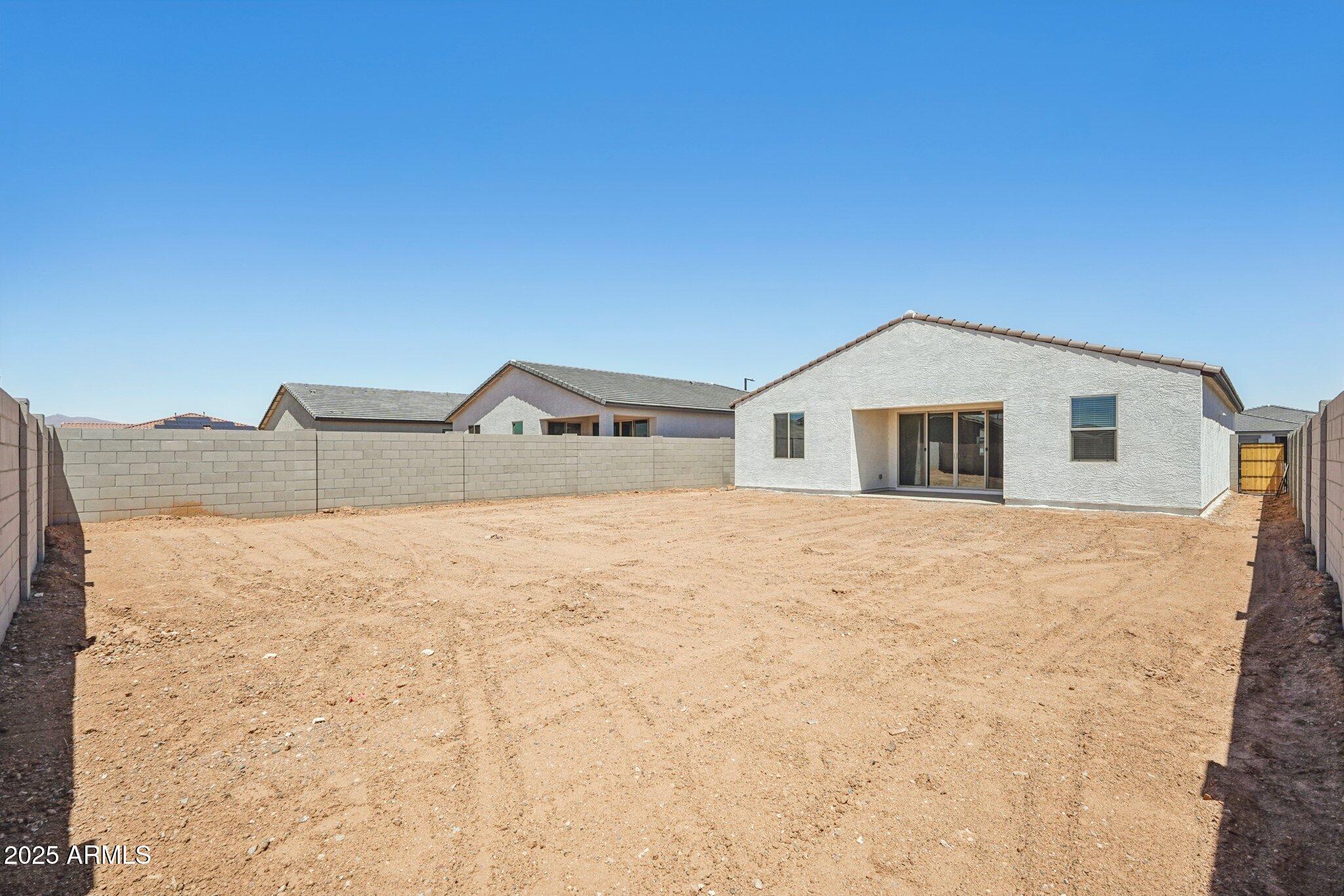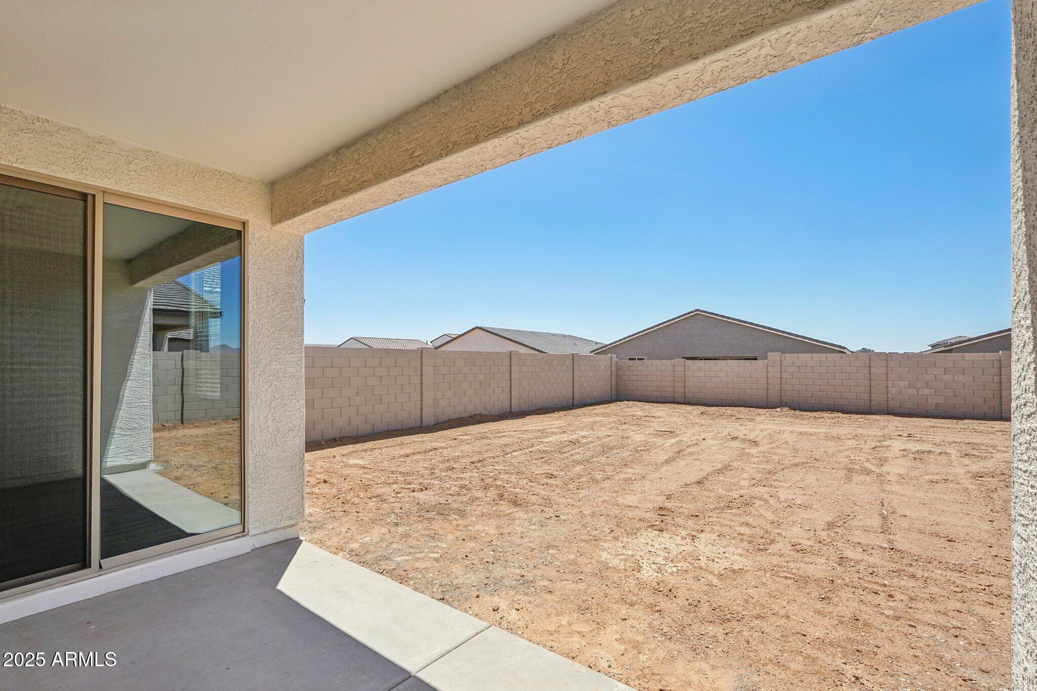 Step into the spacious great room, where 8' interior doors and a 4-panel center sliding glass door create a seamless connection between indoor and outdoor living. The generously sized backyard is ideal for entertaining, play, or relaxing under the Arizona sky.