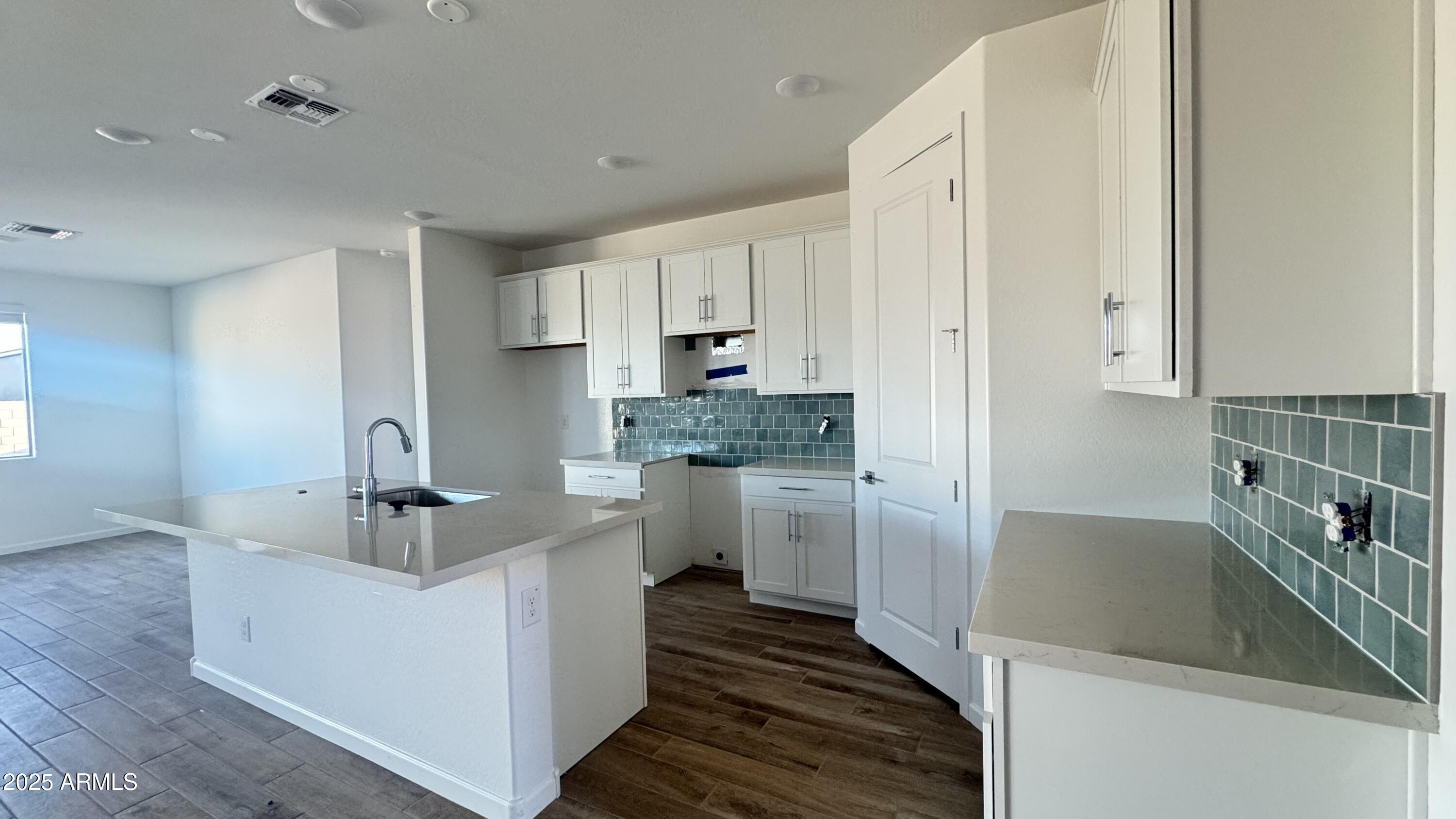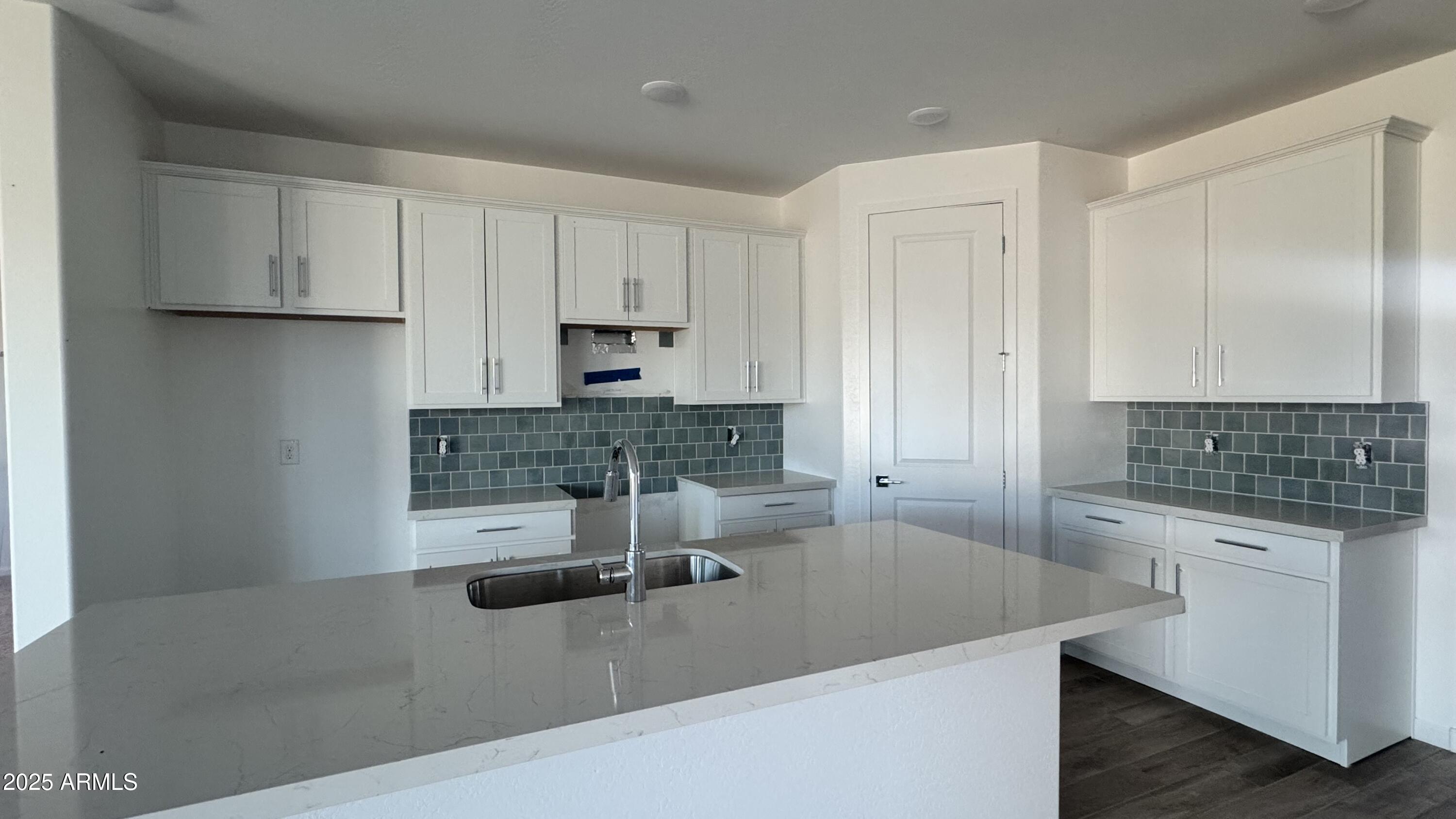 Welcome to The Marigold, a stunning single-story home spanning 1,779 square feet. This thoughtfully designed residence features 3 spacious bedrooms, 2 elegant bathrooms, and a versatile den--perfect for a home office or playroom. The sleek Modern Desert elevation adds curb appeal, while the 2-car garage provides ample storage. Step inside to discover an inviting open layout, highlighted by a great room that seamlessly connects to covered patio through a stunning 4-panel sliding glass door, perfect for indoor-outdoor living. The spacious kitchen boasts 42'' white shaker cabinets with gun metal pull hardware and a stainless satin faucet, complemented by a large island with carrara breeze quartz countertop island that serves as the heart of the home. The kitchen is the picture of a beauty with a calming mosaic patterned backsplash. Gorgeous plank tile flooring enhances the flow and aesthetic throughout the living spaces. This home also is sure to impress when you drive up to the beautifully paved entry, driveway and walkway. All of those finishes the sophistication of this beauty! Complete with washer, dryer, refrigerator, 2" white faux wood blinds, garage opener and soft water loop. Experience comfort and style in The Marigold!