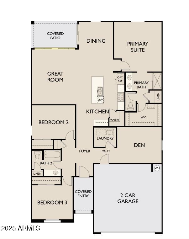 Discover the Marigold floorplan - a thoughtfully designed 1,777 sq. ft. home featuring 3 bedrooms, a den, and 2 bathrooms providing ample space for both relaxation and entertainment. Enjoy luxury touches throughout, including 8' doors, a 4-panel center sliding glass door, and plank tile flooring in main living areas.