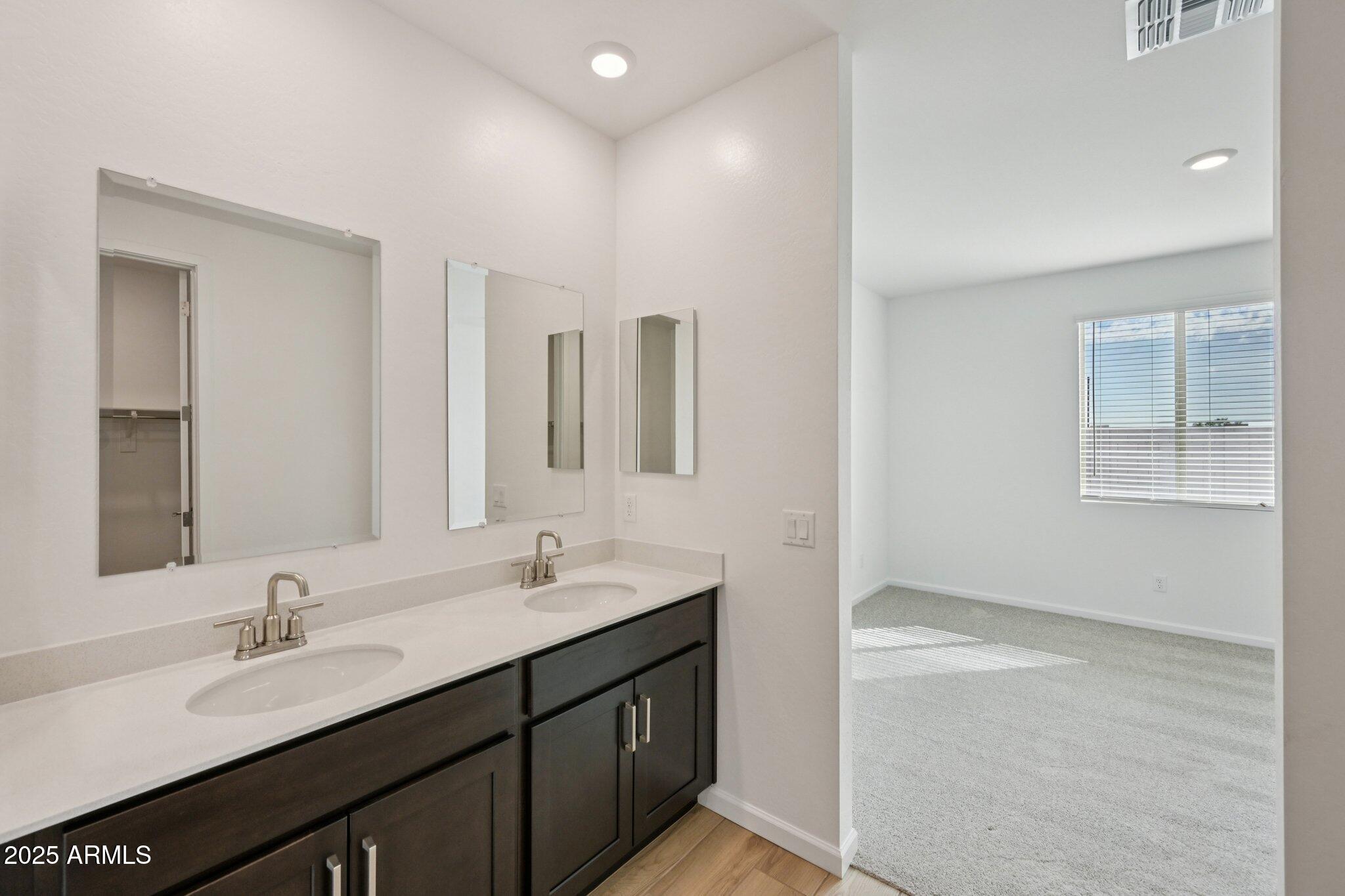 Explore the Marigold floorplan, an open concept 3 bed, 2 bath + den with a 2-car garage and Modern Desert-style exterior. Designed with the Timeless Collection by Ashton Woods Studio, this home features a 12' sliding glass door, blinds, refrigerator, laundry room, and soft water loop. Located in the gated Visara community in Surprise (163rd Ave & Visara Pkwy) with amenities including a pool, basketball court, BBQ/picnic areas, tot lot, community trails, and quick access to Loop 303 & Route 60.