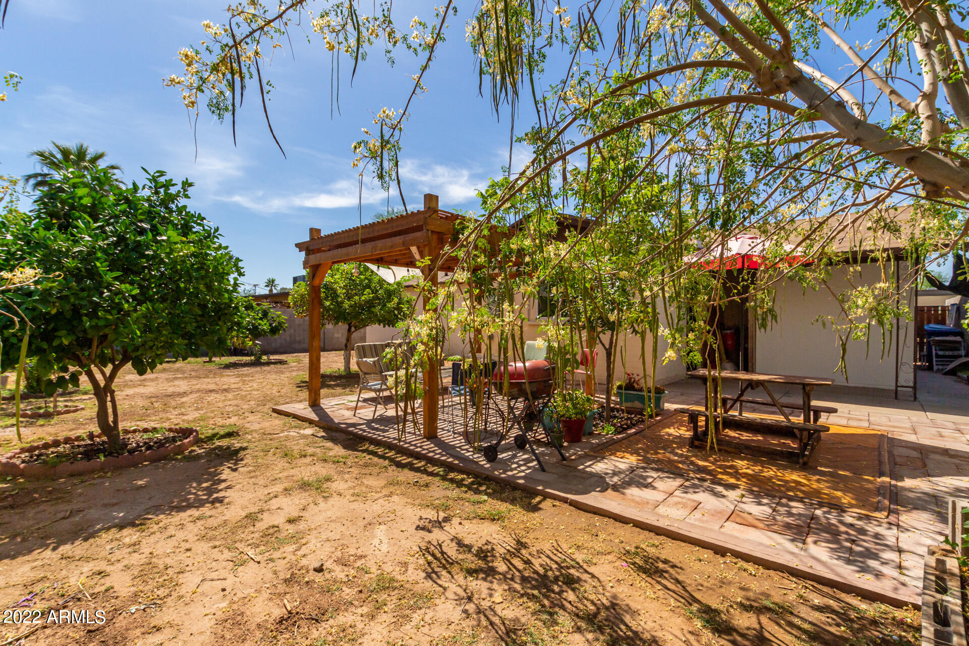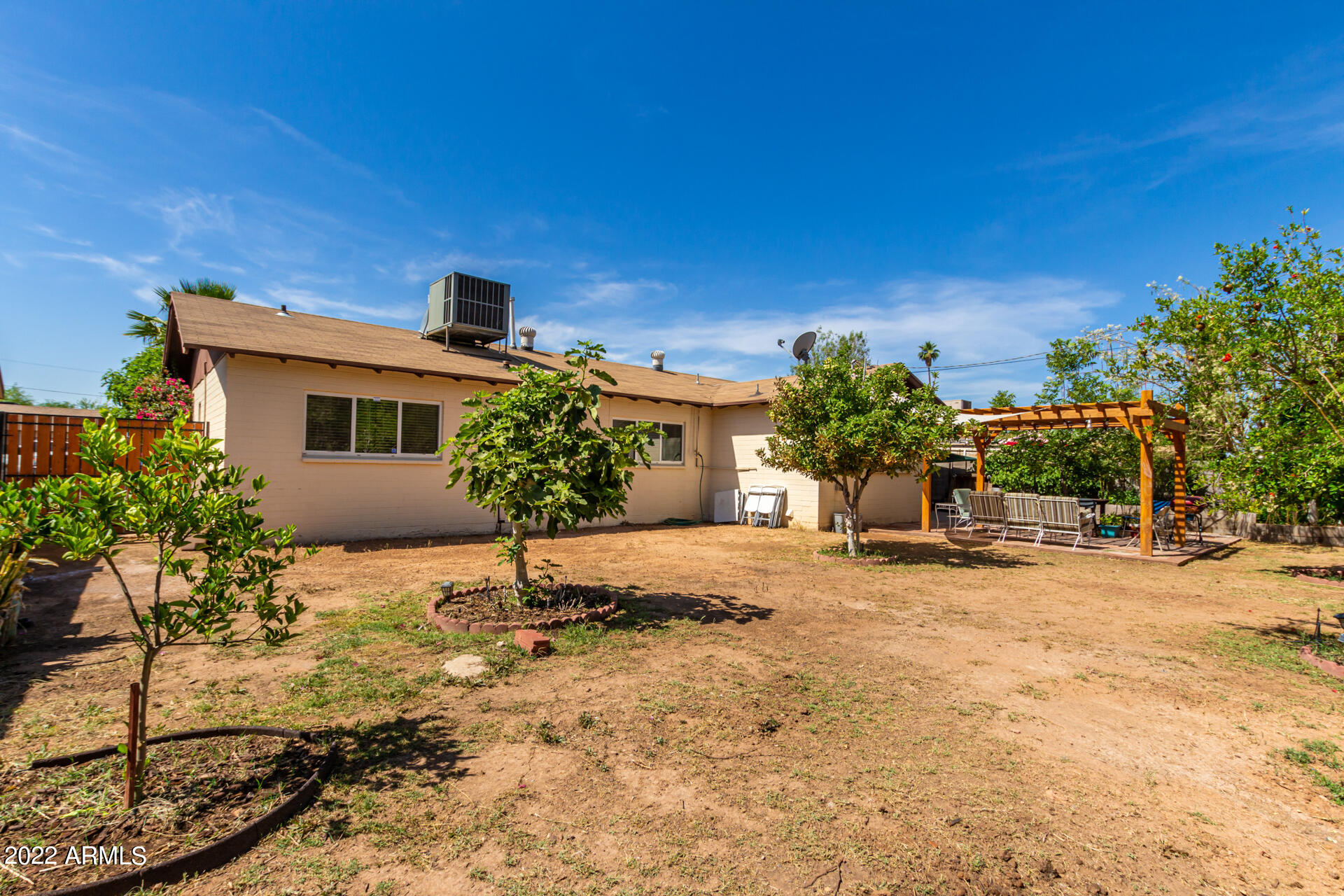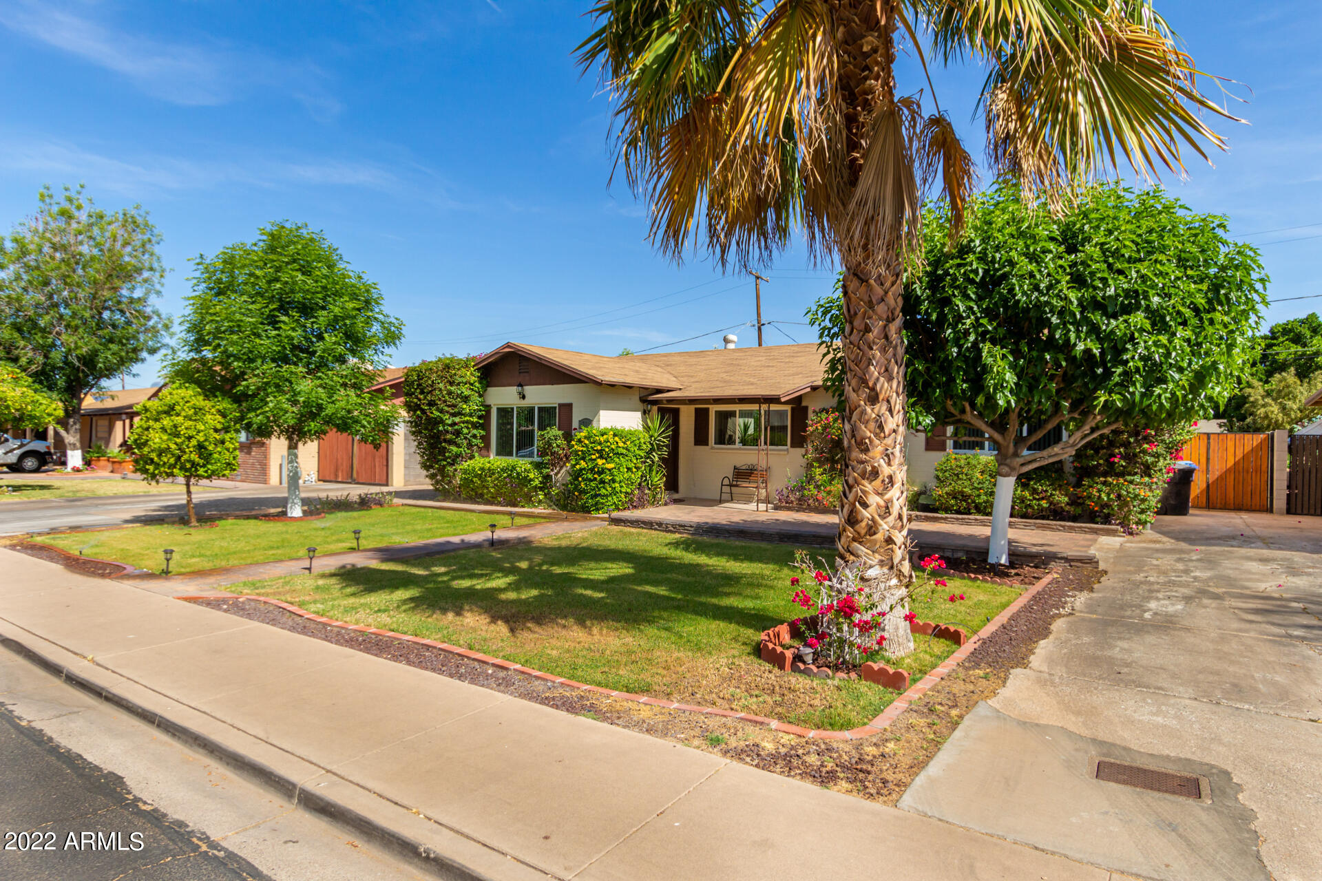 Beautiful 4 bed, 2 bath with NO HOA just minutes away from Downtown Gilbert & Downtown Mesa. The moment you drive up you will feel welcomed by the 1950's charm. Upon entering you're greeted with natural light that streams into the double pane windows into perfect open concept home ideal for entertaining. The galley kitchen is complete with granite countertops, ss appliances, ample cabinets & walk-in pantry/ laundry. Tile and wood laminate floors throughout this great 4 bedroom home. Wait until you see the backyard. Perfect for cool Arizona nights hosting fun gatherings: covered patio, pergola, pavers patio and mature fruit tress. 1 car garage and RV gate are an added bonus!!! This adorable home will not last long.