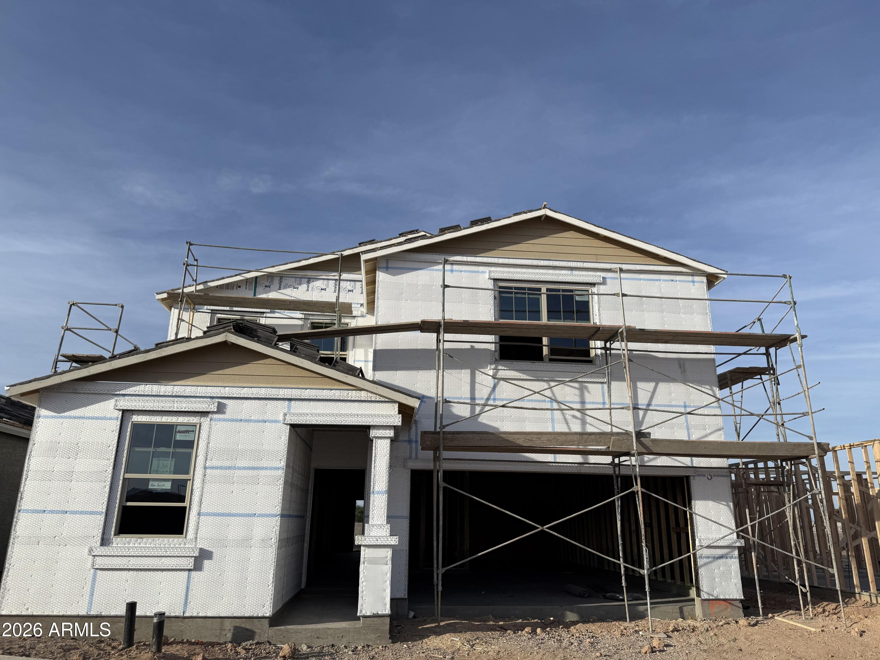 Brand new community in Surprise! This stunning two story home offers 2,941 sq ft of functional living space. It features 5 bedrooms, 4 bathrooms, den, loft, and a 3 car tandem garage. The open concept kitchen is perfect for entertaining, featuring a spacious island that flows into the dining area, a walk-in pantry, and stainless steel appliances. It also offers our Roosevelt Collection which includes espresso 42'' cabinets, biancone quartz kitchen countertops, mosaic carrara tile kitchen backsplash, and 8x36 wood-look plank tile in all the common areas. The great room offers a large sliding glass door so you can step out into your covered patio to enjoy indoor/outdoor living in your backyard with friends and family. The second floor includes 3 additional bedrooms, oversized loft, and the primary suite with a spacious walk-in closet, double sinks, walk-in shower, and an additional linen closet for extra storage. This home also features a soft water pre-plumb, interior blinds, and all appliances making it ready for move-in! Located in North Copper Canyon with resort-style amenities and easy access to Loop 303.