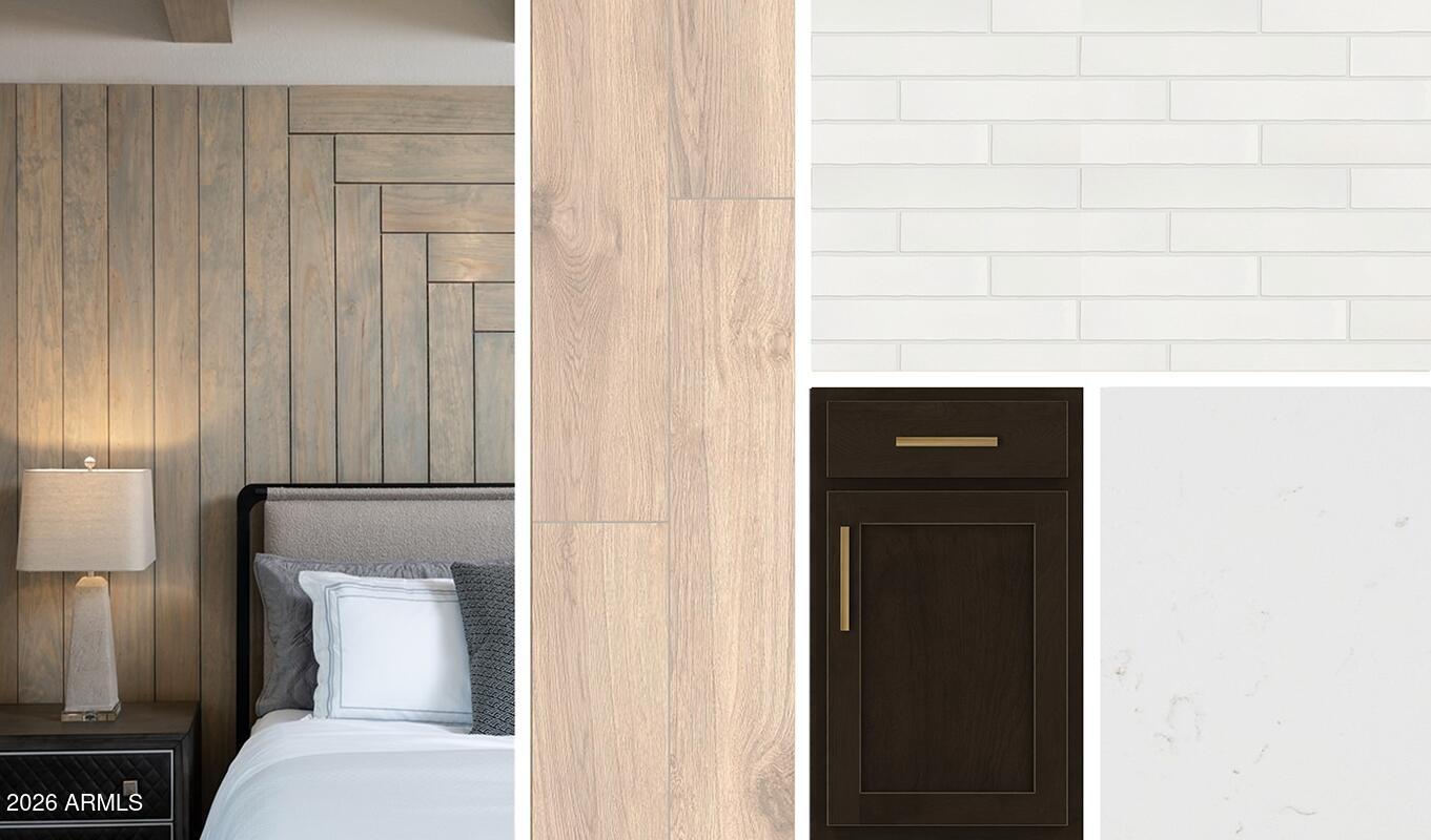 Brand new community in Surprise! This stunning single story home offers 2,222 sq ft of functional living space. It features 4 bedrooms, 3 bathrooms, guest retreat area, and a 2.5 car garage. The open concept kitchen is perfect for entertaining and features an Island, a walk-in pantry and stainless steel appliances. It also offers our Oxford Collection which includes espresso 42'' cabinets, biancone quartz kitchen countertops, sea salt 2x10 tile kitchen backsplash, and 8x36 wood looking plank tile in all the common areas. The great room offers a 4-panel center sliding glass door so you can step out into your covered patio to enjoy indoor/outdoor living in your backyard with friends and family. The primary suite has a spacious walk-in closet, double sinks, walk-in shower, and an additional linen closet for extra storage. This home also features a paver driveway, 8 foot interior doors, soft water loop, and all appliances included making it move in ready! Located in North Copper Canyon with resort-style amenities and easy access to the 303.