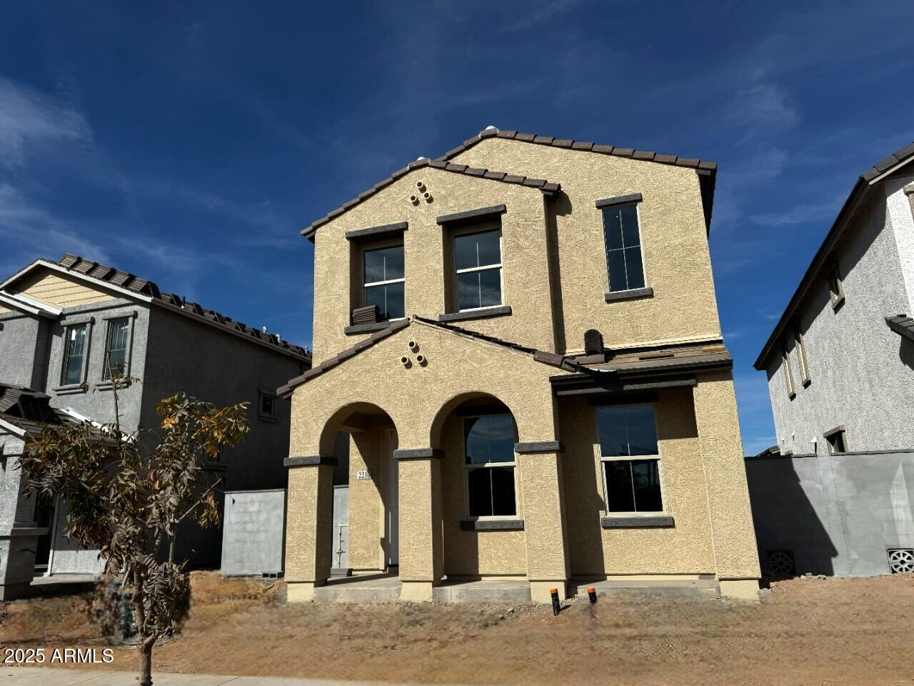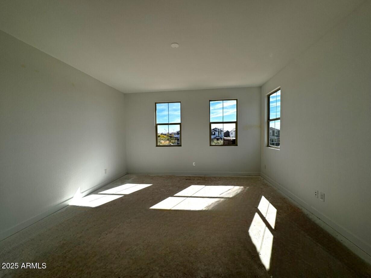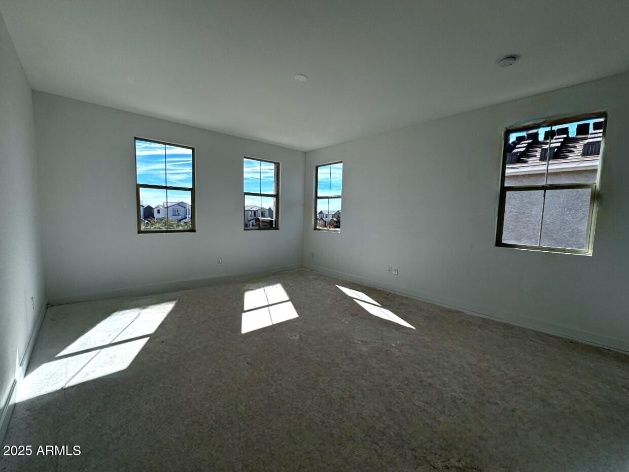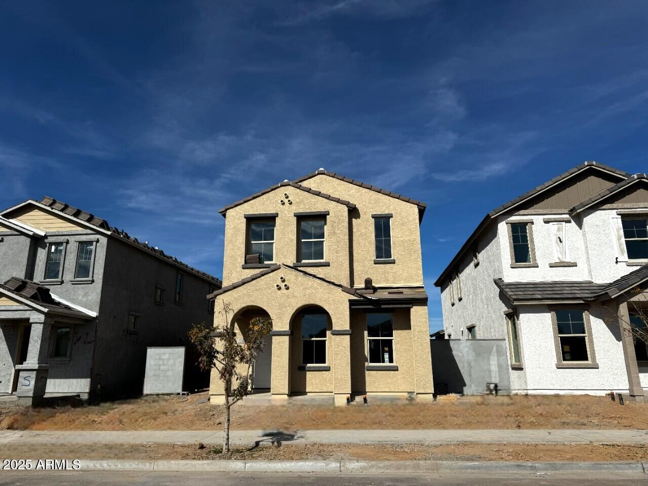 The Pinnacle Floorplan features a gorgeous Spanish style exterior elevation with a covered front porch showcasing a paver walkway and front porch. Open concept great room with kitchen featuring GE Profile stainless steel appliances including 36'' 5 burner gas cooktop, single wall oven & microwave and dishwasher against two-tone white painted shaker cabinet perimeter and natural stained shaker cabinet island. Cabinet extras throughout including trash/recycling pullout, polished nickel cabinet hardware, boxed-in refrigerator, upgraded crown molding and more. Quartz countertops and tile backsplash in kitchen. 8' interior doors, 4-1/4'' baseboards throughout. 4-panel sliding glass door to sideyard,4-foot gate at rear of side yard. Gas stub for BBQ at side yard. Modified master bath; includes walk-in shower with linen closet and executive height vanities with painted shaker style cabinets. Shower to include clear 3/8" glass enclosure and cultured marble surrounds. Electrical upgrades include ceiling fan prewire, separate switch pendant light prewires over kitchen island, upgraded vanity lights and more. 6x36 ceramic tile throughout first floor, and in laundry and secondary bath. Primary bathroom to include 12x24 matte beige tile. Upgraded carpet and pad on stairs, in loft and bedrooms. Electric car charger outlet 50A/240V outlet, low voltage and plumbing upgrades throughout. Union Park offers Tree-lined streets, pedestrian-friendly sidewalks and a 5,500 sf recreation center with resort style pool an kiddie pool, shaded ramadas, parks, gathering areas, pickleball courts and basketball. Close to I-10, 101 and 303. Walking distance to restaurants, movies, entertainment and shopping.
