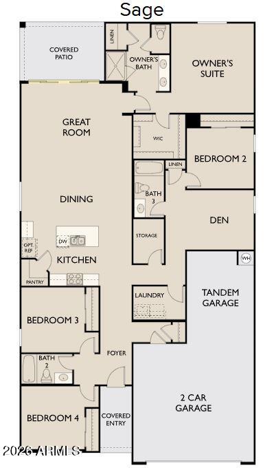 Welcome to the beautifully designed Sage Plan, offering approximately 2,150 sq. ft. of stylish and functional living space. This thoughtfully crafted home features an open-concept layout that seamlessly connects the kitchen, dining, and great room while creating the perfect environment for entertaining or relaxing at home. The beautiful Foundry Collection is highlighted by 42'' gray shaker cabinetry paired with sleek black complimentary finishes that bring a modern, cohesive look throughout the space. Natural light fills the main living areas, enhancing the home's warm and inviting atmosphere while maintaining the clean, contemporary aesthetic of the design. The home also includes a highly desirable 3-car tandem garage, providing plenty of room for vehicles, storage, hobbies, or outdoor gear. With its modern finishes, open design, and flexible space, the Sage Plan perfectly blends comfort, style, and practicality. Complete with included washer, dryer, refrigerator & window blinds for added convenience, this is an exceptional opportunity to enjoy elevated everyday living.