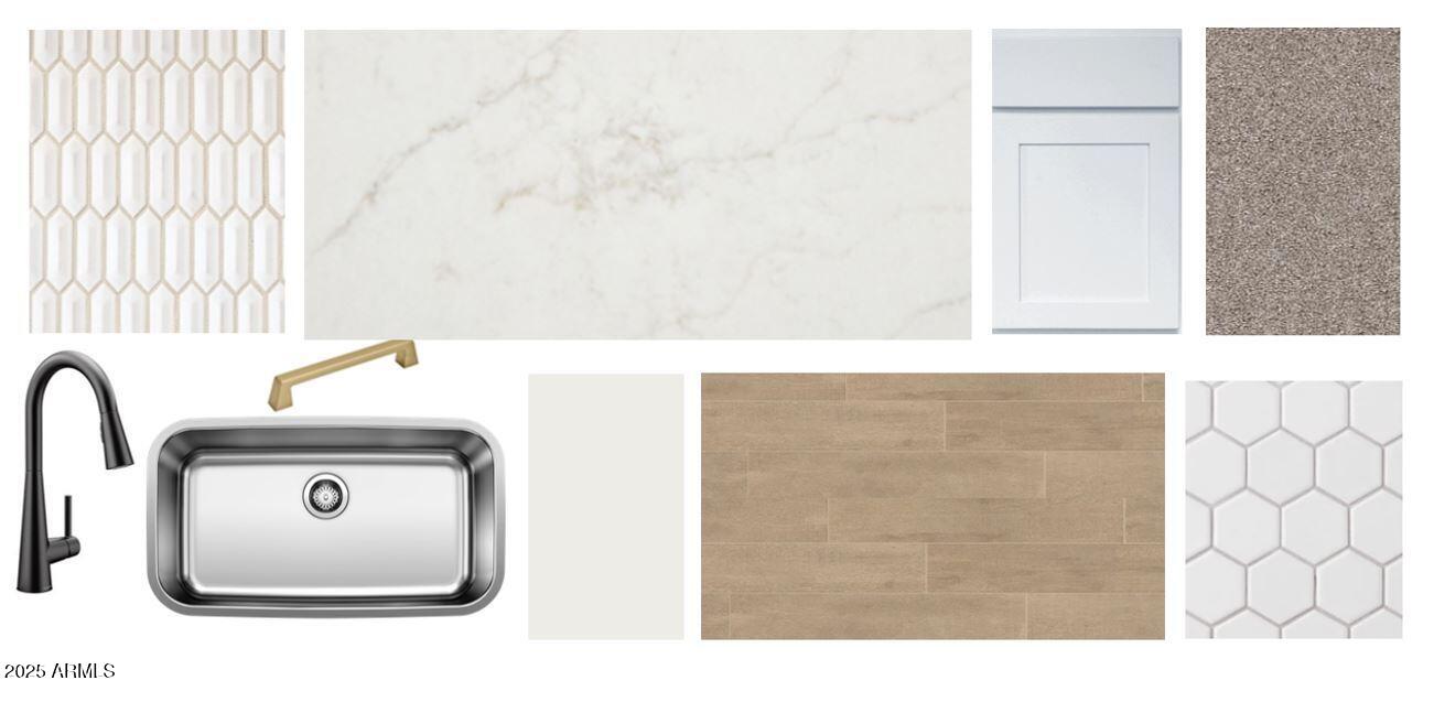 The home features a Craftsman-style exterior with gray tones, white trim, and stacked stone details. Inside, enjoy a light, neutral palette with mixed metal finishes including champagne bronze cabinet hardware, natural brass lighting, and matte black door and plumbing fixtures.