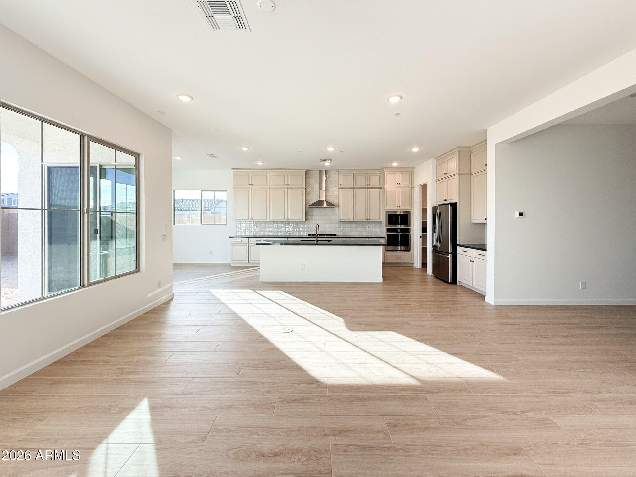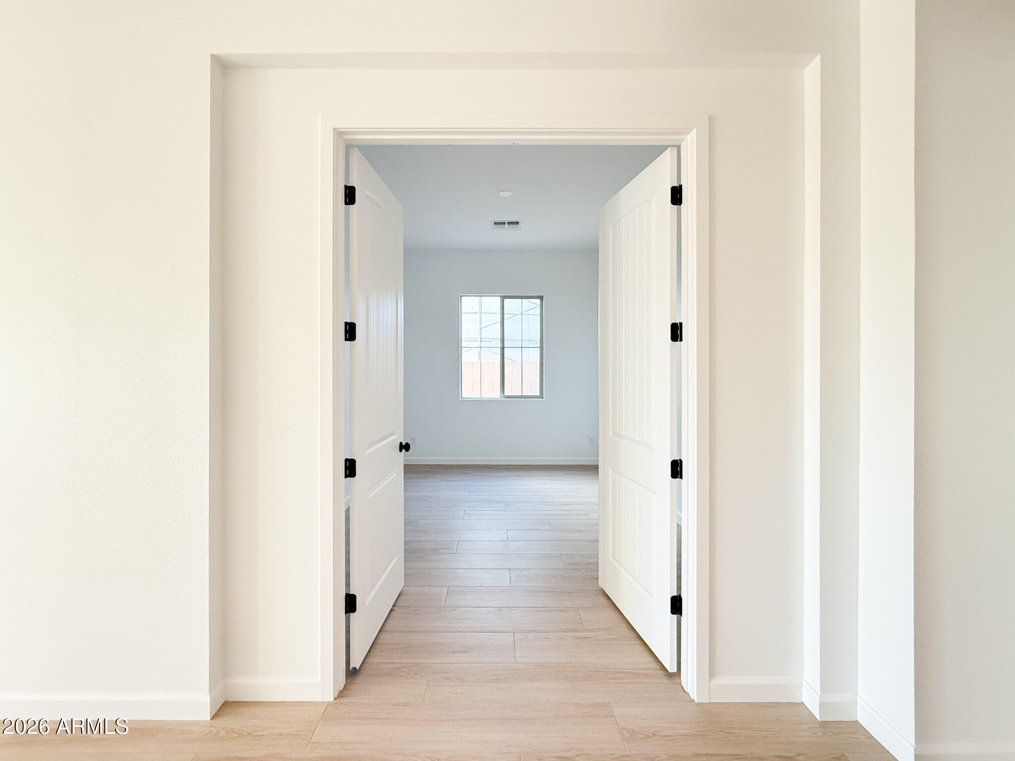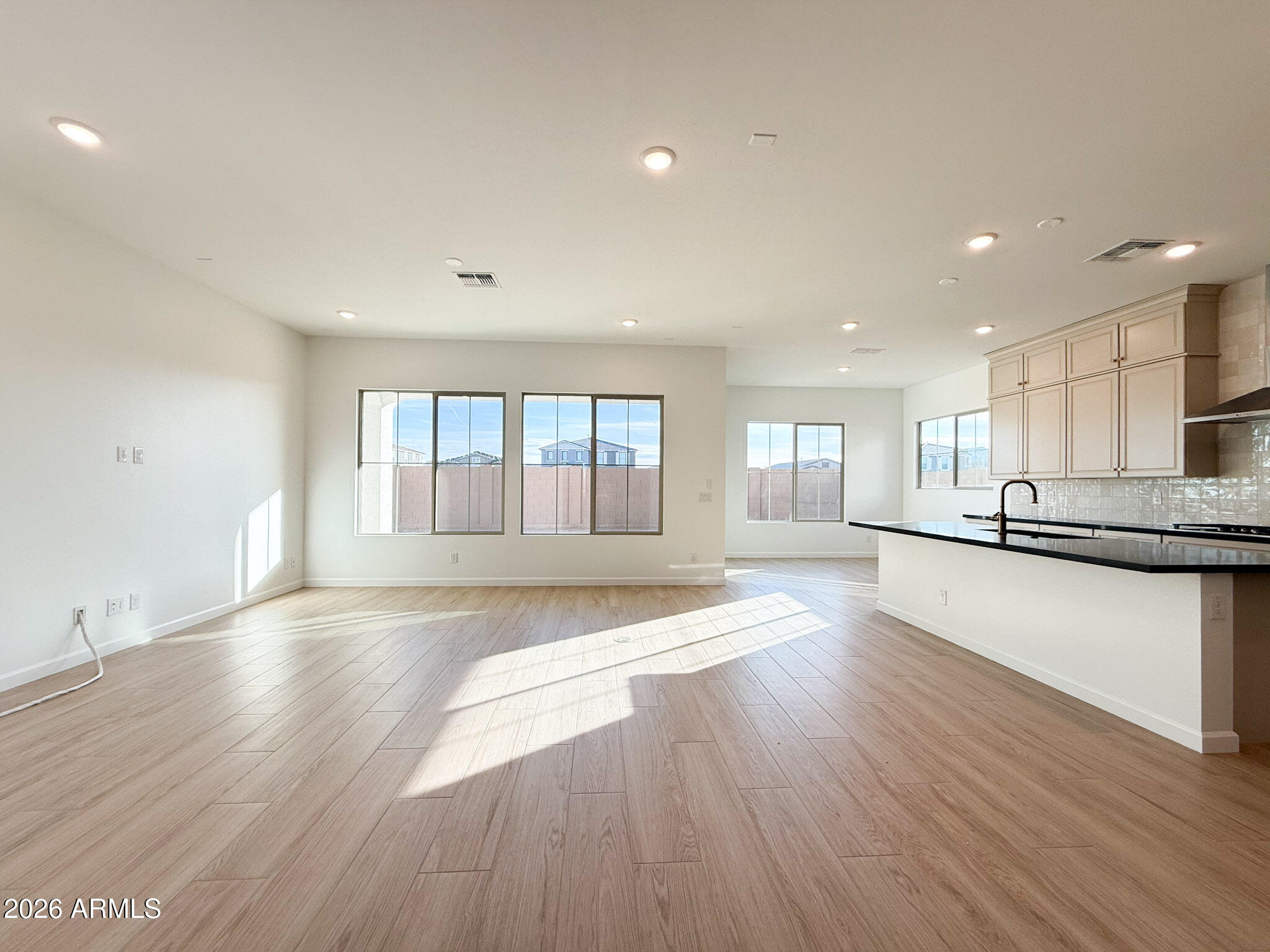 This Spanish Mission Topaz offers three bedrooms, two-and-a-half baths, a teen room, a den, and an open kitchen within 2,700 sq ft of warm, grounded living. The kitchen, colored in nourishing hues, features a dark soil-rich quartz countertop, Marcona cabinets soft as sun-lit riverstone, a stacked Flash Ivory backsplash, and a GE Profile appliance suite with a five-burner gas cooktop and built-in microwave and oven. Wide wood-plank tile floors, 10' ceilings, and large picture windows make the great room feel light and airy. The primary suite includes an enlarged shower, freestanding tub, and dual sinks. Located right across from the park in Madera.