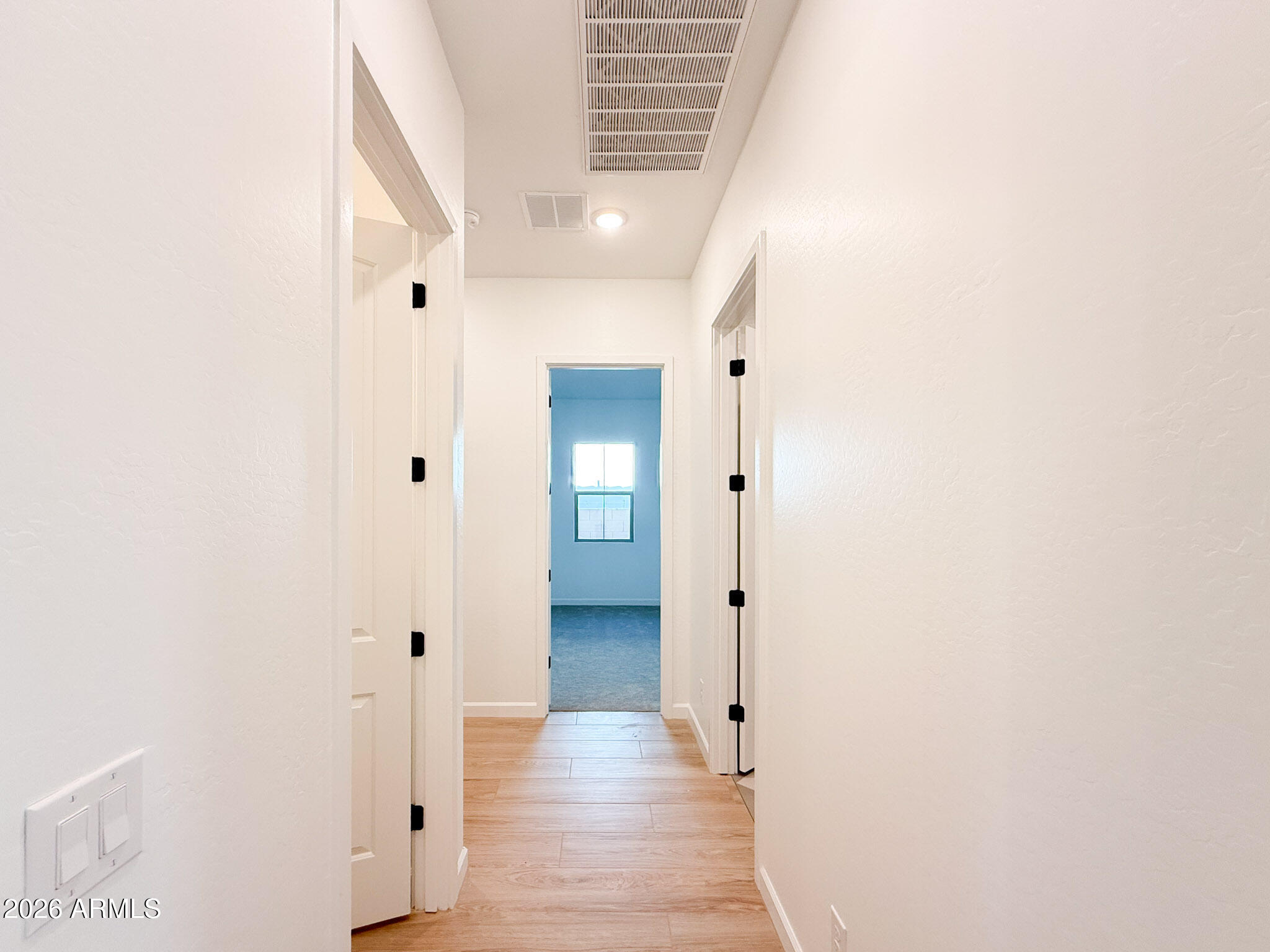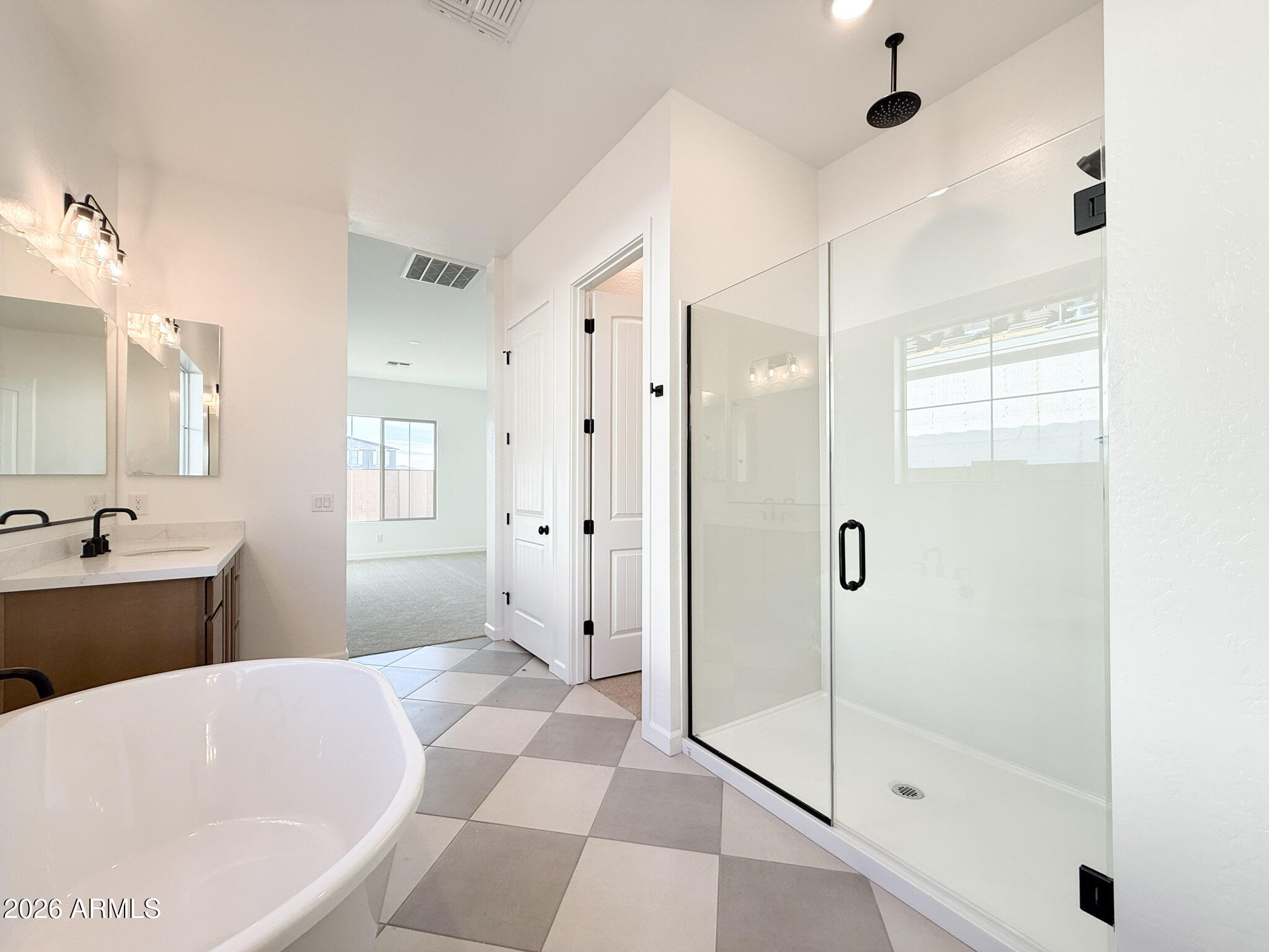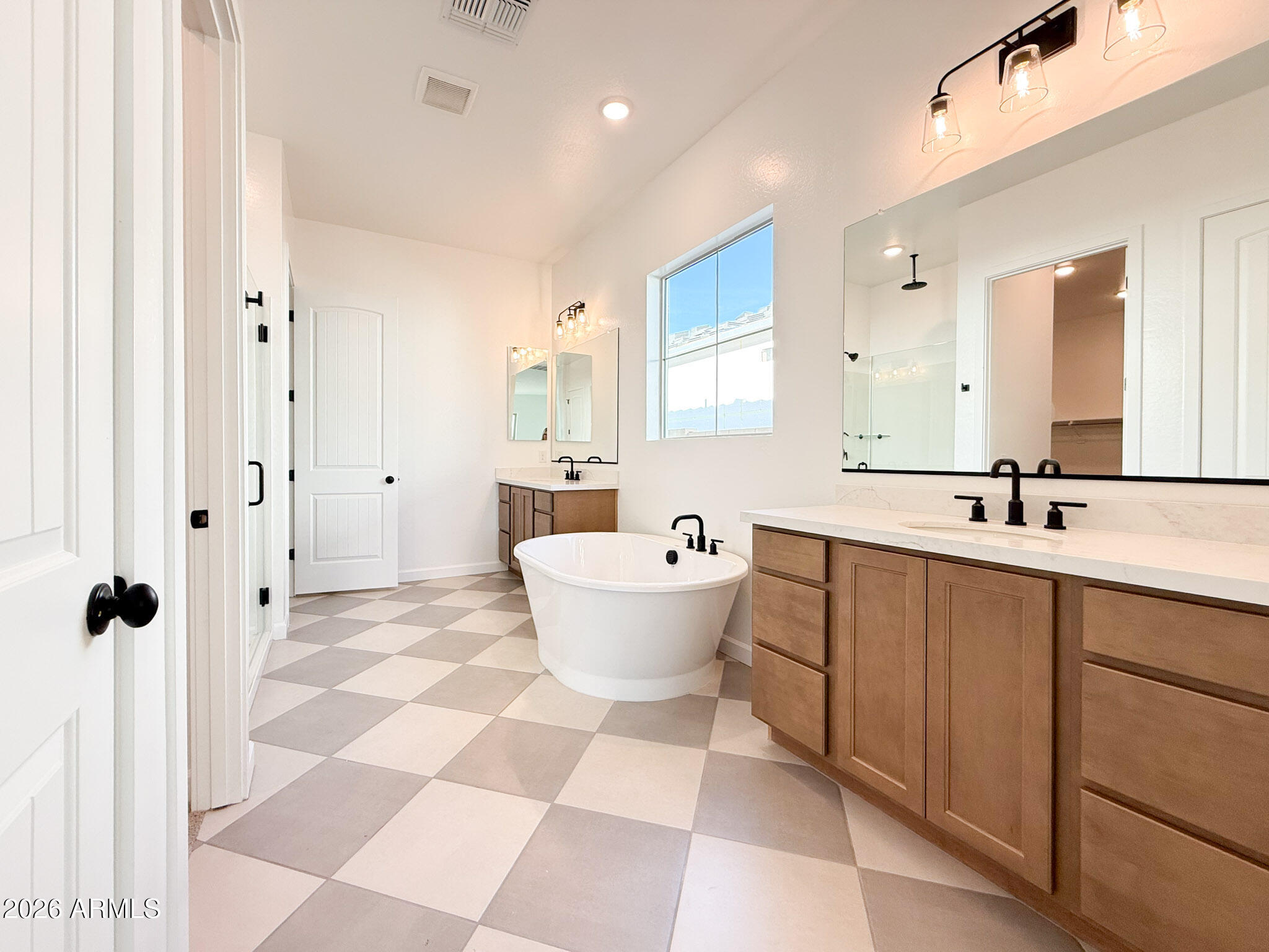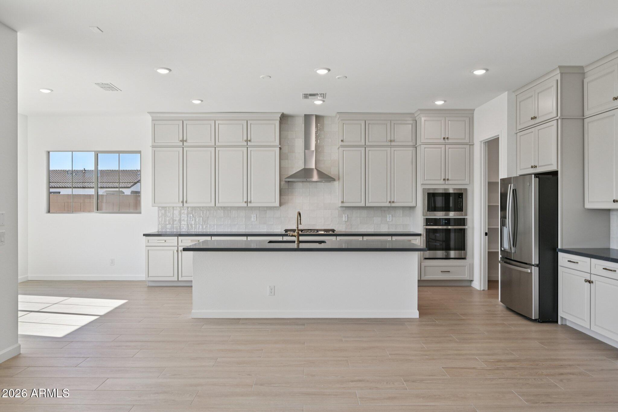 This Spanish Mission Topaz offers three bedrooms, two-and-a-half baths, a teen room, a den, and an open kitchen within 2,700 sq ft of warm, grounded living. The kitchen, colored in nourishing hues, features a dark soil-rich quartz countertop, Marcona cabinets soft as sun-lit riverstone, a stacked Flash Ivory backsplash, and a GE Profile appliance suite with a five-burner gas cooktop and built-in microwave and oven. Wide wood-plank tile floors, 10' ceilings, and large picture windows make the great room feel light and airy. The primary suite includes an enlarged shower, freestanding tub, and dual sinks. Located right across from the park in Madera.