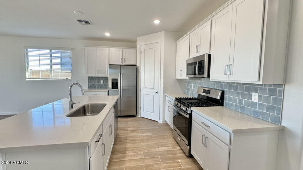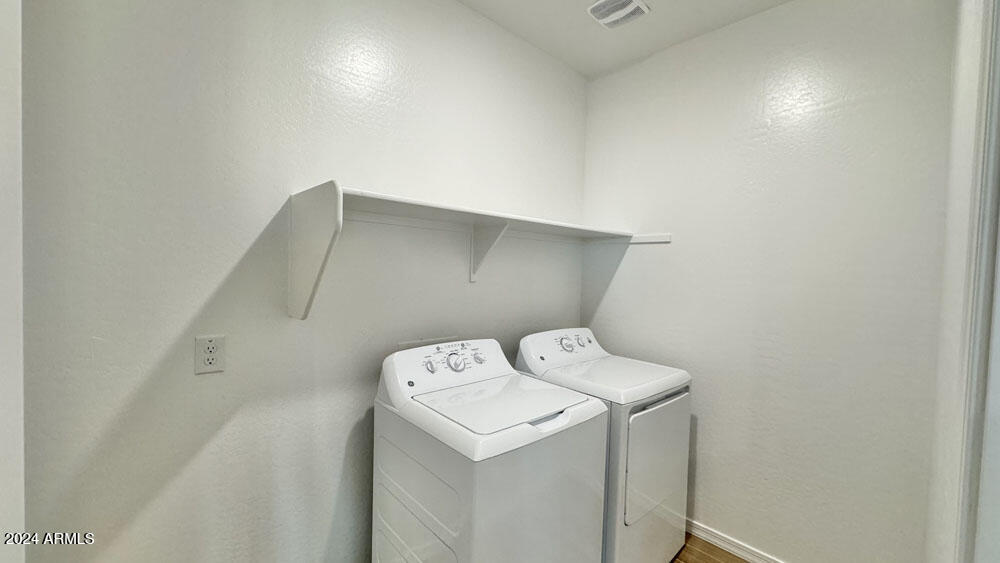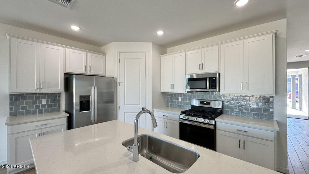Upon entry, you'll encounter the enduring elegance of the Coastal Palette, graced with 6 x 36 tile floors, providing both style and resilience. Enjoy the plush comfort of carpeting in the bedrooms. The kitchen is a culinary haven, featuring white shaker cabinets, quartz countertops, a tiled backsplash, and stainless-steel appliances. Additionaly, this home comes with the white WASHER/DRYER/REFRIGERATOR/BLINDS! Notably, this home boasts 8' doors throughout, adding an element of grandeur. Don't let the opportunity slip away to make this exceptional home yours.