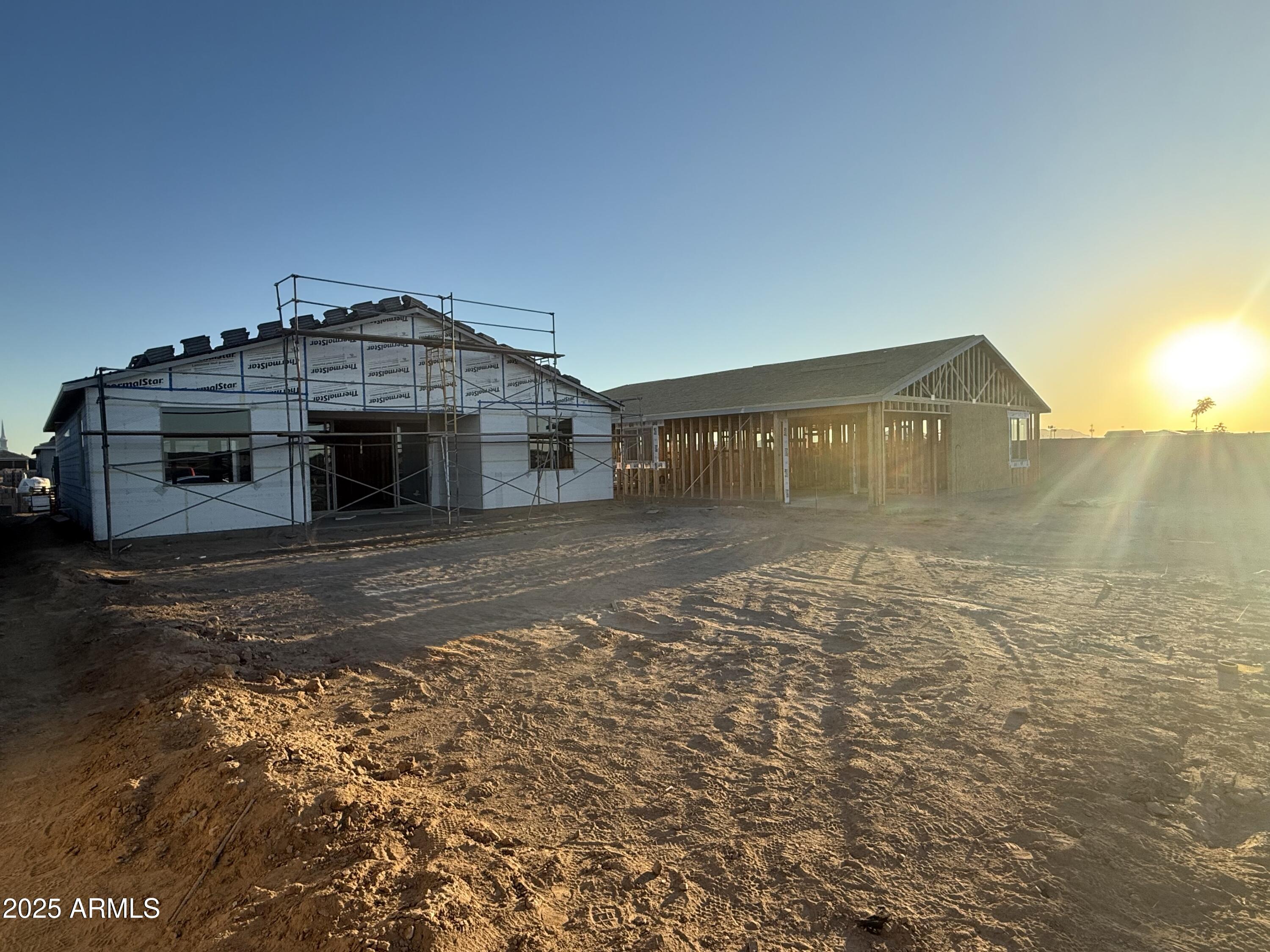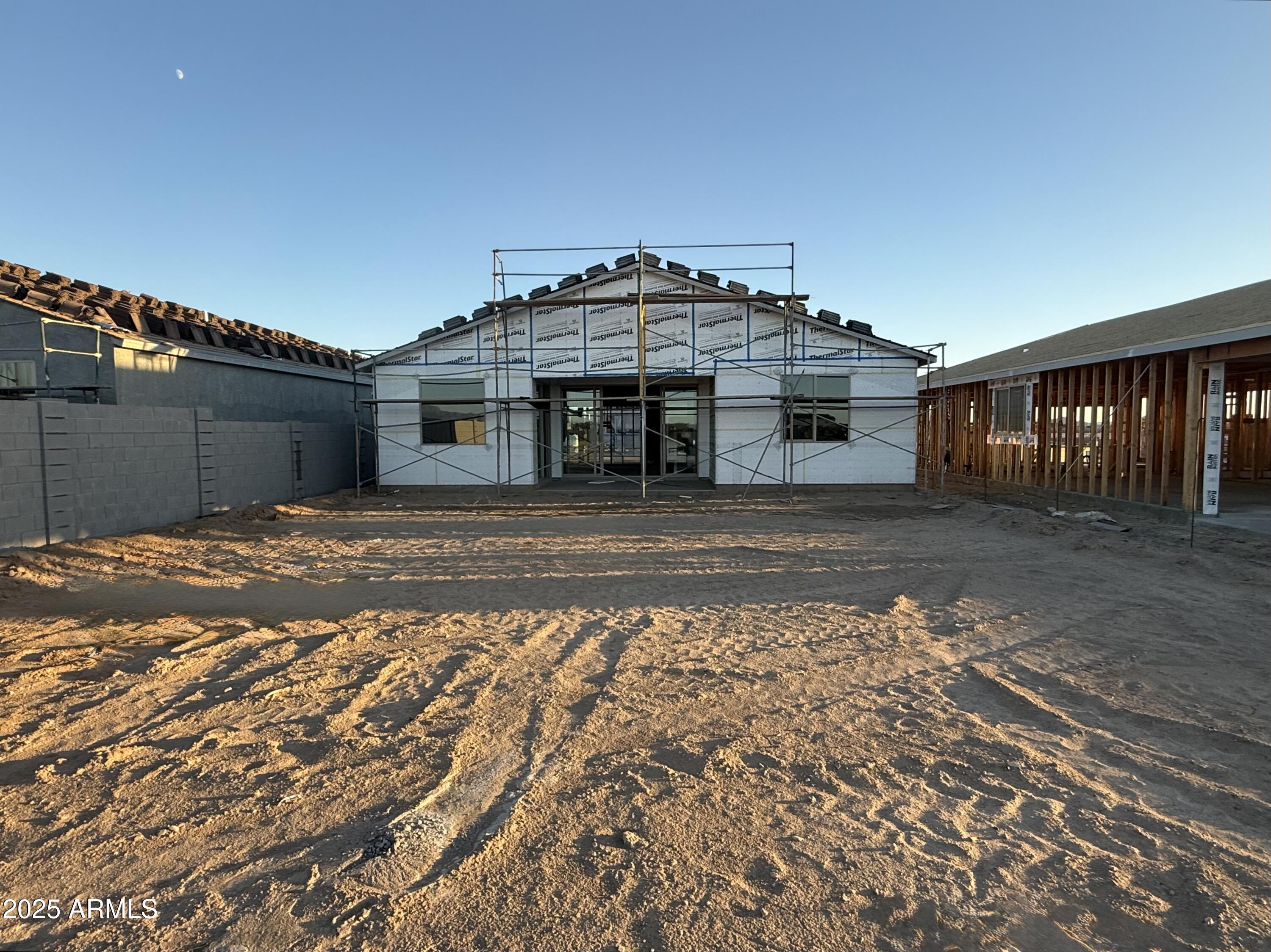 The brand-new Violet with the classic Modern elevation boasts 3 bedrooms, 2 bathrooms, and a 2-car garage in the beautiful community of Wales Ranch. This home features a dining nook to create a cozy and functional layout. The stunning 4-panel slider allows ample light and opens to a covered patio leading to a private backyard, providing a great space for any homeowner. The primary suite includes double sinks, an enlarged shower, an extra linen closet, a water closet, and a walk-in closet, making getting ready a breeze. The Harmony Collection is gorgeous, with white 42-inch upper cabinets, quartz countertops, and a white backsplash. The wood-styled ceramic tile floors seamlessly tie the collection together. This home also offers 8-foot interior doors, blinds throughout, a washer, dryer, refrigerator, and a garage door opener. Nestled perfectly in the sought-after city of San Tan Valley, with parks, pickleball courts, and a gorgeous lake.