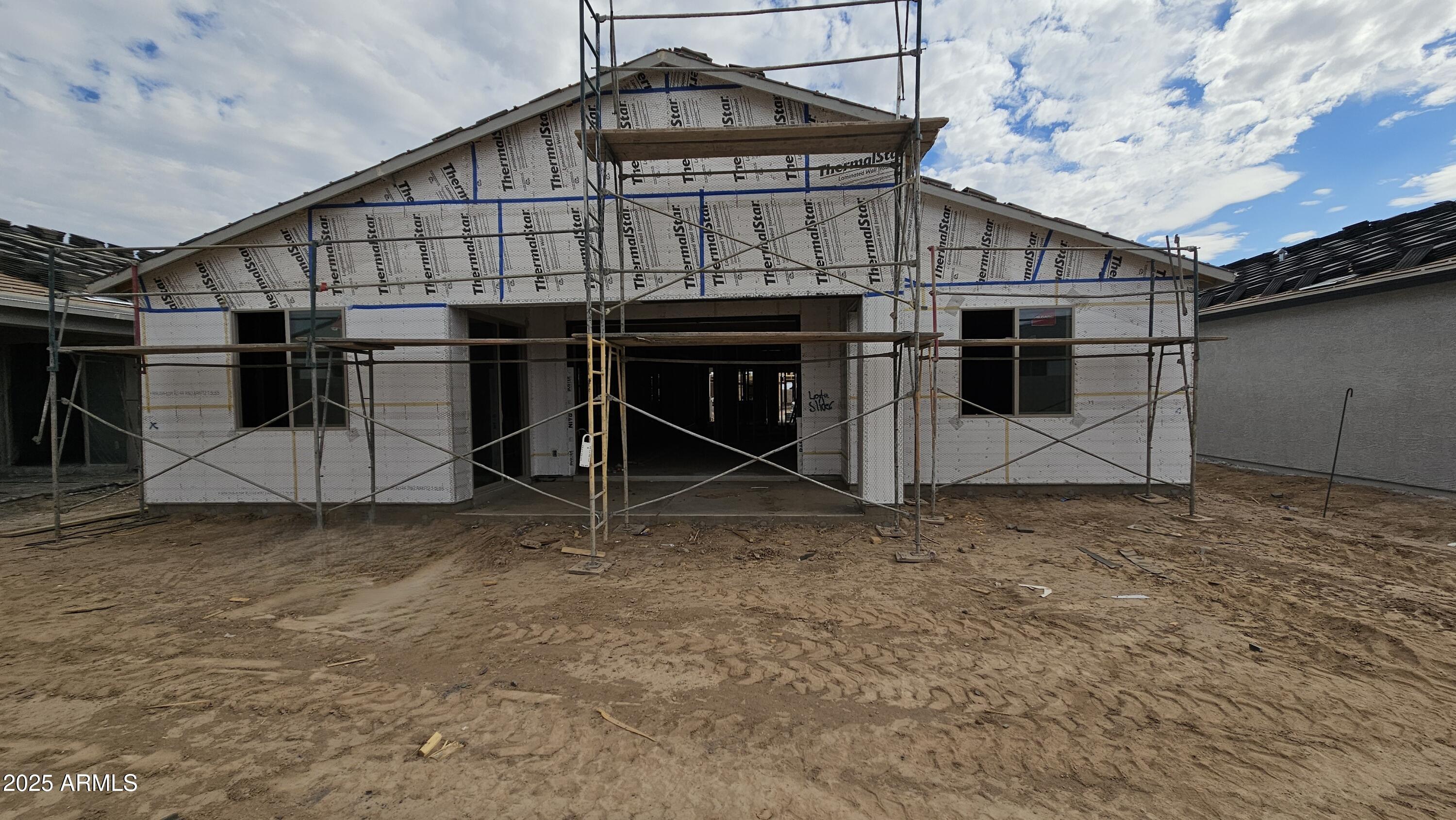 Nestled in the heart of San Tan Valley, this 2,507-square-foot Topaz home offers three bedrooms, two and a half bathrooms, a den, and a spacious three-car tandem garage. Upon entry, you are greeted by a wide main hallway and a large foyer with convenient closet space. The open-concept design seamlessly flows into the heart of the home, where you'll find 8-foot doors and a striking 4-panel glass slider. The sliding doors open to a private backyard retreat, offering the perfect space for relaxation.
