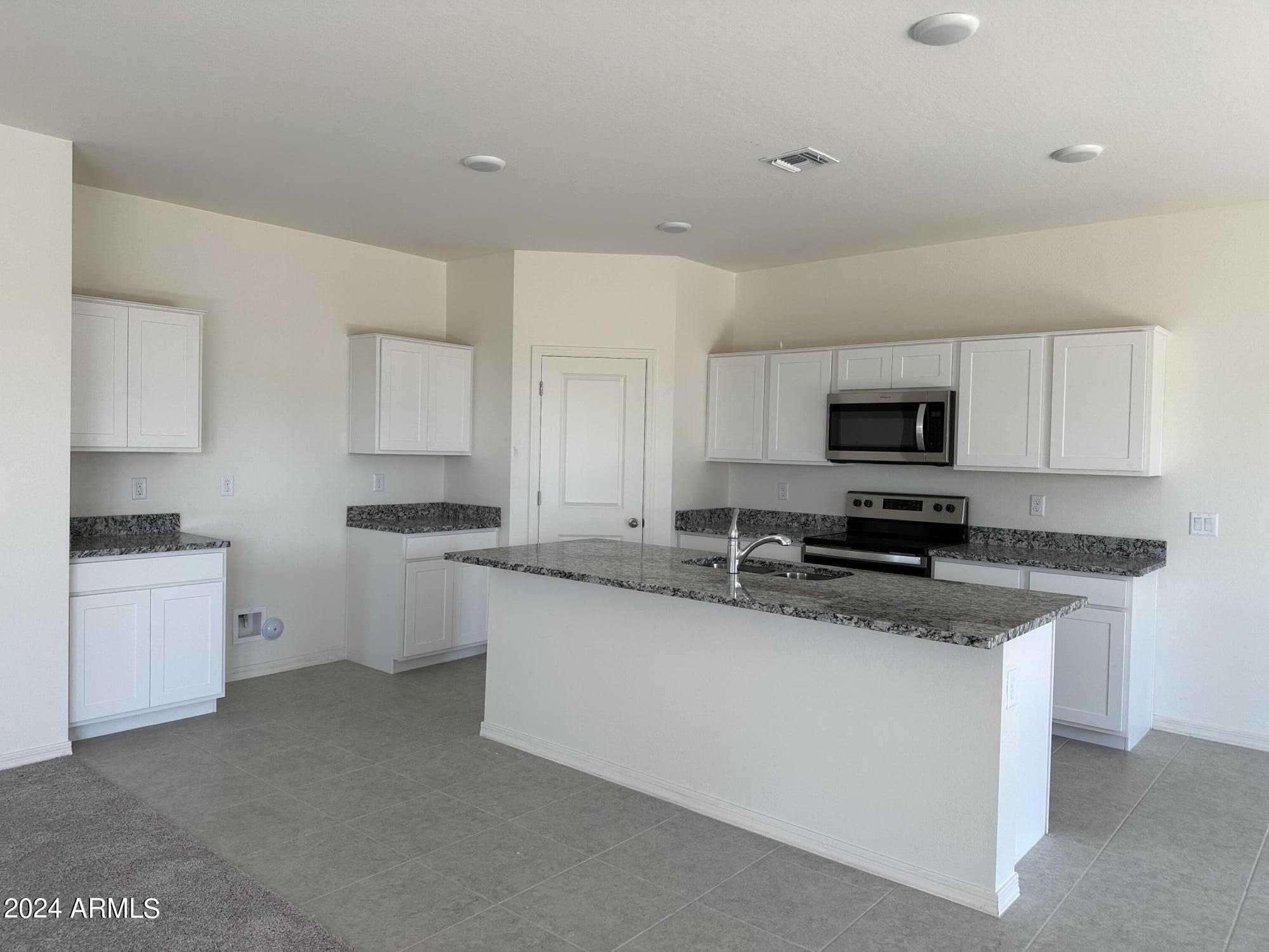 Discover your dream home with QUICK MOVE-IN options at Magma Ranch Vistas, located in the highly desirable Florence area, just a short drive from major cities. Experience the charm of desert living in a beautiful new home, complete with numerous upgrades such as high ceilings, ceramic tile floors, and granite countertops in the kitchen. Enjoy the elegance of Whirlpool stainless steel appliances and white cabinetry. Modern conveniences abound with energy-efficient features, WI-FI, programmable thermostats, and electric ranges. The owner's suite offers a spacious walk-in closet, while the backyard invites relaxation with a generous covered patio. Magma Ranch Vistas is perfect for outdoor enthusiasts, with hiking trails and scenic mountain views just minutes away. The community boasts fantastic amenities, including a kid's pool with a water tower feature, a fitness center, a community clubhouse with an industrial kitchen, an outdoor patio with firepits and grills, and a versatile multi-purpose room. Situated near Queen Creek you'll have access to highy rated schools, shopping, dining, and an aquatic center. Surrounded by the beautiful Sonoran Desert habitat, Magma Ranch Vistas is a true western gem waiting for you to call it home!