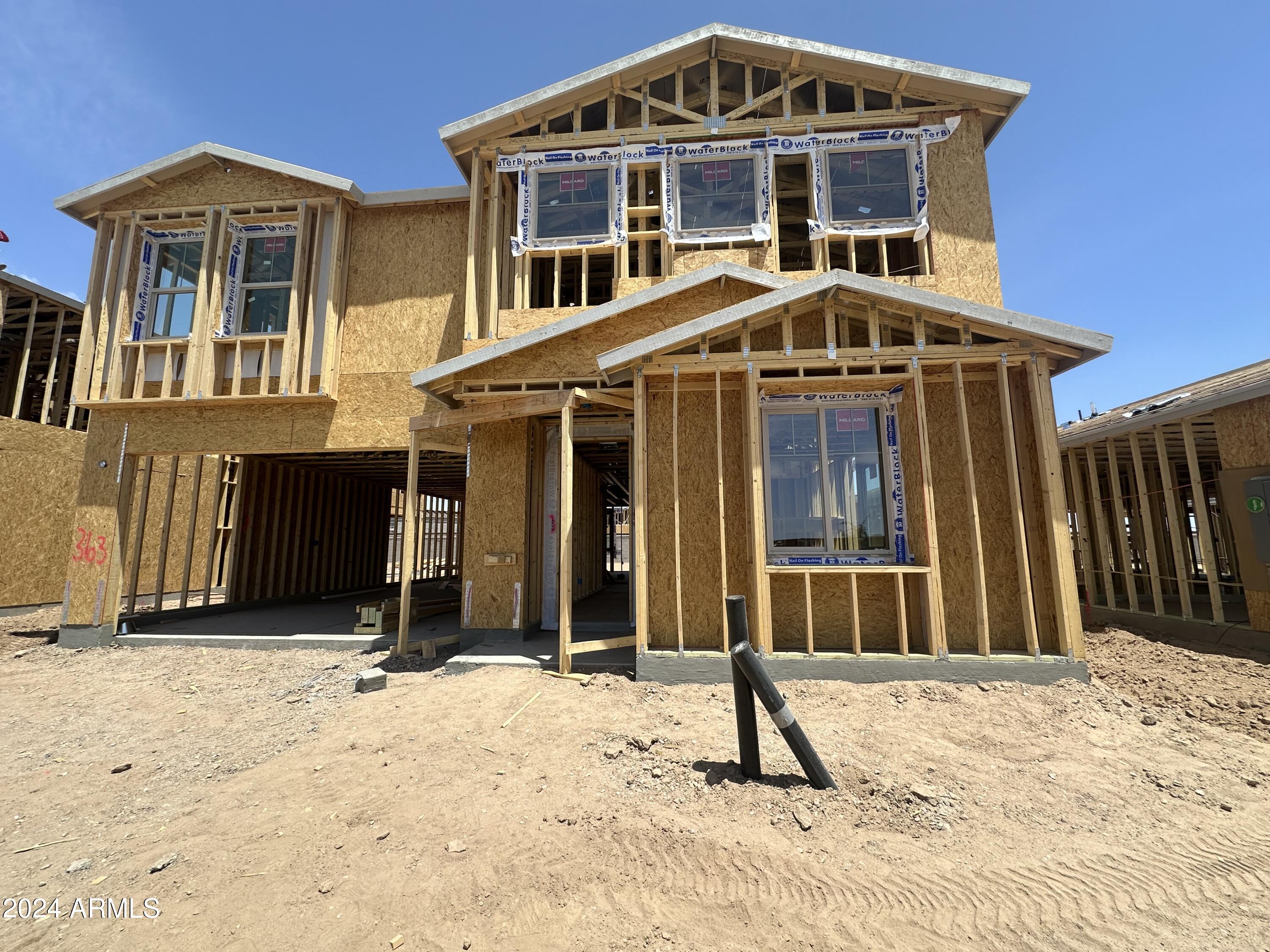 ''New Construction!! Nestled perfectly in the sought after city of San Tan Valley. Adorable Craftsman Style 3,020 square feet 2-story home with 4 bedrooms, 3.5 bathrooms, large den, loft and a 3 car tandem garage. As you enter the house there is a large den right off the front door. Walking into the great room, the large 4-panel sliding glass door brings in lots of light to brighten up the dining nook and kitchen. 42'''' upper classic shaker style white cabinets and white herringbone style backsplash matches the rest of the silver and grey toned finsihes in the kitchen. Equipped with stainless steel appliances, quartz kitchen countertops and, to make moving in a breeze, this home also includes washer, dryer, fridge, and blinds! Upstairs, Ashton Woods offers a spacious owner's suite with large walk in closet and double sinks plus a linen closet for even more storage. The 2nd story boasts a spacious laundry room right off the loft and inbetween all 4 bedrooms for easy access. Each bedroom is equipped with its own walk-in-closet and share the 2 full bathrooms upstairs not inlcuding the primary bathroom! And who could forget the large backyard!