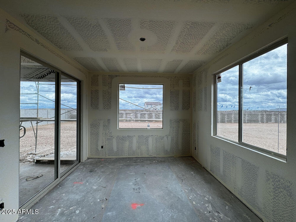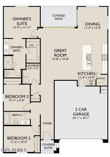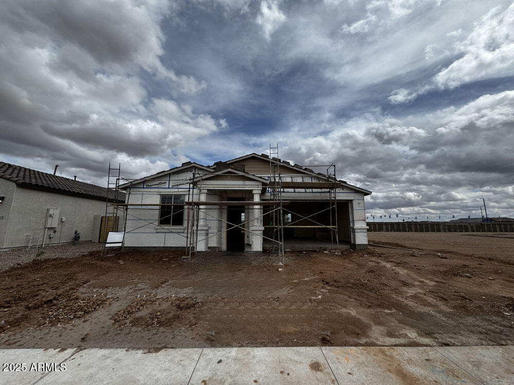 Discover the Violet floorplan, this beautifully designed 1,579 sq. ft. home in the sought-after Bella Vista Farms community in San Tan Valley. This 3-bedroom, 2-bathroom home offers modern finishes, an open-concept great room, and a gourmet kitchen with 42'' cabinets, slate gray quartz countertops, a brick backsplash, an undermount sink, and a black faucet. The private owner's suite features a spa-like bath and a walk-in closet. Wood-look tile flows throughout the main living areas, with plush carpet in the bedrooms. Matte black finishes add a stylish touch. With a covered patio, a 2-car garage, and access to pools, parks, and walking trails, this home is the perfect place to start your next chapter.