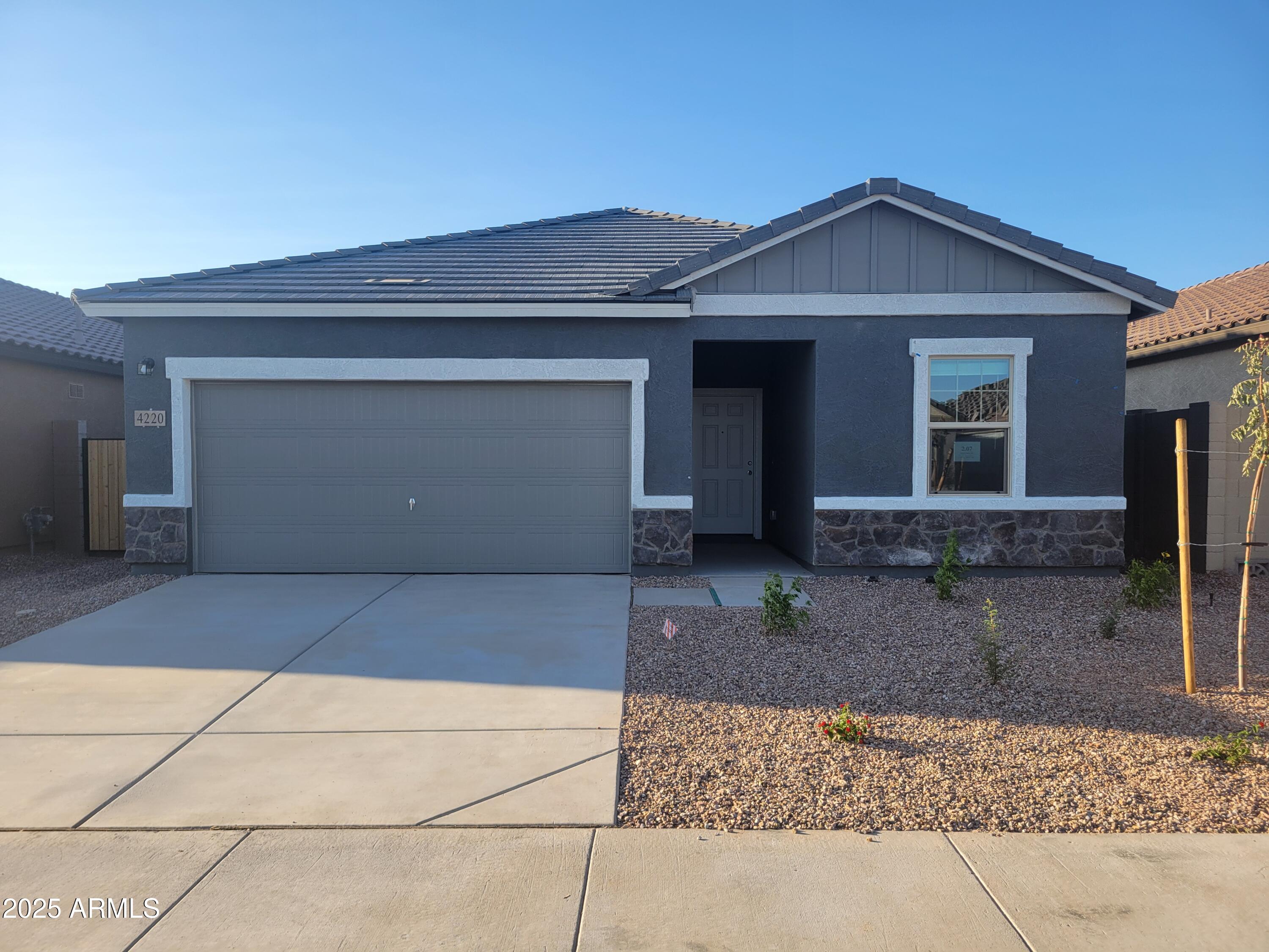 Beautiful NEW Home in in the highly desirable San Tan Valley area, close to major cities. Overlooking scenic desert views. Featuring countless upgrades such as 9' ceilings, Shaw Ceramic Tile Floors, Granite countertops in the kitchen. Whirlpool Stainless steel appliances and white cabinetry. Energy-efficient features throughout, Wi-Fi & programmable thermostat, and electric range. Spacious walk-in closet in owner's suite! Front yard landscaping with irrigation included and generous covered patio in the backyard. Minutes from hiking trails and scenic mountain views! Fantastic proposed amenities such as community parks, football fields, soccer fields, baseball/softball fields, BBQ grills, picnic area, Shaded ramada areas, benches, play structures, sand Volleyball, tennis courts,and several designated trails! Located near Queen Creek, highly rated schools, shopping, and dining! Surrounded by open Sonoran Desert habitat.