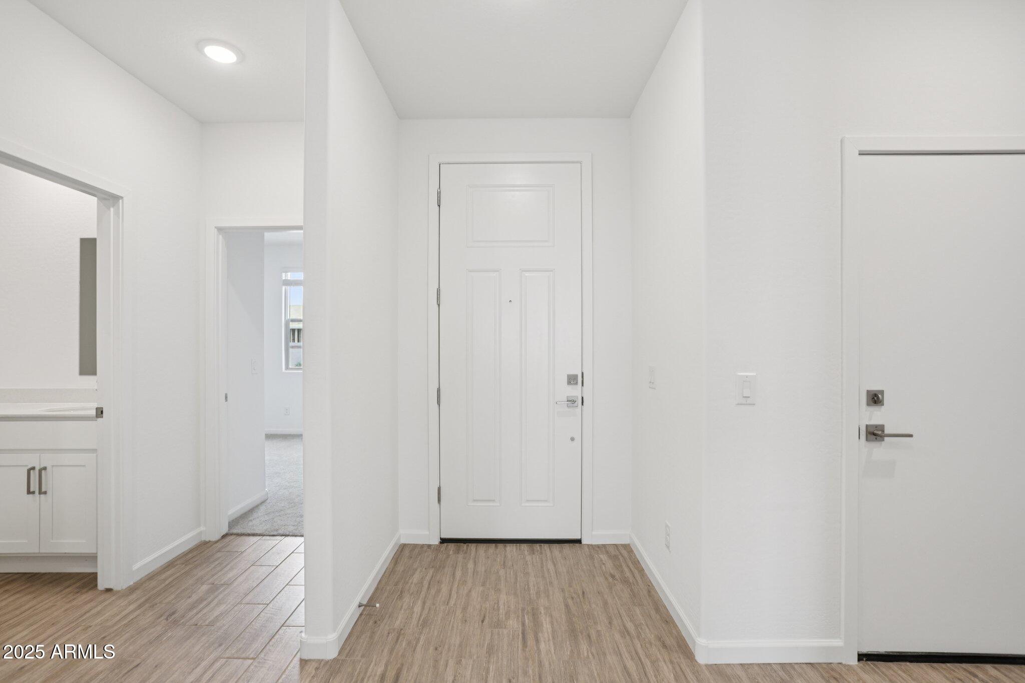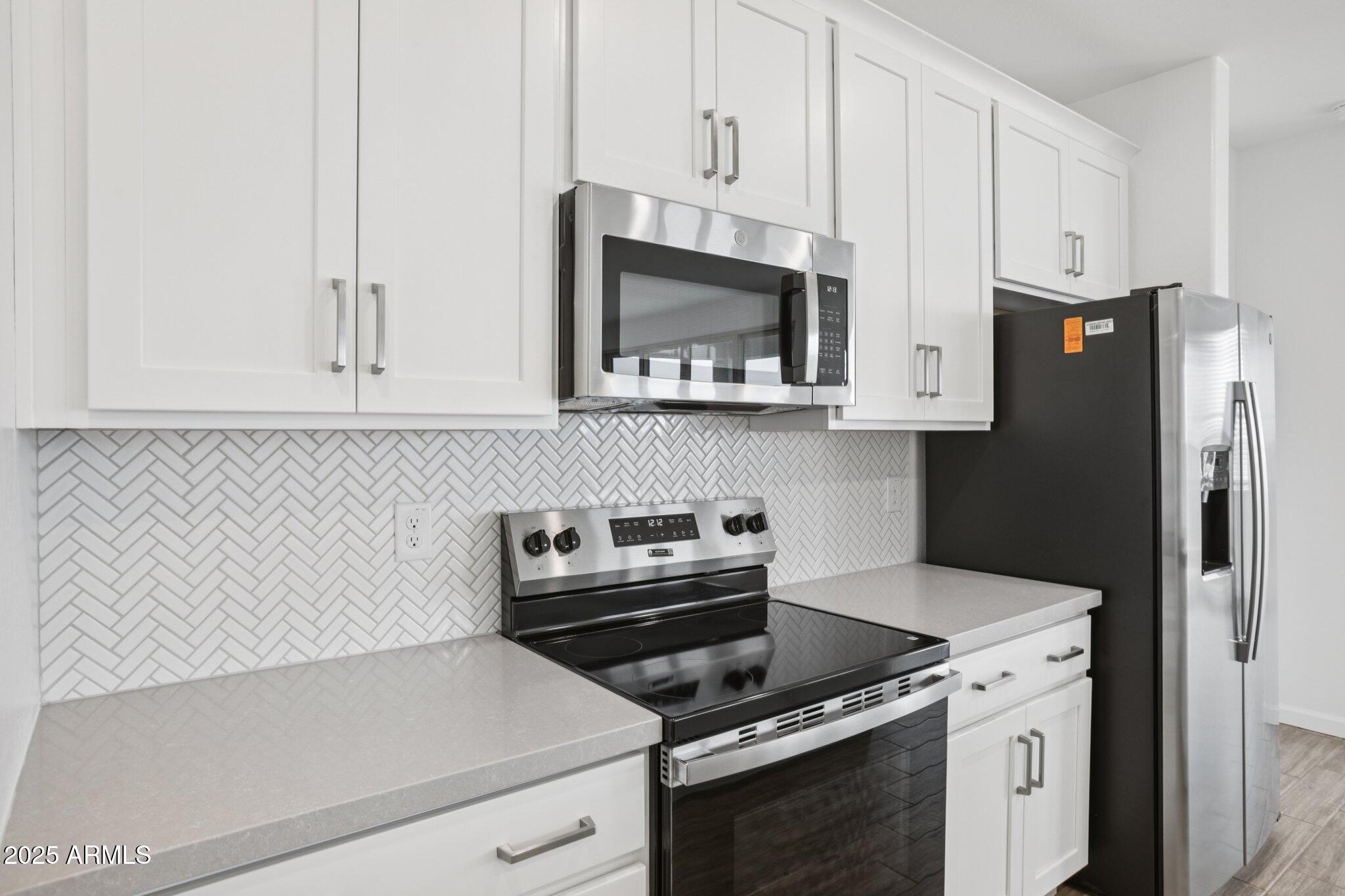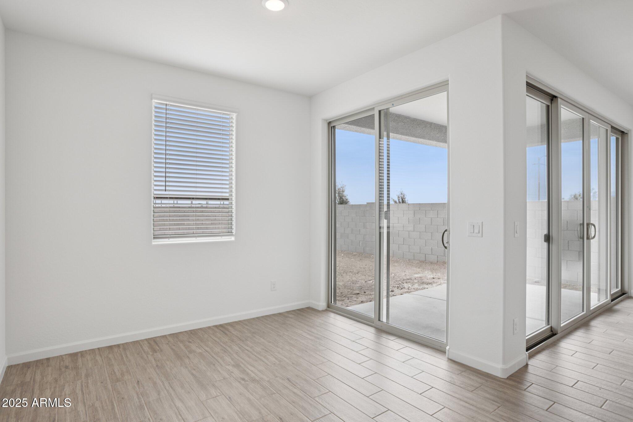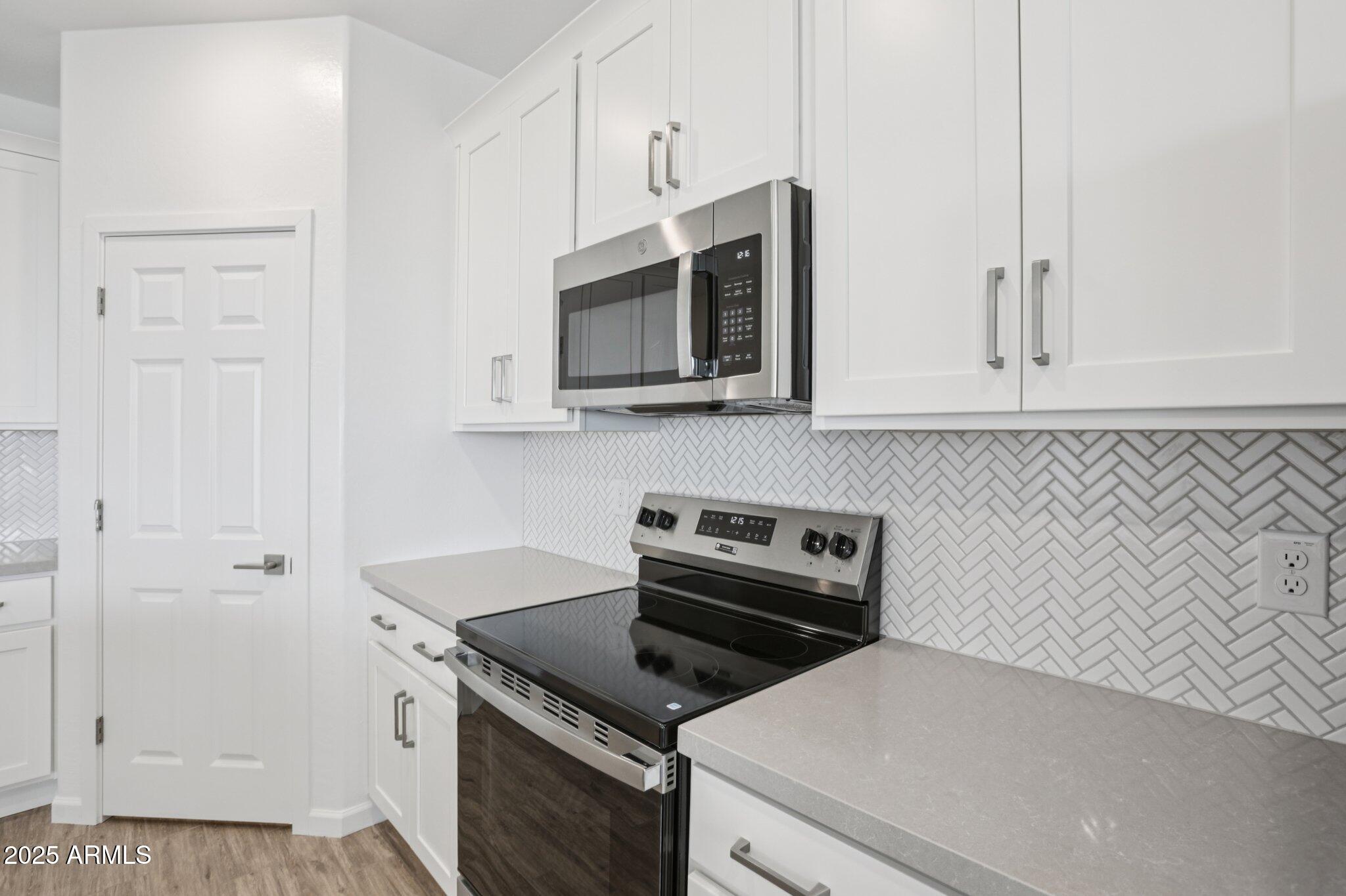 This stunning Marigold floor plan offers 1,777 square feet of living space with 3 bedrooms, 2 baths, a den, and a 2-car garage with a garage door opener. The home features our popular Modern exterior. The kitchen showcases an Timeless 2.0 interior collection with a beautiful mosaic herringbone set tile backsplash, white 42-inch upper cabinets, stainless steel appliances, and eye catching quartz countertops. The home also includes 6x24 wood-look plank tile flooring, white sand quartz and oval sinks in the bathrooms, and light gray carpeting in the bedrooms. Enjoy a 4-panel center sliding glass door, 2-inch white horizontal faux-wood blinds, a water softener loop system. Additional conveniences include an electric washer and dryer and pre-wiring for pendant lights in the kitchen.