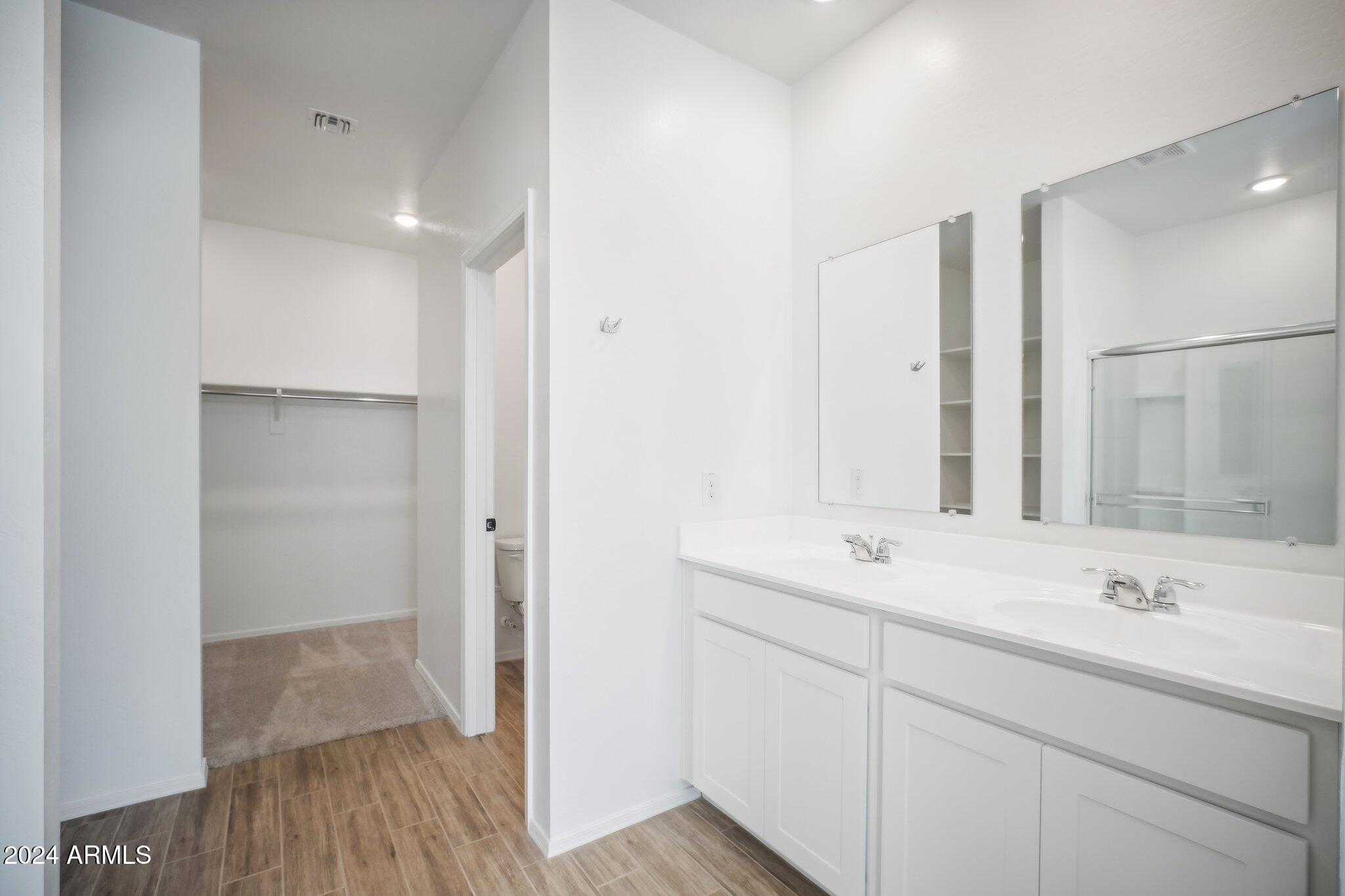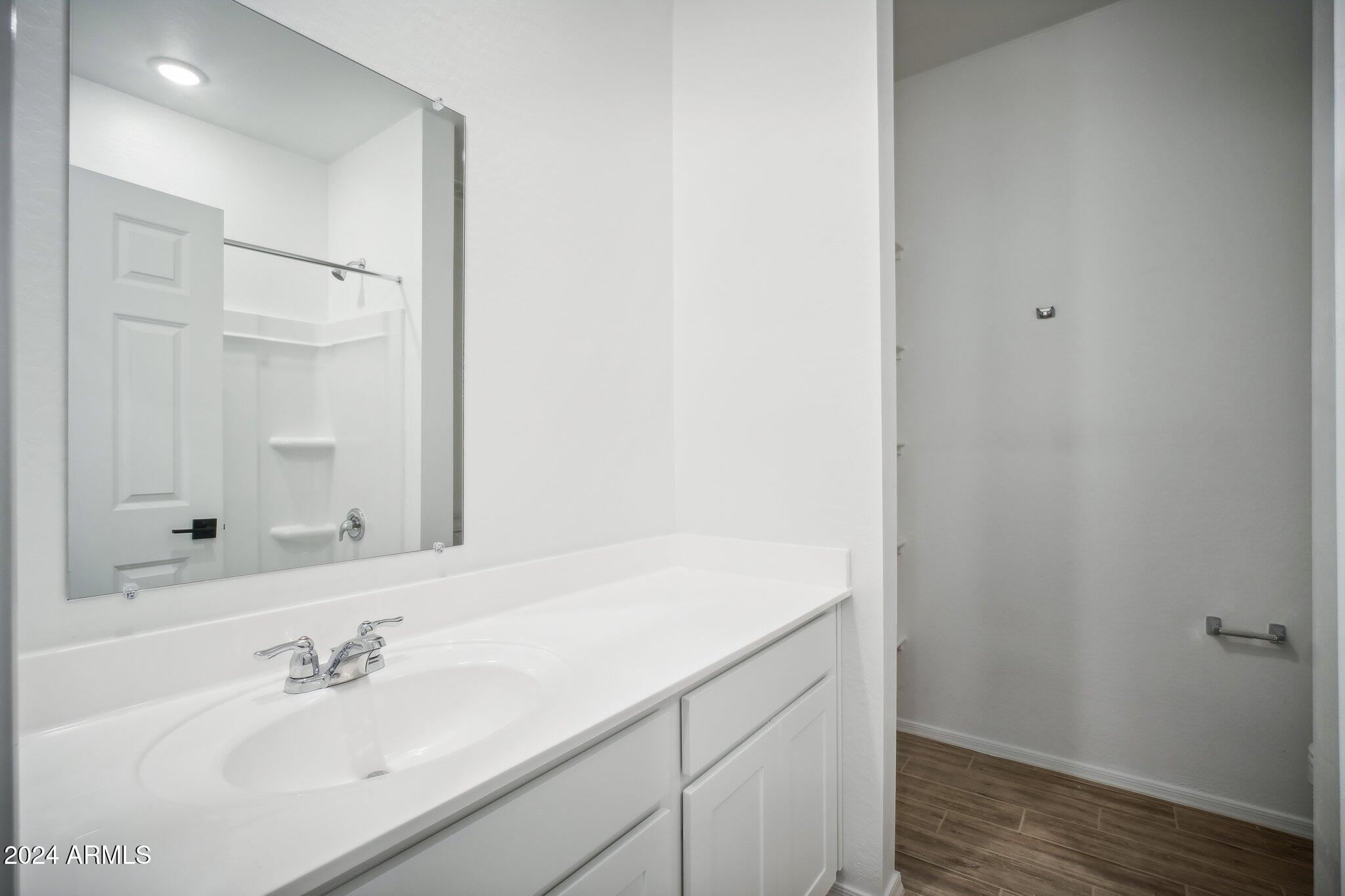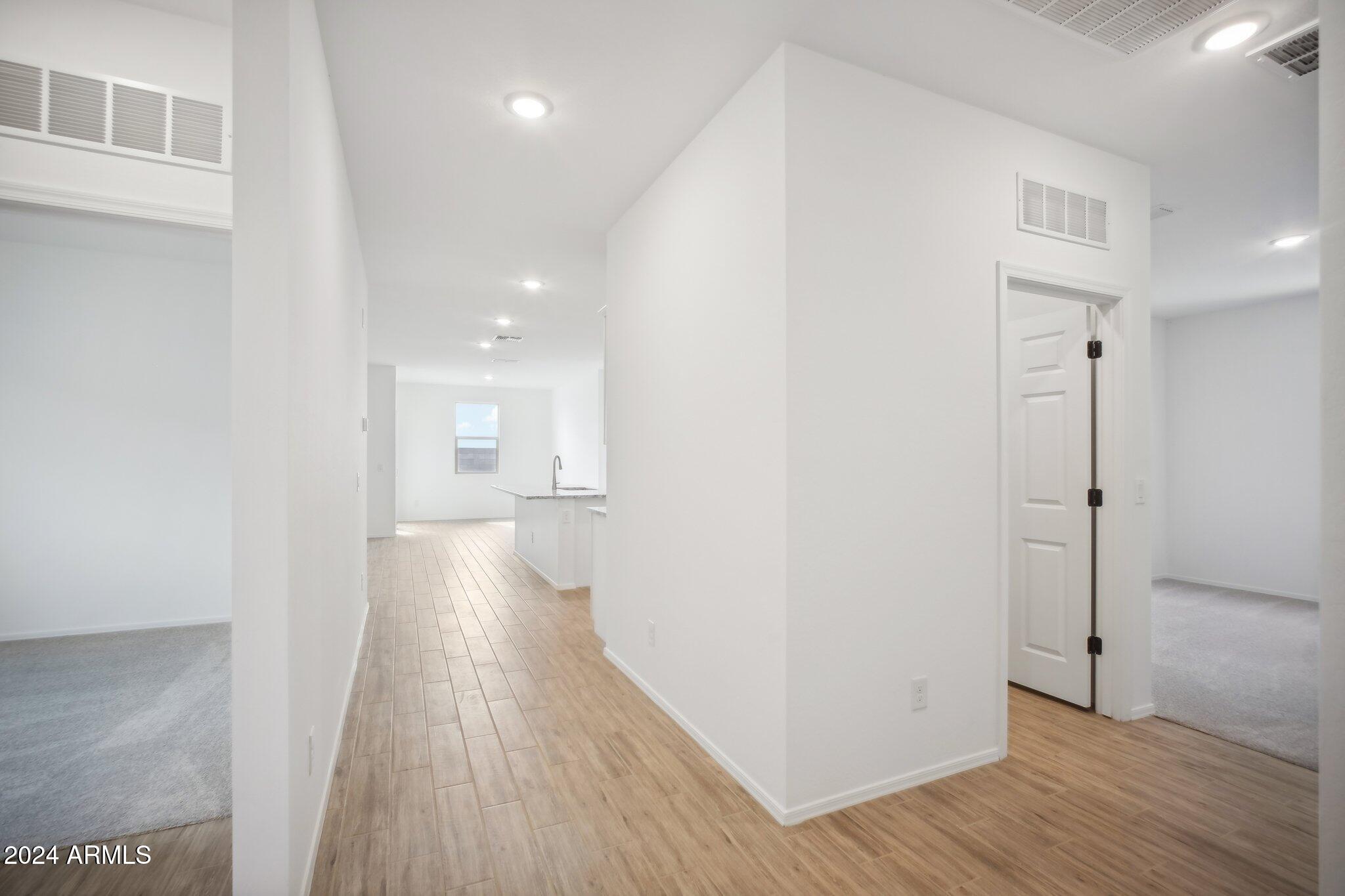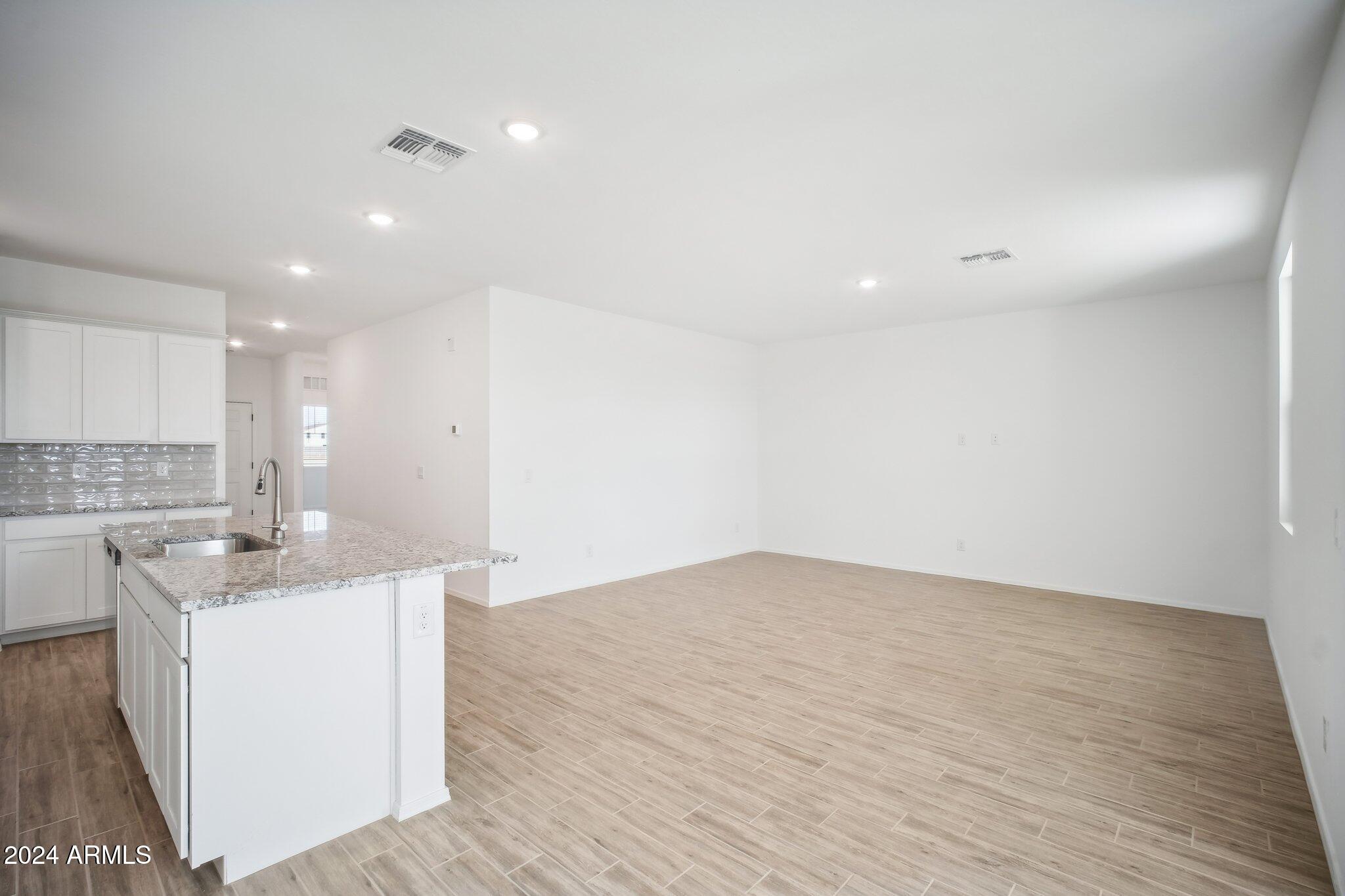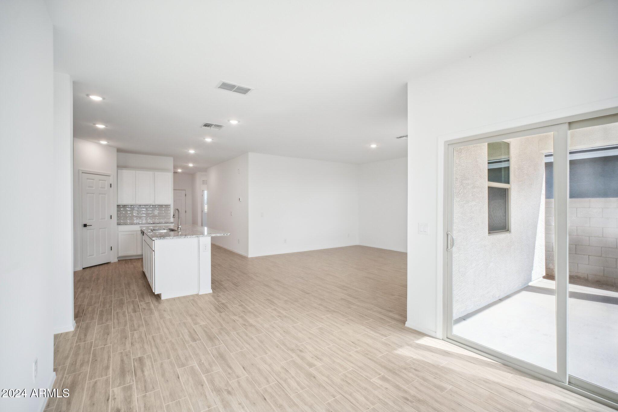 Discover the meticulously crafted Marigold floor plan nestled in the coveted Amarillo Creek community, where elegance meets functionality. At the heart of this home lies an expansive open kitchen with a center island, ideal for hosting gatherings with loved ones. Adorned with white shaker cabinets, exquisite granite countertops complemented by a 3''''x12'''' backsplash, and state-of-the-art stainless steel appliances including a refrigerator and gas range, every detail is designed to elevate your culinary experience. Spanning 1,777 square feet of brand new construction, this never-lived-in home maximizes space with 3 bedrooms, a spacious den, 2 bathrooms, a fully equipped laundry room with washer and dryer, and a two-car garage. Designer touches such as wood look tile floors and sleek black hardware add a touch of modern elegance throughout. The separate den offers versatility, perfect for a home office, study, or cozy movie nights.The generously sized primary suite is a sanctuary, boasting dual sinks and a walk-in closet for effortless organization. The open concept layout and 9" ceilings create a bright and airy ambiance, while front yard landscaping ensures a warm welcome. Outside, an expansive rear yard provides endless opportunities to customize your outdoor oasis.
