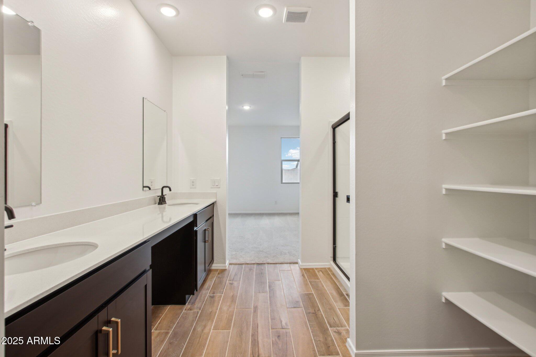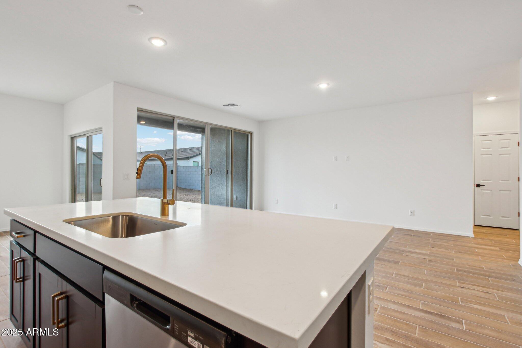 Welcome to the Larkspur! Boasting 1,949 sq ft, 3 bedrooms + Study, 2.5 baths; this home offers a versatile floor plan perfect for any buyer. Enjoy 9 ft ceilings, wood-look tile in main areas, carpet in bedrooms, and 2 car garage. The spacious kitchen features the Oxford Collection with 42'' upper Espresso Sarsaparilla cabinets, quartz countertops, tiled backsplash, and hardware. The great room has a 4-panel glass slider that opens to a covered patio. The study can be a office, or additional living area. GE washer/dryer, fridge, and blinds also included! The Amarillo Creek community offers parks, pickleball court, basketball, and is conveniently located near Route 347 for easy commuting to Phoenix. Minutes from dining, shopping, and all the entertainment that Maricopa has to offer.
