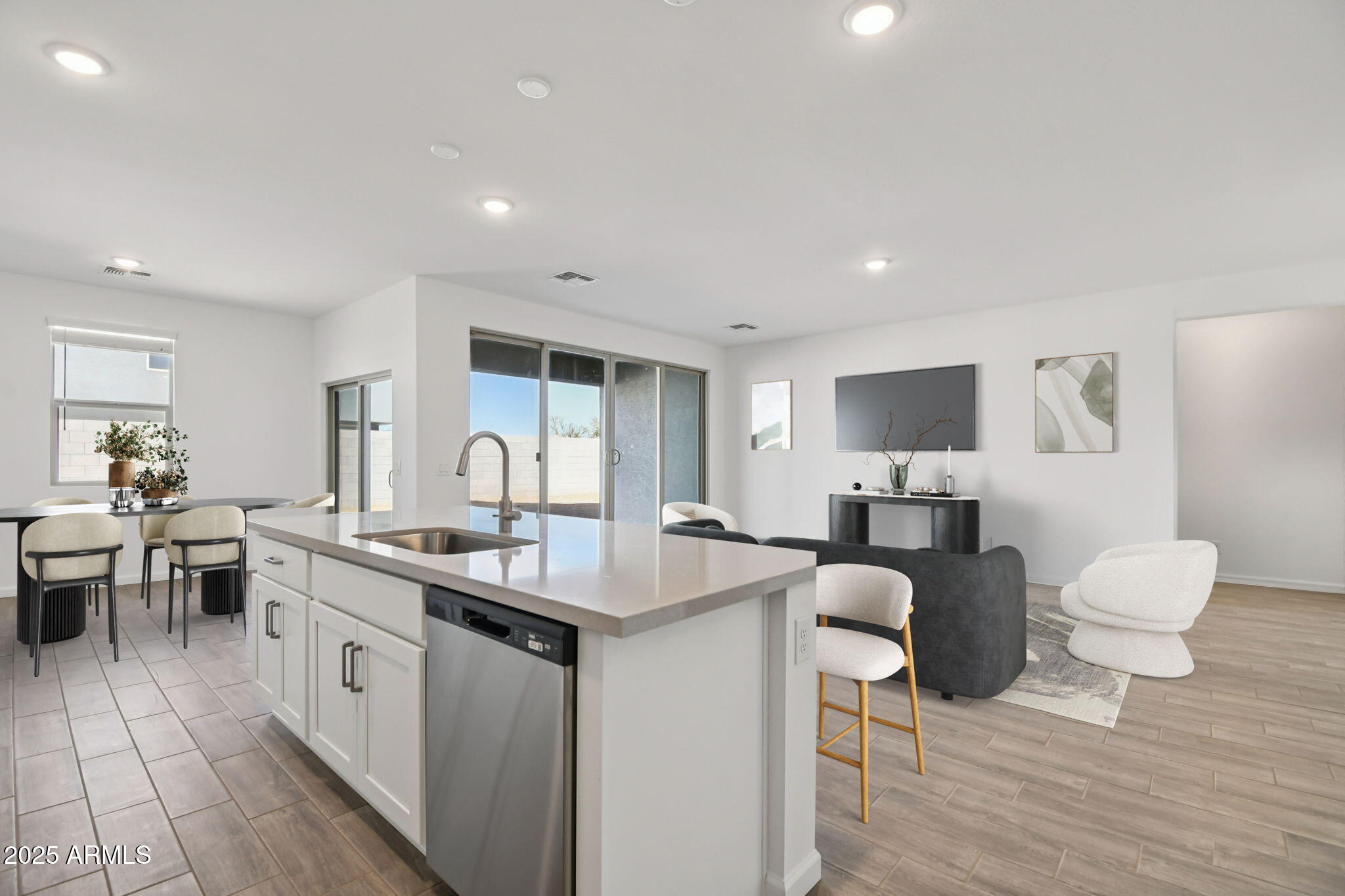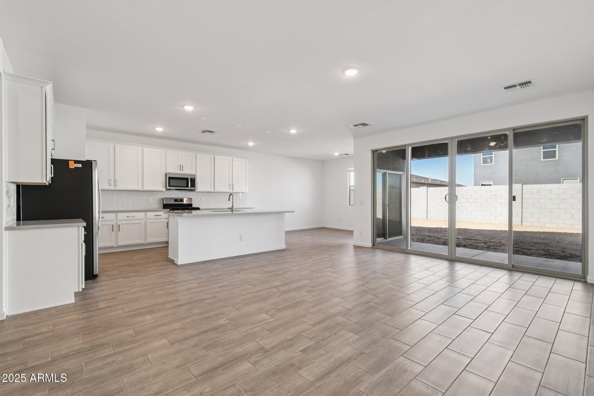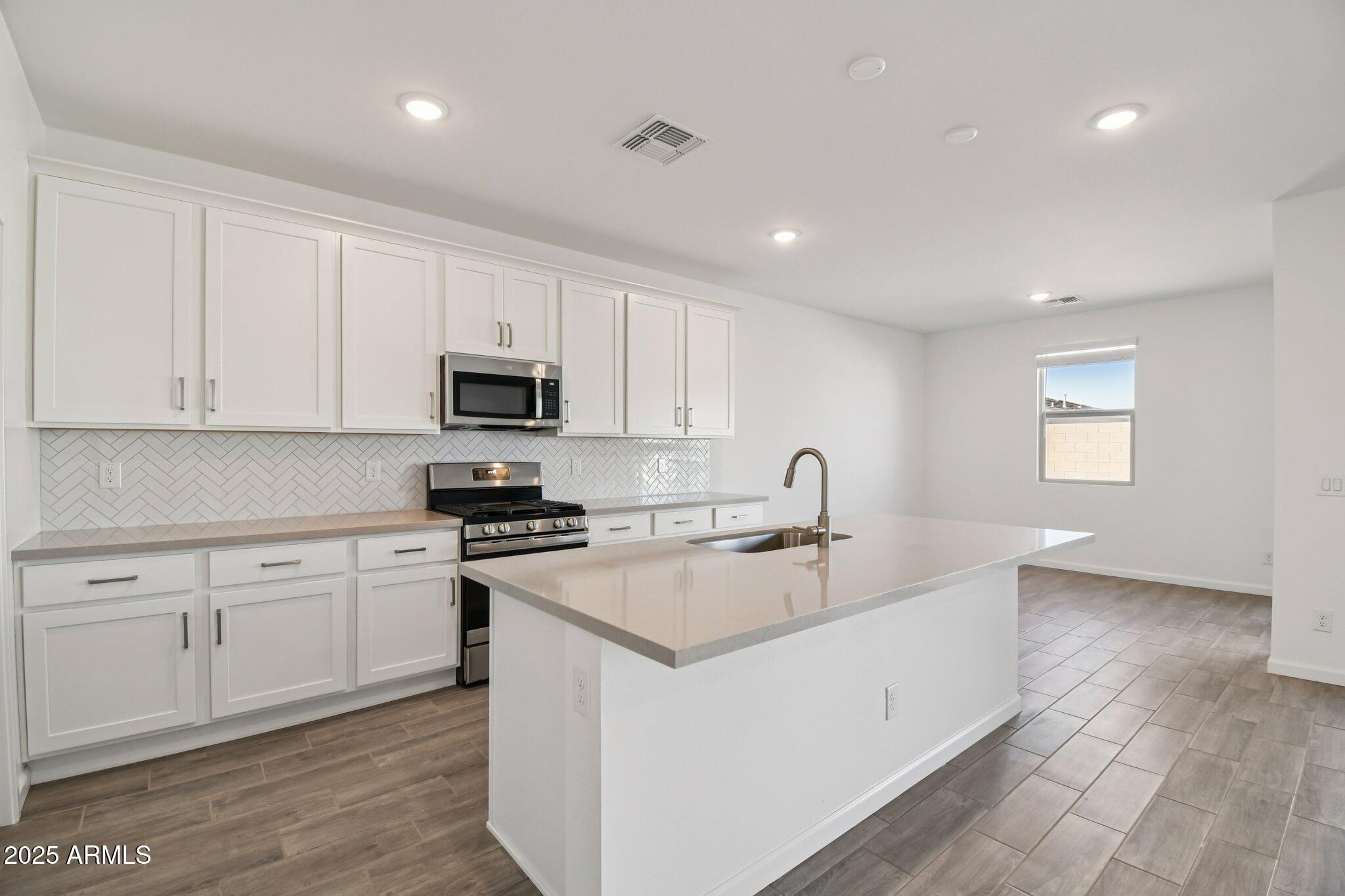 Welcome to your Dream Single-Story Super Garage Home! This Ruby Super Garage brand-new construction home plan boasts charming farmhouse architecture in the front, blending seamlessly with its surroundings. With 2,173 square feet of designer-curated living space, this gem offers a place of casual comforts and airy style. The spacious open-concept floor plan has three bedrooms, a large den, and 2.5 bathrooms. You'll love the magnificent four-panel center siding glass door, bathing the area in sunlight, and the 7 x 22 Plank Tile wood-look floors throughout the main living areas, offering elegance and easy maintenance. A chef's delight, the kitchen delivers in every way with Ivory White Quartz countertops, a stainless steel single bowl under-mount sink, a stainless steel Gas range, a large island, white Baker Blvd Herringbone tile backsplash, and white 42" upper cabinets with satin nickel cabinet hardware. This oasis home also has a 2-car tandem garage plus an Super Garage to store your big toys, classic cars, and so much more. The possibilities are endless. The Amarillo Creek community is conveniently located near Route 347, which makes it easy to commute to Phoenix, Chandler, and Mesa. It is just minutes away from Maricopa's array of dining, shopping, and entertainment options.