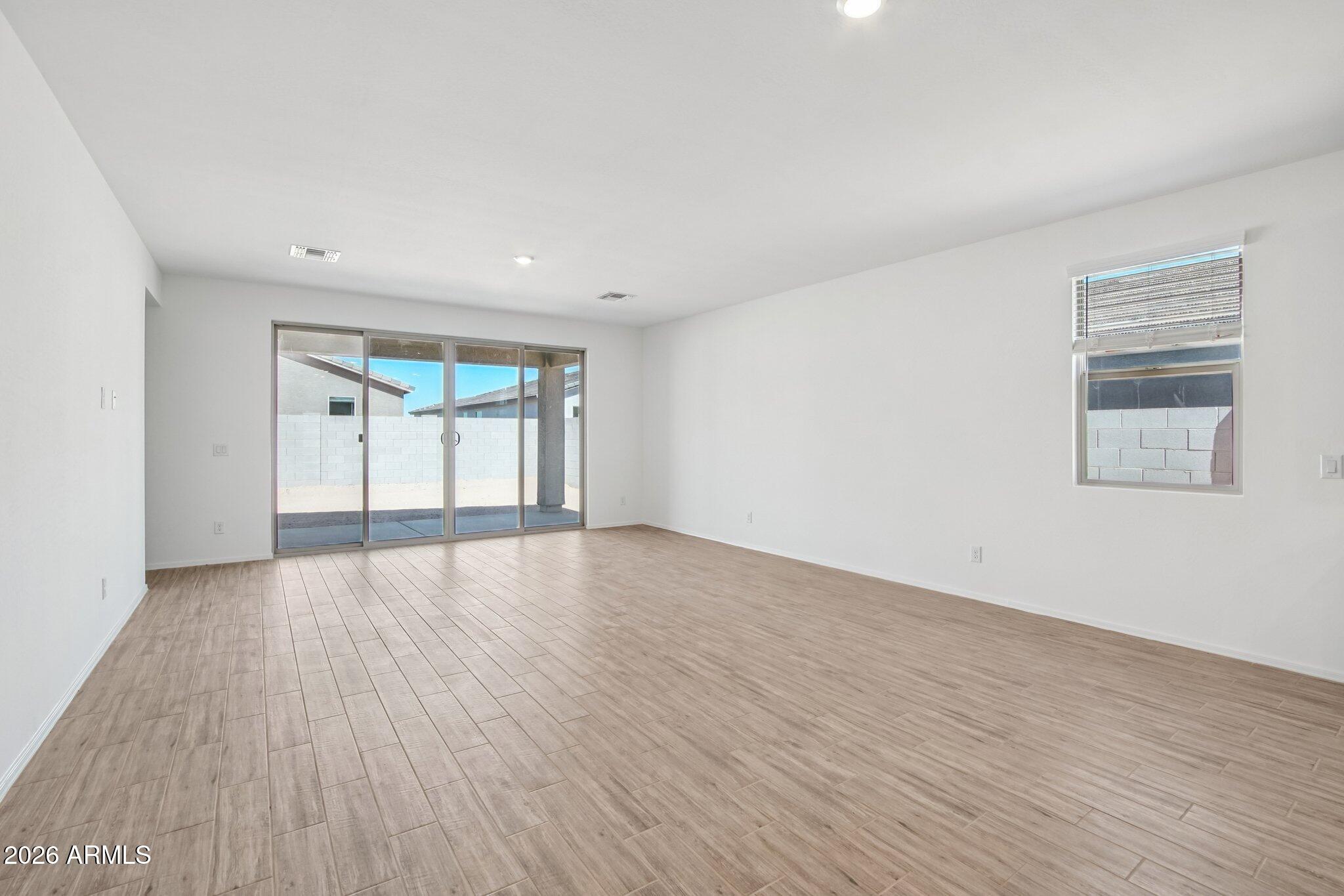 This Modern style Opal home boasts 2,123 sq ft of living space, featuring 4 bedrooms, 3 bathrooms, a 4 car tandem garage, a separate den, and ample storage throughout. The open concept kitchen is perfect for entertaining family and friends with the kitchen featuring Fairview Grey 42'' upper cabinets with Satin Nickel pull cabinet hardware, White 3 x 12 horizontal backsplash, beautiful Carrara Breeze quartz countertops, stainless steel gas stove, and a walk in pantry designed with an organizer's dream in mind. You'll love the 4-panel center meet sliding glass door that utilizes the indoor and outdoor flow for a bright airy feel, 9' ceilings and Larchmont Canton 6 x 24 plank tile flooring. This home is near the beauty of our two large green parks. The Amarillo Creek community is conveniently located near Route 347 for easy commuting to Phoenix, Chandler and Mesa. Just minutes away from an array of dining, shopping and entertainment options that Maricopa has to offer. Don't miss out on this beautifully appointed turn key home!
