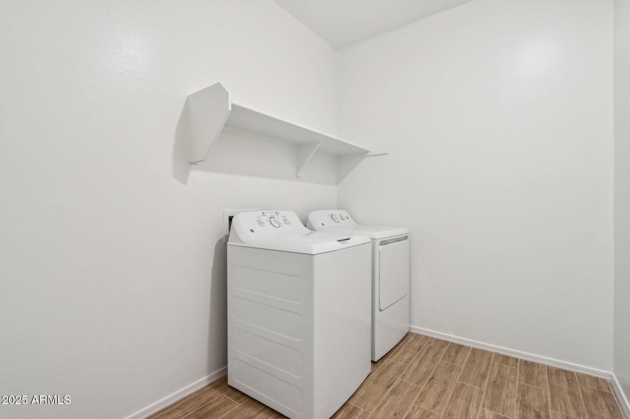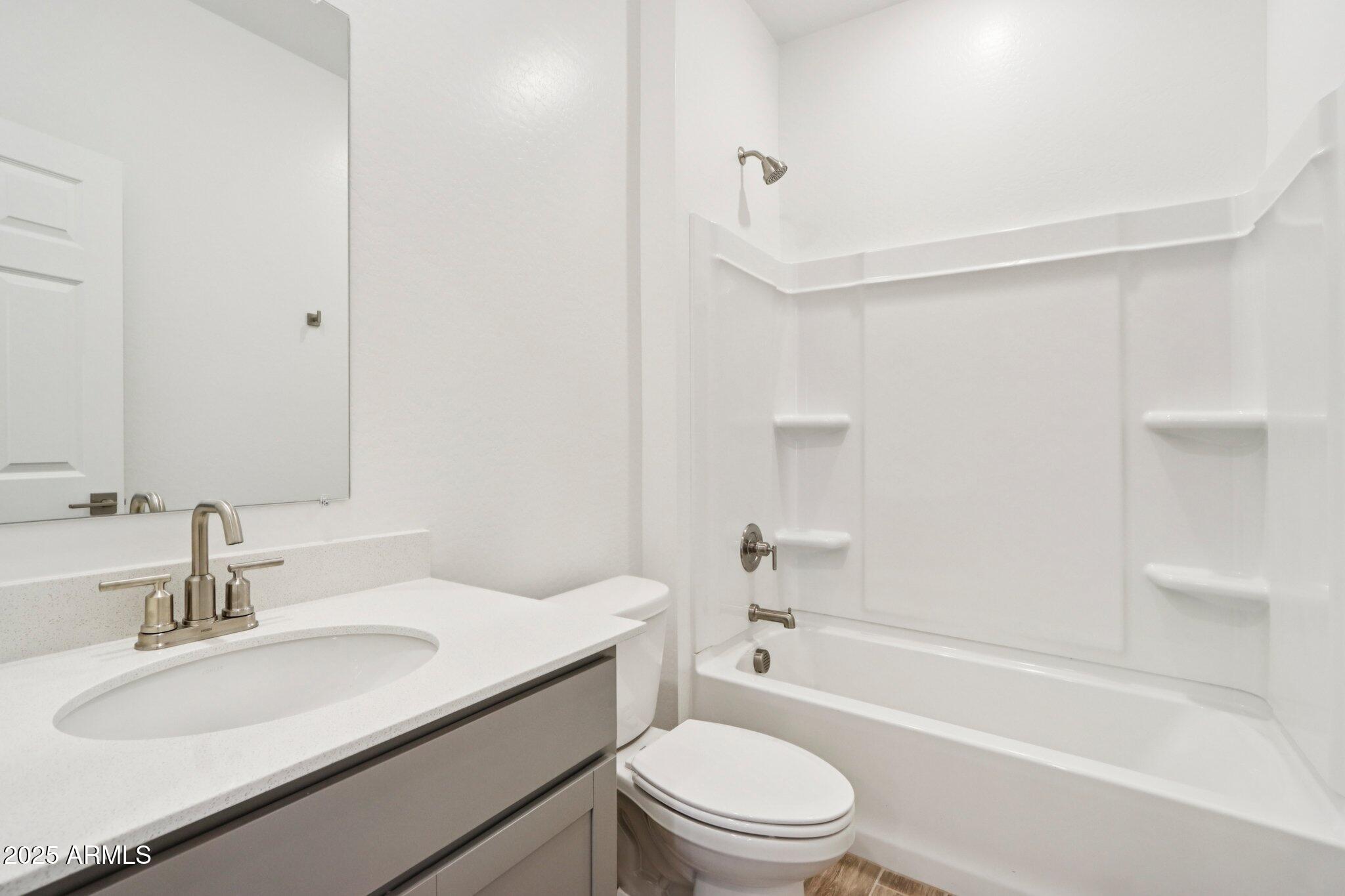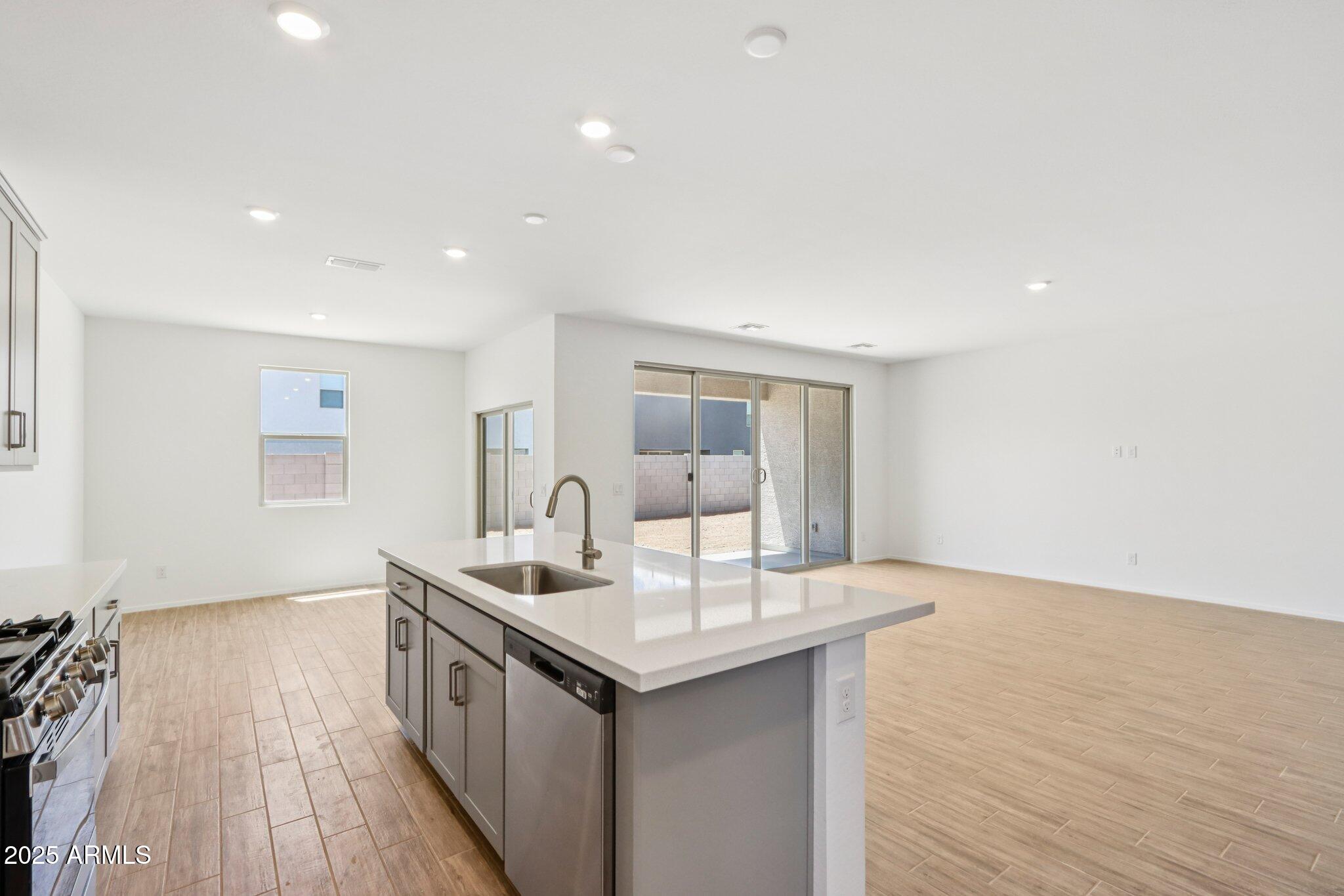 This brand-new construction showcases our Spanish exterior architecture and faces one of our larger parks at Amarillo Creek.This open concept kitchen is perfect for entertaining friends and family with Fairview Gray 42'' Upper Cabinets to included Satin Nickel Pull cabinet hardware, spacious island with a White Sand Quartz countertops, 3 x 12 white horizontal brick backsplash, a stainless steel gas range, and a convenient butler's pantry. The Jade offers 2623 sq feet of living space and features 4 bedrooms, 3.5 bathrooms, and a 3-car tandem Garage with plenty of storage throughout and a double gate. Escape to your own oasis in the separate primary suite, where getting ready is a breeze with dual sinks, walk-in closet and a generously sized bedroom. Thanks to the open concept layout, with Larchmont Canton 6 x 24 Plank tile, 9" ceilings, Large 4 - Panel Center Meet Sliding Glass Door, this home feels bright and open. The Amarillo Creek community is conveniently located near Route 347 for easy commuting to Phoenix, Chandler and Mesa. Just minutes away from an array of dining, shopping and entertainment options that Maricopa has to offer. Don't miss out on this gem of a home!