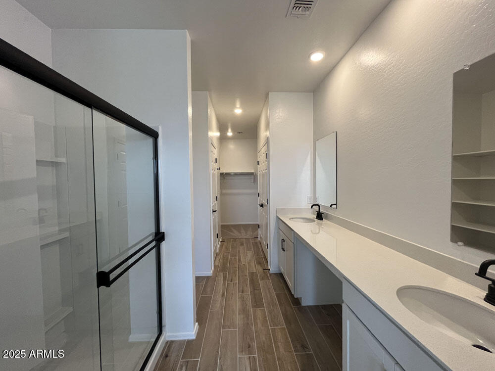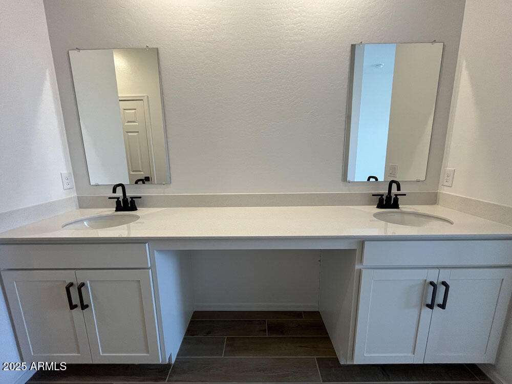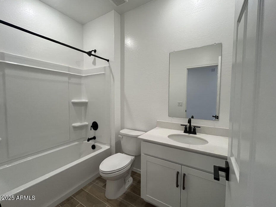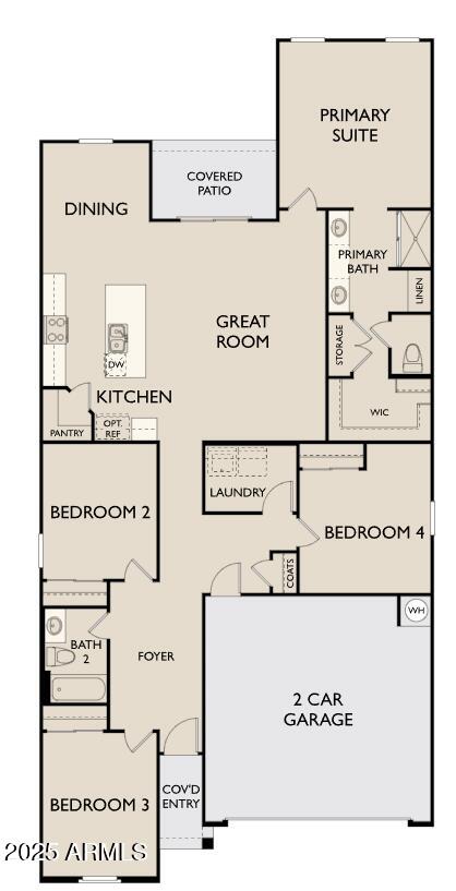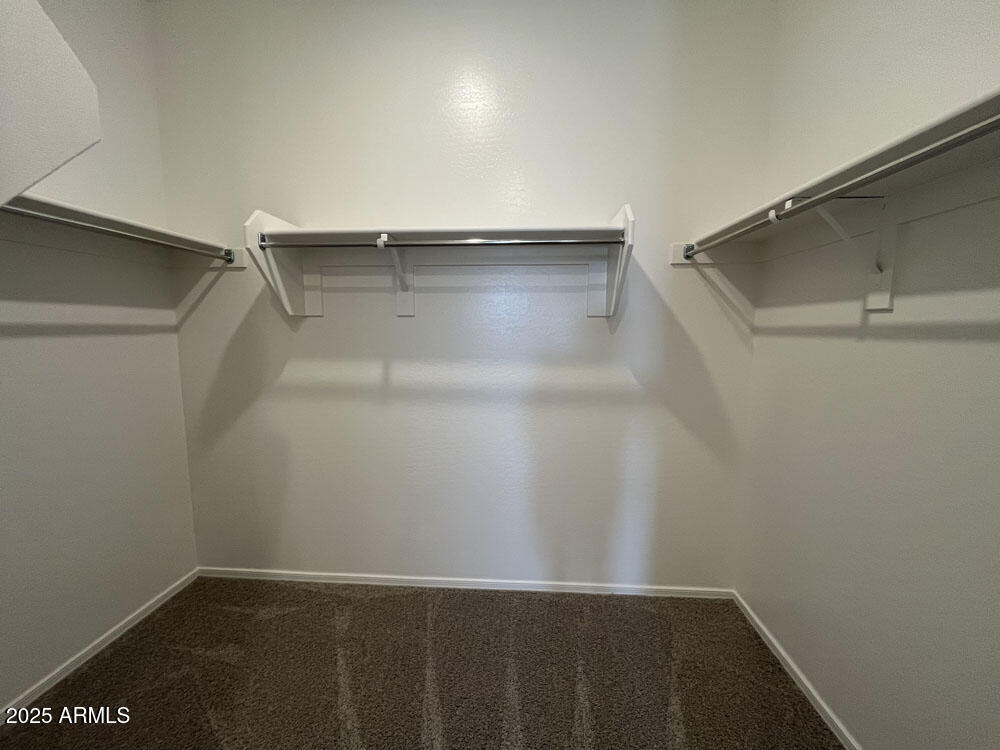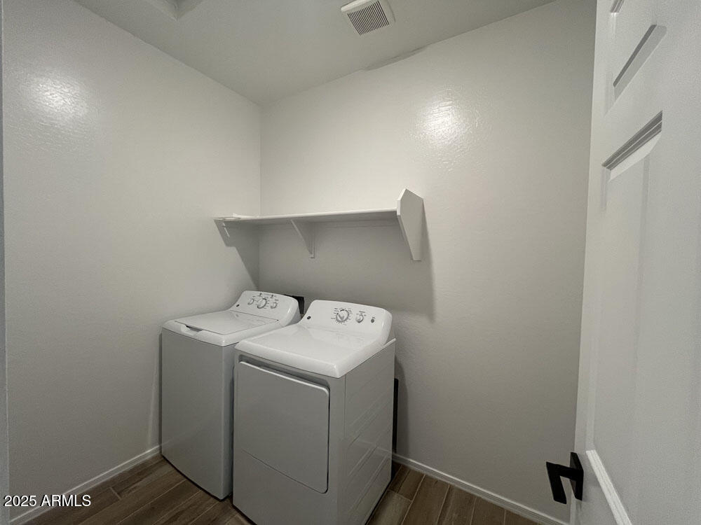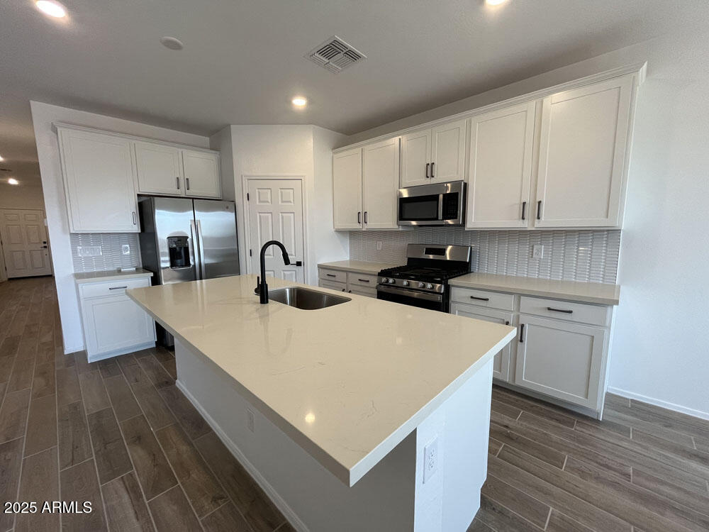 The popular Iris floorplan includes 4-bedrooms, 2-bathrooms and offers 1,797 sq ft of beautifully designed living space and a spacious 2-car garage. Step into a show-stopping kitchen featuring 42'' upper white shaker cabinets, Carrera Breeze quartz countertops, Revalia Remix Calming White Mosaic backsplash, gun metal hardware, and a large pantry. The open-concept layout is enhanced by 9-foot ceilings, Vicinity Natural 6'' x 36'' wood-look tile in the main living areas and plush carpeting in the bedrooms. This home comes fully equipped with a stainless steel appliance package, including a gas range, microwave, dishwasher, refrigerator, and even a white washer and dryer for added convenience. Retreat to a serene Primary Suite complete with a generously sized bedroom, dual sinks, a walk-in closet, and added storage. Located in a vibrant community offering scenic mountain views, multiple parks, pickleball and basketball courts, and just minutes from dining, shopping, and entertainment in Maricopa. Don't miss this opportunity to own a beautifully upgraded home in a prime location!