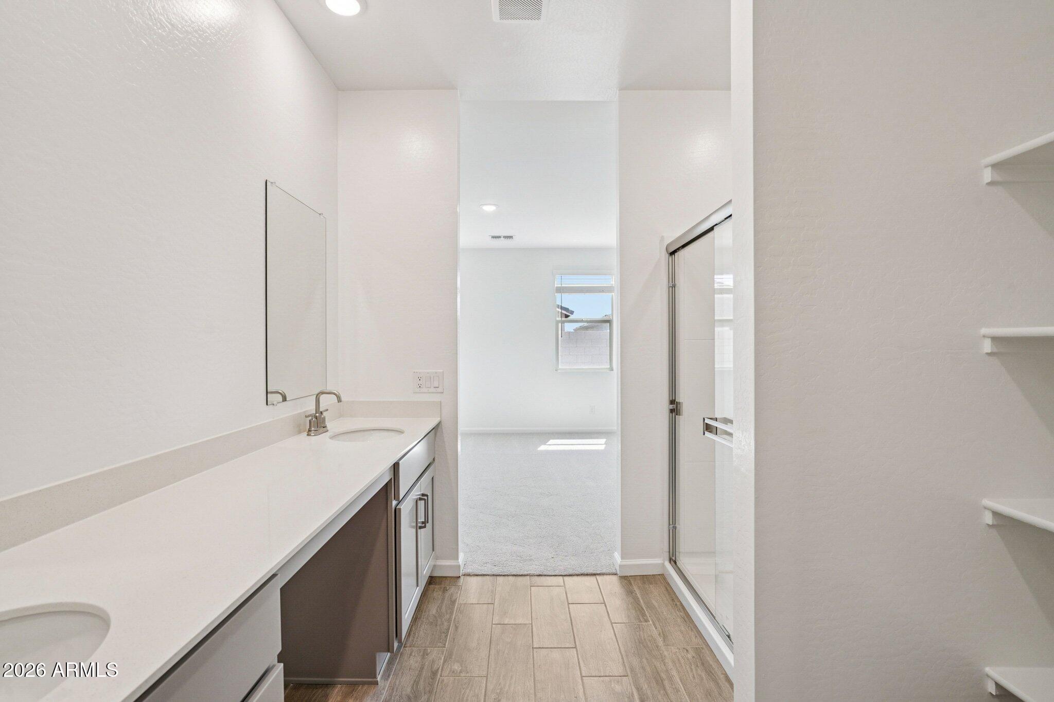 The Iris at Alba at Amarillo Creek offers 1,797 sq ft with 4 beds, 2 baths, and a 2-car garage. This Farmhouse -style home features an open kitchen, dining, and great room, plus a private primary suite with a large bath and walk-in closet. Upgrades include the Milan Collection with grey 42'' cabinets with satin nickel pulls, White Sand quartz counters in both the kitchen and bathrooms, 4 x 16 Arnold white backsplash and Lakewood Vista 8 x 36 wood-plank tile. Plush carpet in the den and bedrooms. Home comes move-in ready with GE stainless appliances, washer, dryer, blinds and pendant prewires. Community amenities include parks, trails, pickleball, basketball, tot lots, and green spaces.