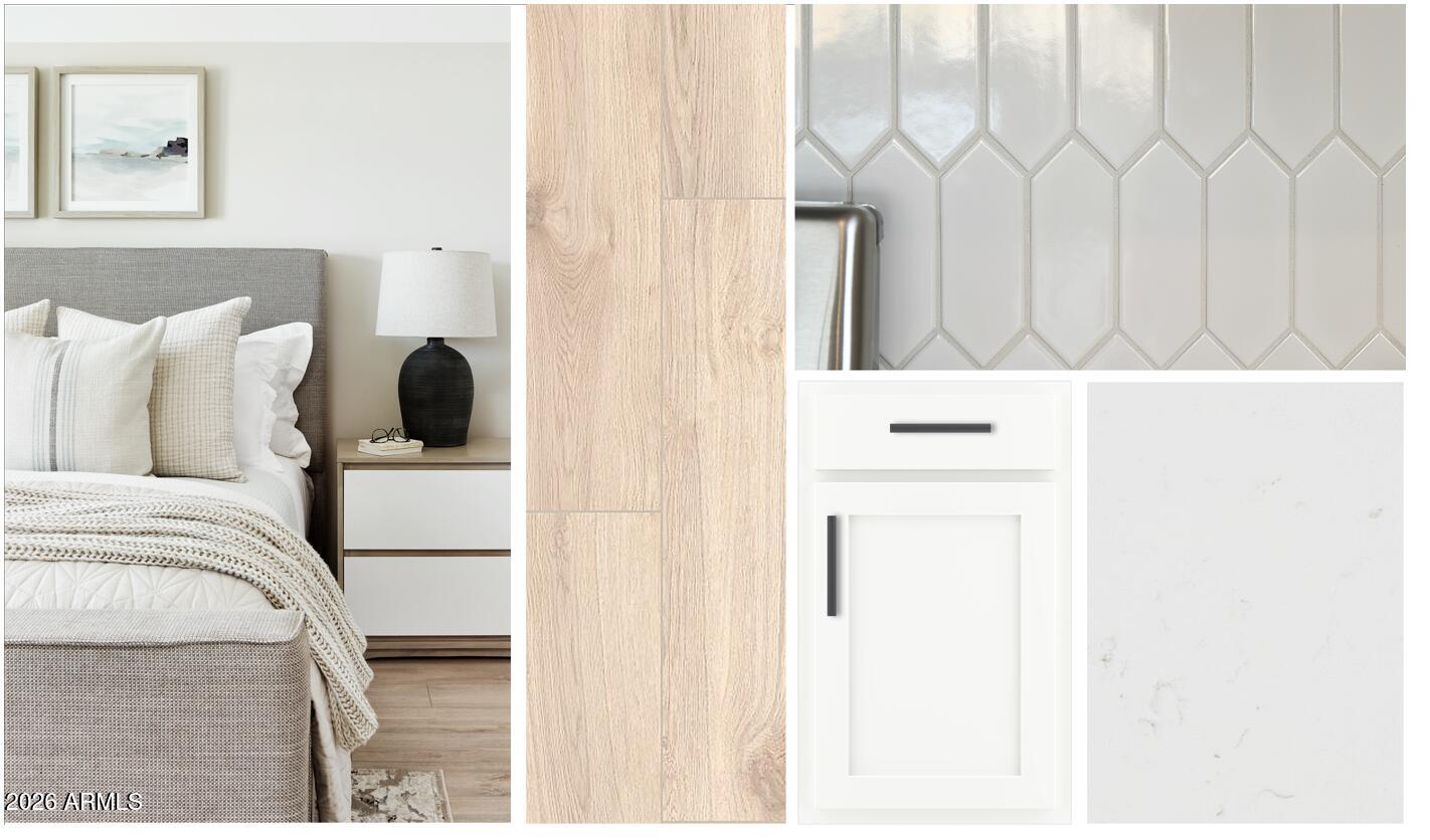 The Poppy at Alba at Amarillo Creek offers 2,082 sq ft with 4 beds, 3 baths, an open den, and a 2-car garage. This Modern-style home features an open kitchen, dining, and great room, plus a private primary suite with a large bath and walk-in closet. Upgrades include the Harmony Collection with white 42'' cabinets with gun metal pulls, Biancone quartz counters, Baker Blvd. White tile backsplash, Honey 8 x 36 wood-plank tile, black fixtures, and plush carpet. Home comes move-in ready with GE stainless appliances, washer, dryer, blinds, soft water loop, and pendant prewires. Community amenities include parks, trails, pickleball, basketball, tot lots, and green spaces.