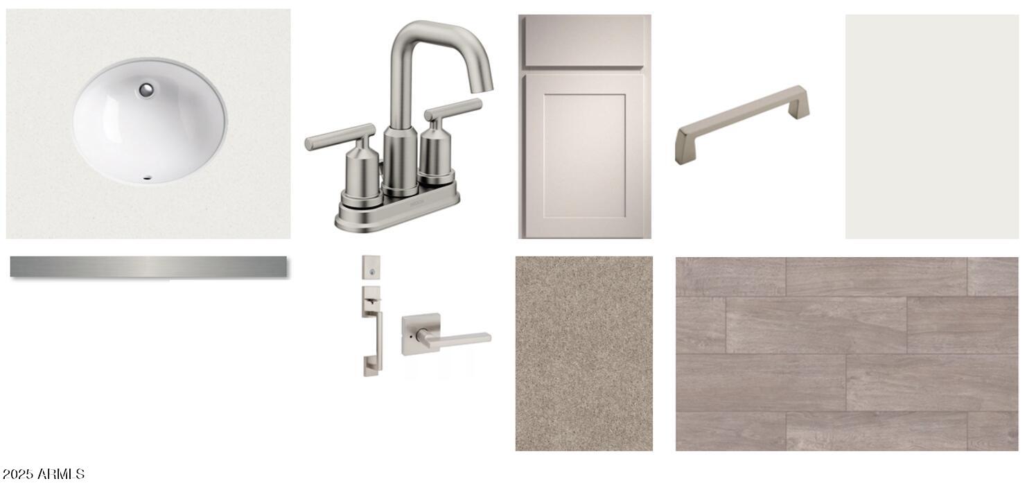 Enjoy a chef-style kitchen with 42'' gray shaker cabinets, White Sand Quartz countertops, textured Arnold White 4x16 backsplash, and stainless steel appliances - including gas range, fridge, and dishwasher. Lakewood Vista 7'' x 22'' wood-look tile flows through the main areas, while plush carpet adds comfort to bedrooms and the den.