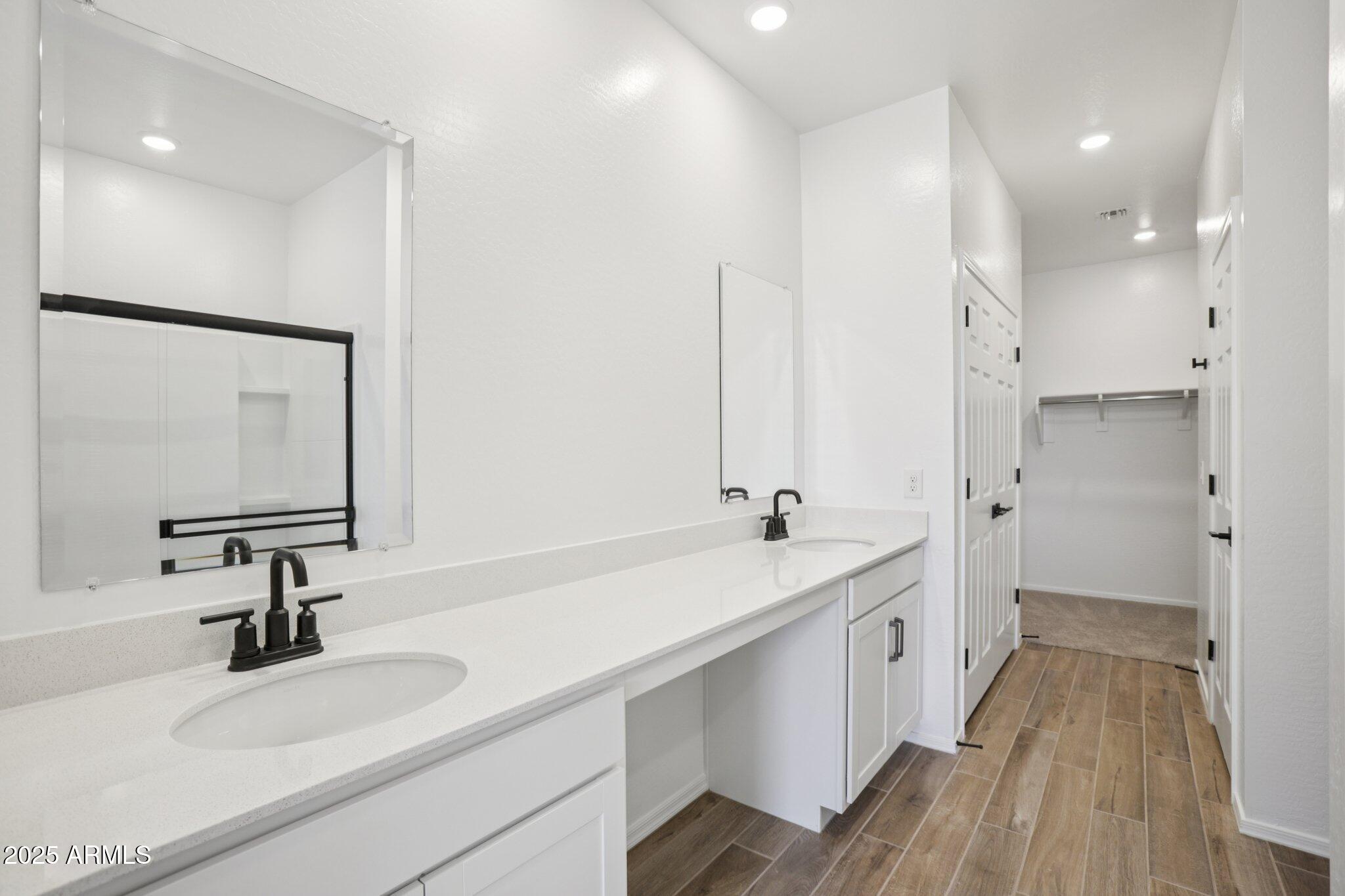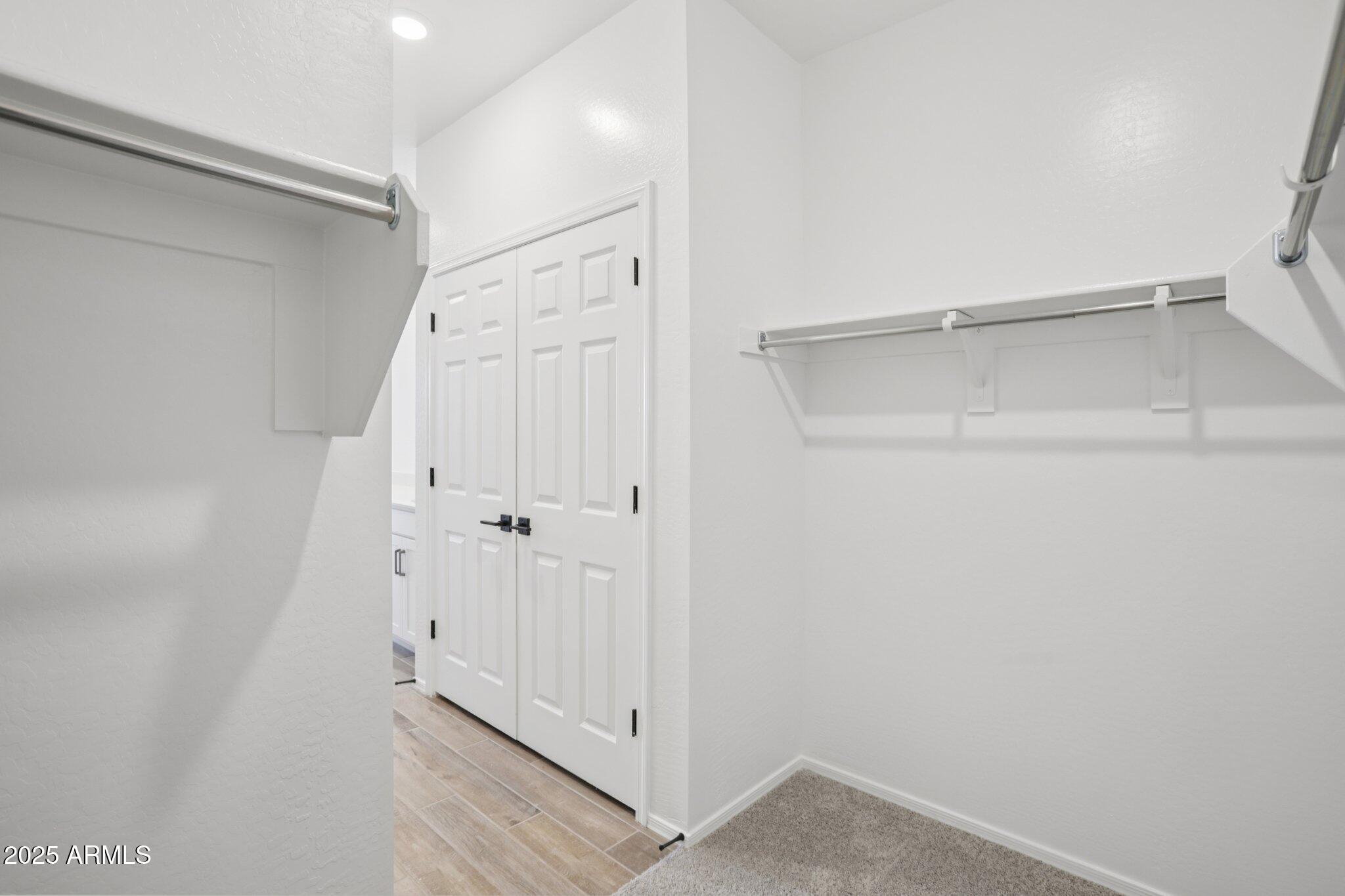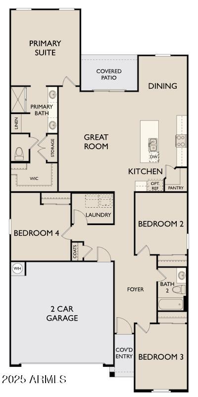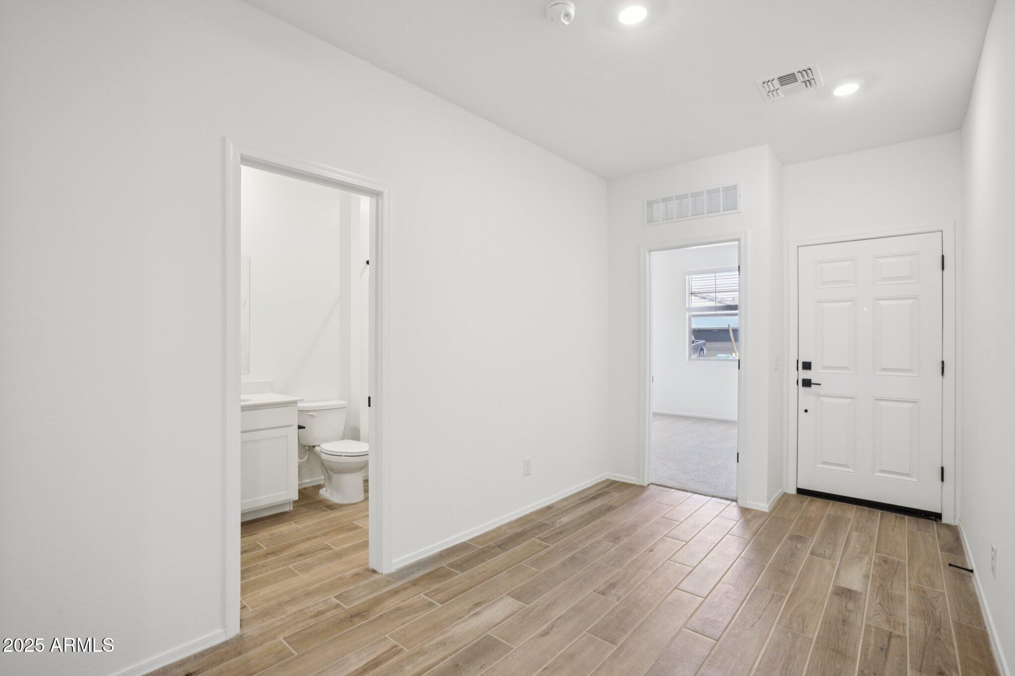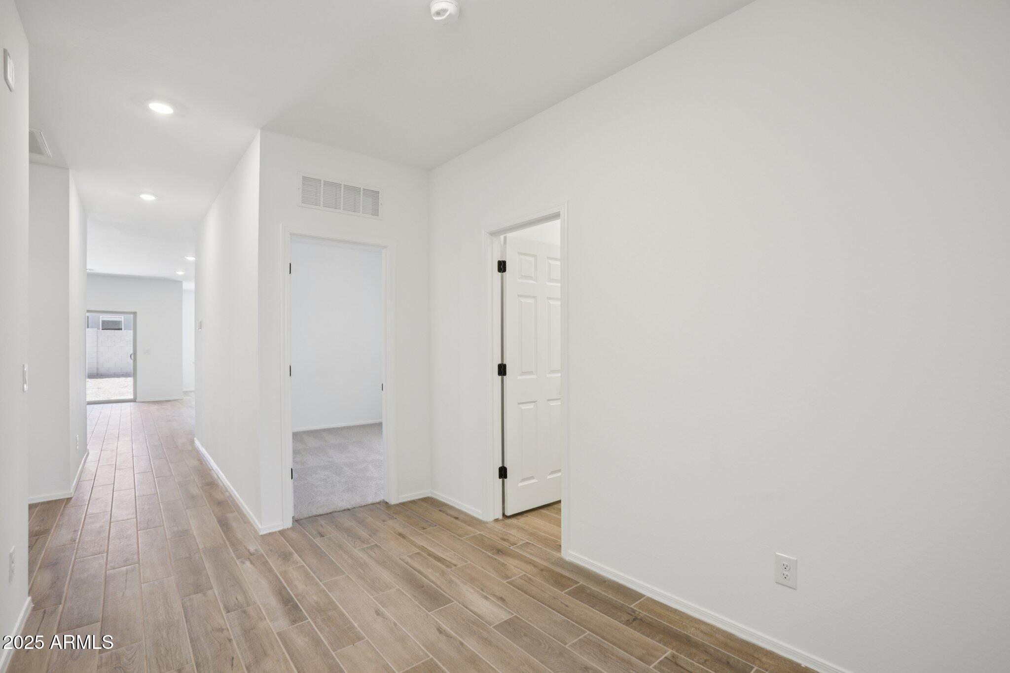 The popular Iris floorplan includes 4-bedrooms, 2-bathrooms and offers 1,797 sq ft of beautifully designed living space and a spacious 2-car garage. Step into a show-stopping kitchen featuring 42'' upper white shaker cabinets, Carrera Breeze quartz countertops, Revalia Remix Calming White Mosaic backsplash, gun metal hardware, and a large pantry. The open-concept layout is enhanced by 9-foot ceilings, Vicinity Natural 6'' x 36''wood-look tile in the main living areas and plush carpeting in the bedrooms. This home comes fully equipped with a stainless steel appliance package, including a gas range, microwave, dishwasher, refrigerator, and even a white washer and dryer for added convenience. Retreat to a serene Primary Suite complete with a generously sized bedroom, dual sinks, a walk-in closet, and added storage. Located in a vibrant community offering scenic mountain views, multiple parks, pickleball and basketball courts, and just minutes from dining, shopping, and entertainment in Maricopa. Don't miss this opportunity to own a beautifully upgraded home in a prime location!