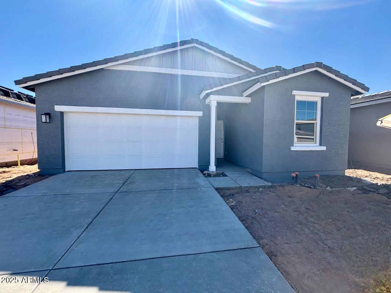 This new construction Farmhouse boasts 1,797 sq ft of living space, featuring 4 bedrooms, 2 bathrooms, a 2-car garage, and ample storage throughout. The open-concept kitchen is perfect for entertaining friends and family. The kitchen features 42'' upper gray tone cabinets, a textured backsplash, beautiful quartz countertops, and satin nickel hardware. Escape to your oasis in the primary suite, where getting ready is a breeze with dual sinks, a walk-in closet, and a generously sized bedroom. This home feels bright and open thanks to the 9-foot ceilings. The Iris comes fully equipped with stainless steel appliances, including a gas range, microwave, dishwasher, and fridge, plus the appliance suite is completed with a white washer and dryer. The Amarillo Creek community is conveniently located near Route 347 for easy commuting to Phoenix, Chandler, and Mesa. Just minutes away from an array of dining, shopping, and entertainment options that Maricopa has to offer. Don't miss out!