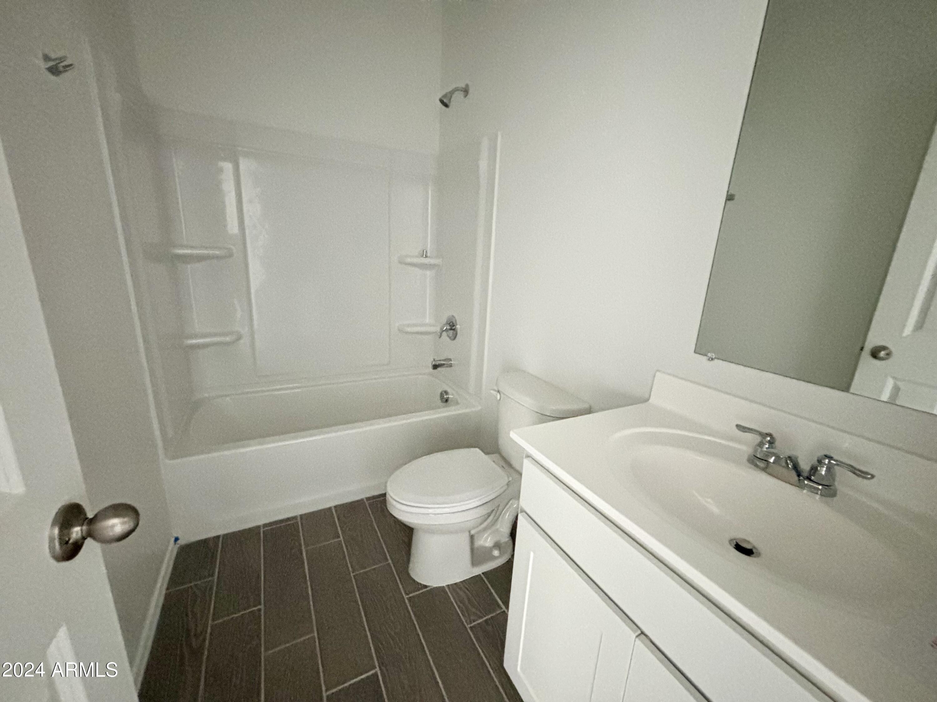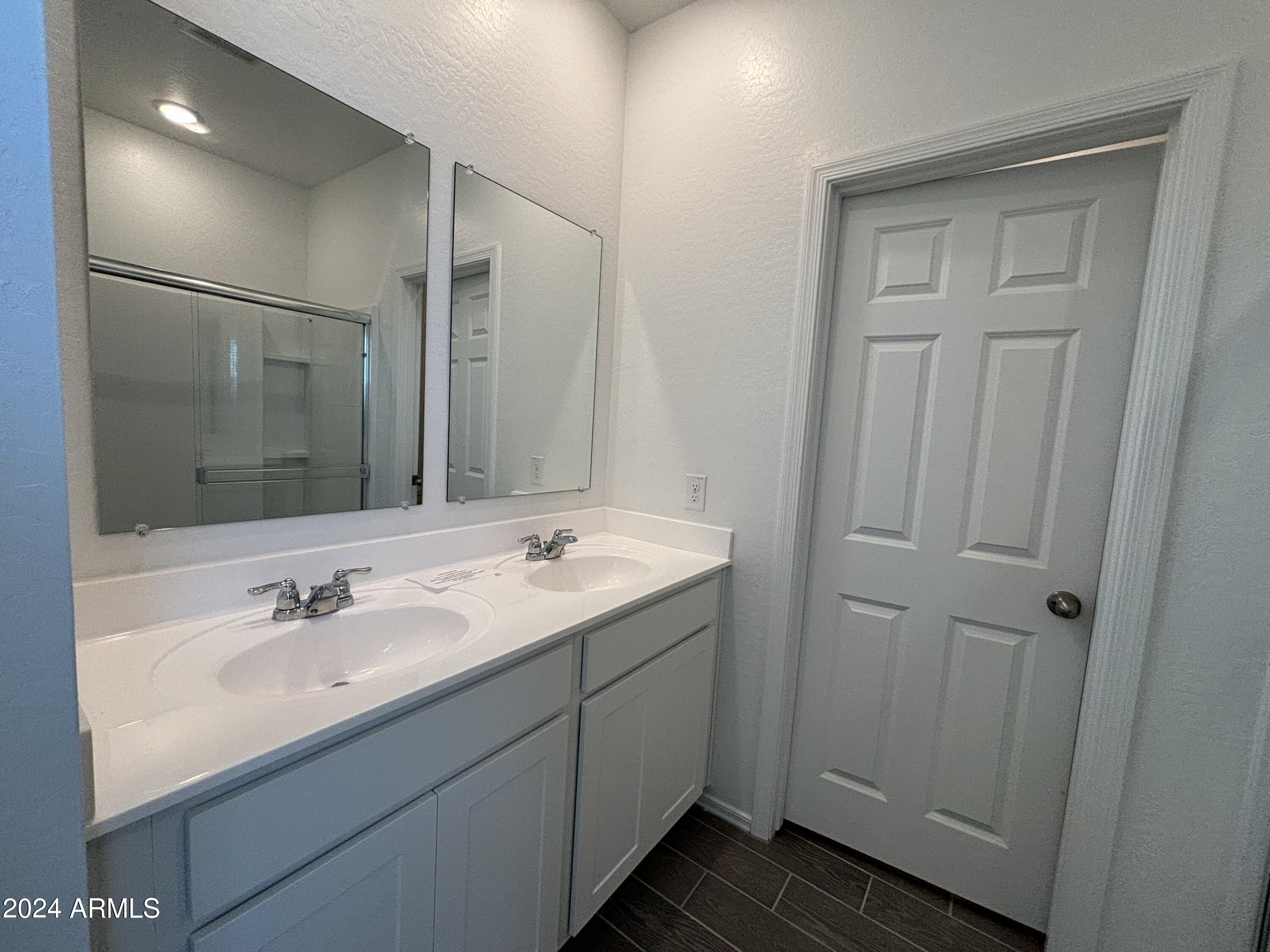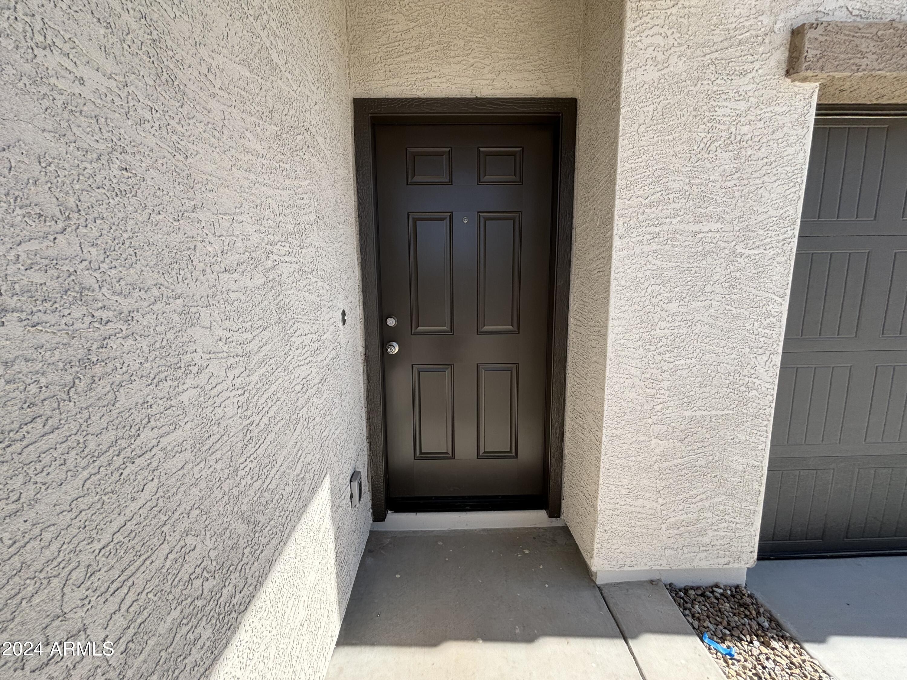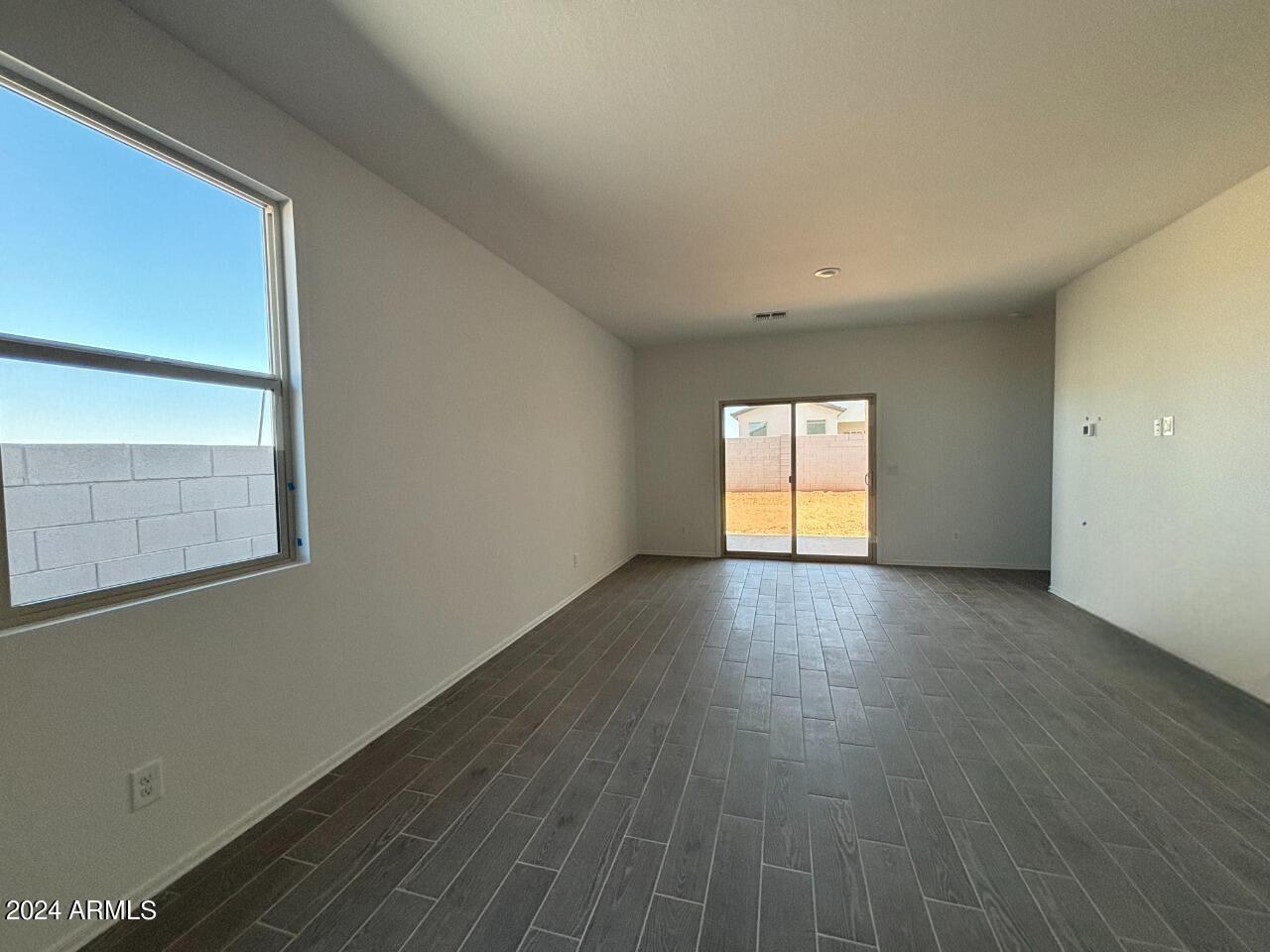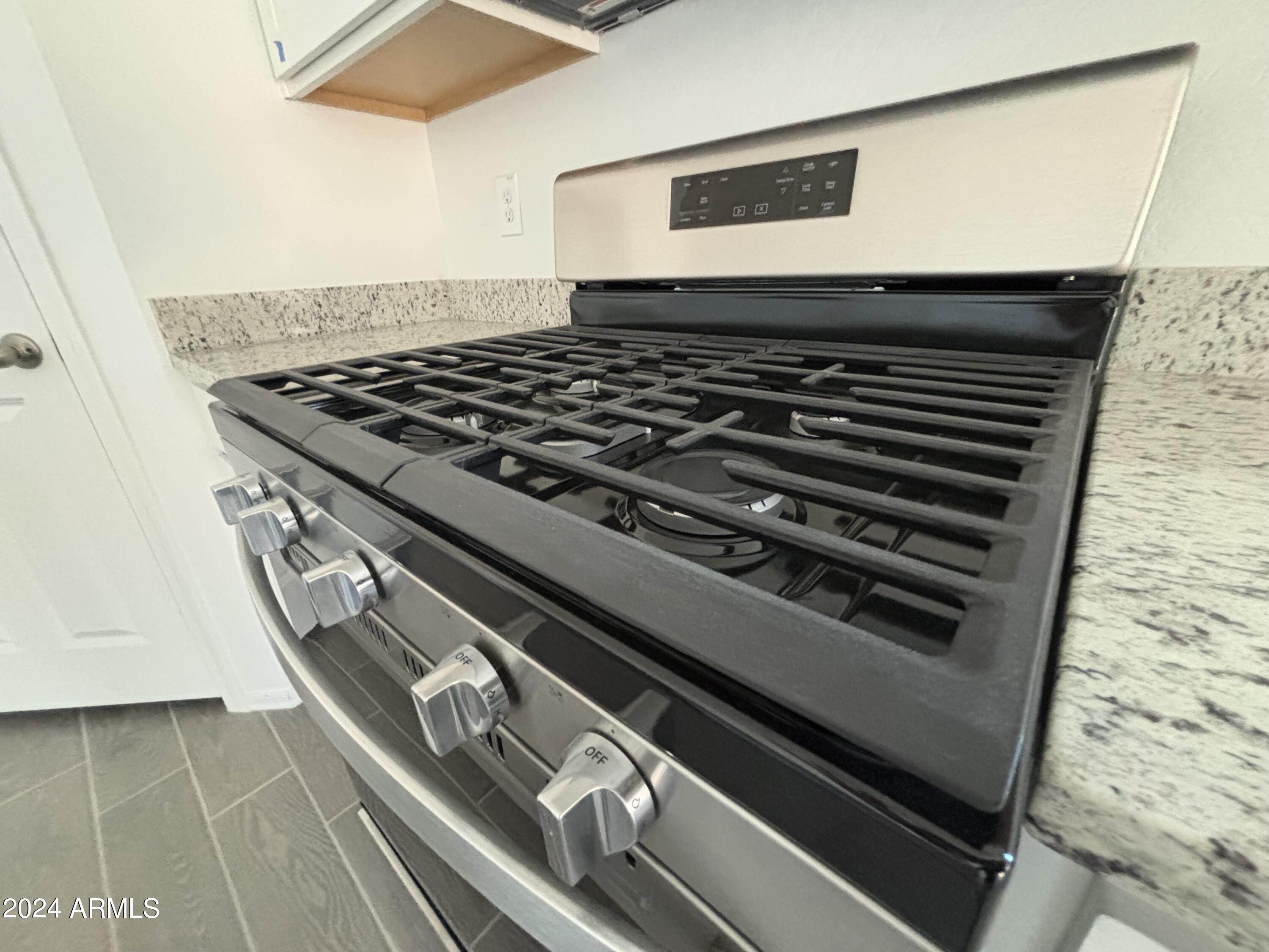 Welcome to Amarillo Creek, an exciting and vibrant new community in Maricopa, Arizona! This stunning home, with its impressive 3 bedrooms and 2 baths, boasts an exquisite design. Step inside and prepare to be wowed by the professionally appointed features throughout. The heart of this home is the beautiful kitchen, complete with granite countertops and sleek white cabinets. Stainless steel appliances add a touch of modern elegance, making this space a joy to cook and entertain in. The upgraded tile flooring, laid seamlessly throughout the home except in bedrooms and den, exudes a contemporary charm. The grey wood look tile, complemented by grey grout, adds a stylish touch, while the beige speckled countertops bring warmth and sophistication to the overall aesthetic.
