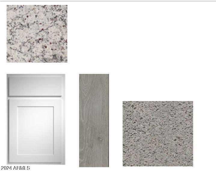 The heart of this home is the beautiful kitchen, complete with granite countertops and sleek white cabinets. The upgraded tile flooring, laid seamlessly throughout the home except in bedrooms and den, exudes a contemporary charm. The grey wood look tile, complemented by grey grout, adds a stylish touch, while the beige speckled countertops bring warmth and sophistication to the overall aesthetic.
