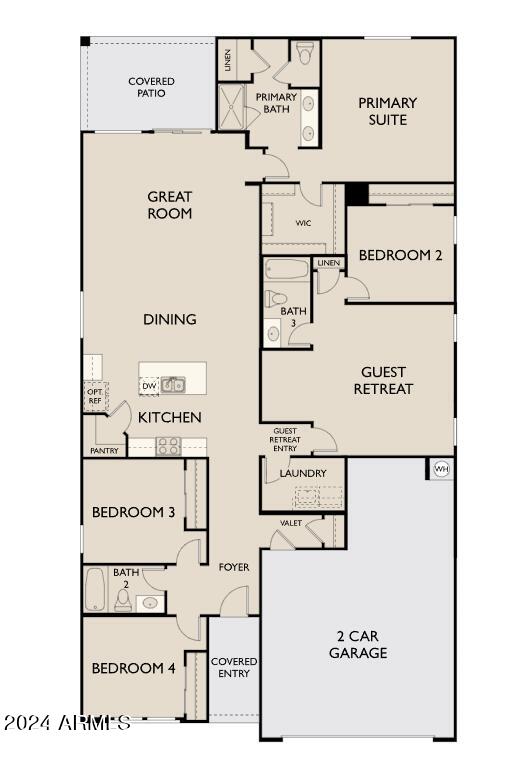 Step into luxury and comfort with the Sunflower Plan, a meticulously designed 2200 sq ft home offering unparalleled living spaces and exquisite details throughout. This spacious abode features 4 bedrooms, 3 full baths, and a coveted guest retreat, ensuring ample room for relaxation and entertainment. As you enter, you are greeted by 8 ft tall interior doors that lend an air of grandeur, complemented by hardwood-like plank tile floors that flow seamlessly throughout the living areas, enhancing both beauty and durability. The bedrooms offer plush carpeting for cozy retreats. The heart of the home is the chef-inspired kitchen, complete with stainless steel appliances and a single-bowl undermount sink, making meal preparation a breeze. Adorned with white shaker style cabinets accented by gray cabinetry on the island and adorned with sleek white quartz countertops and a neutral backsplash, the kitchen is as stylish as it is functional. Each bathroom boasts elegant square sinks adding a touch of sophistication. The inclusion of a softwater loop ensures water quality throughout the home, while practical amenities such as a garage door opener, 2-inch faux wood white blinds, and all appliances including fridge, washer and dryer, elevate convenience to new heights. The Sunflower Plan exemplifies contemporary living at its finest, offering not just a home, but a lifestyle of comfort and sophistication. Whether hosting gatherings in the spacious living areas or enjoying quiet moments in your private sanctuary, every detail of this home has been thoughtfully curated to exceed expectations. Discover the Sunflower Plan today and envision the possibilities of luxury living tailored to your every need. This is more than a home; it's your sanctuary in every sense of the word.