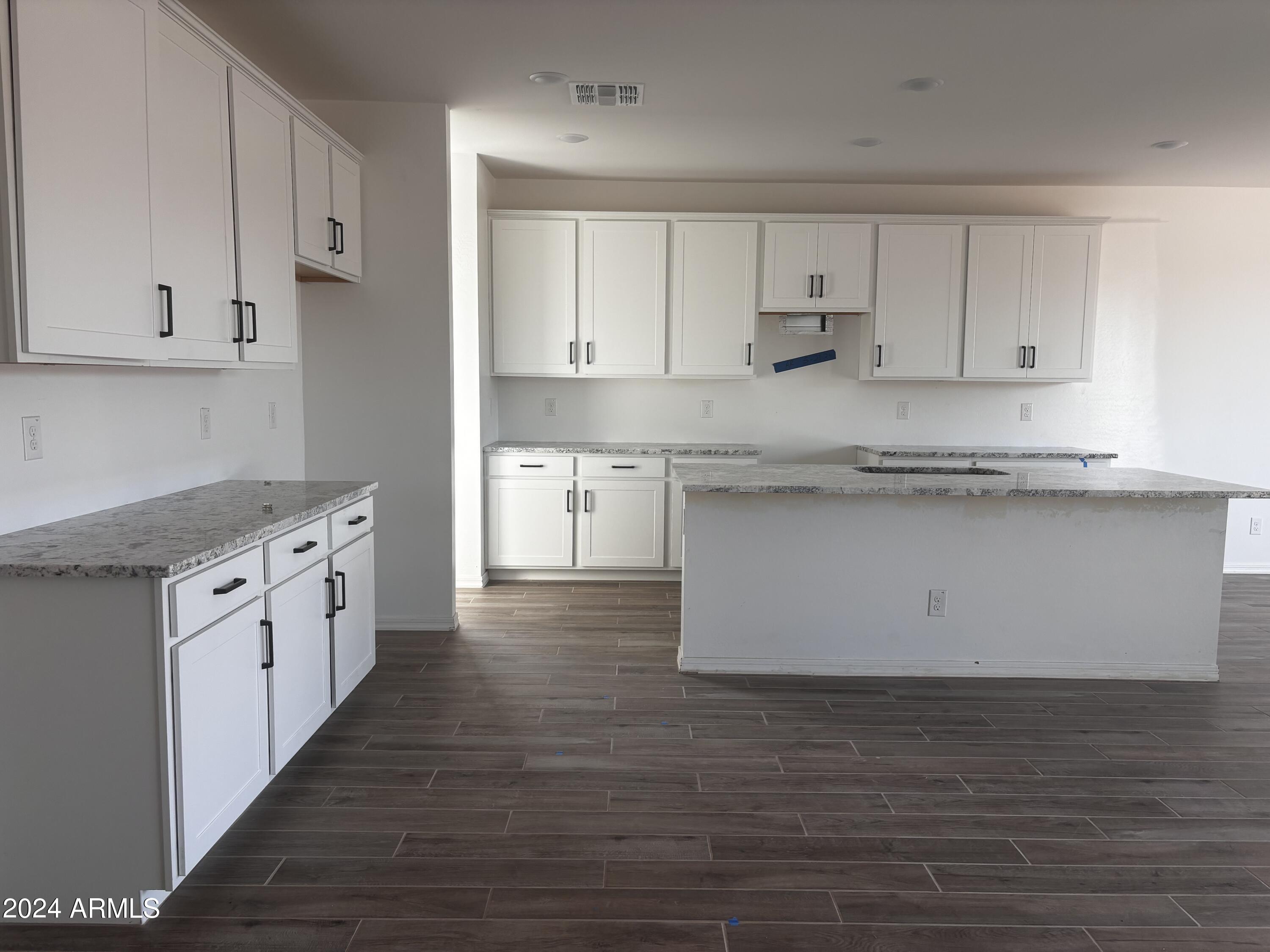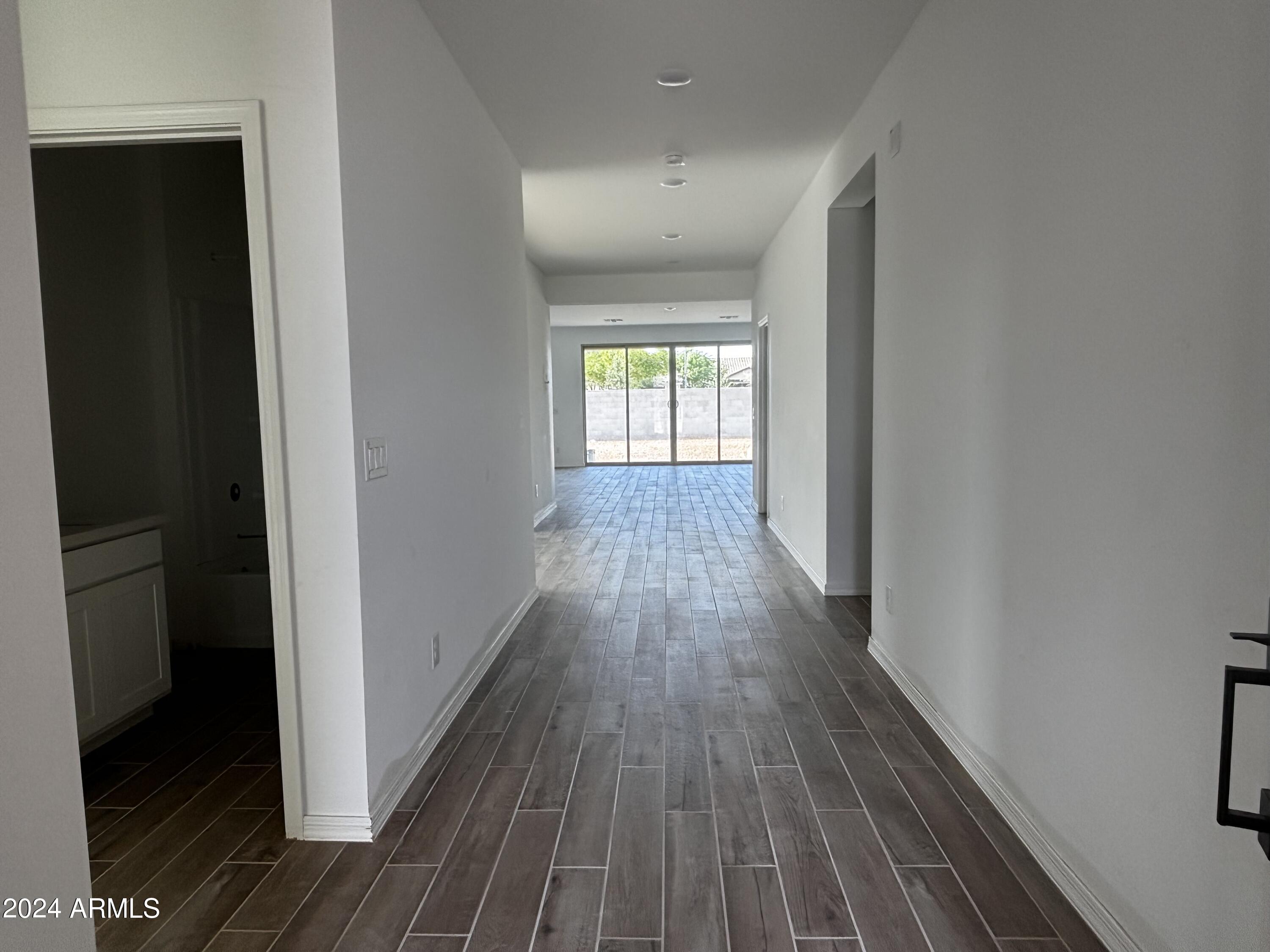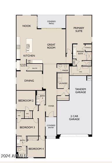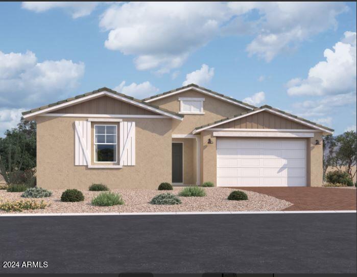 Welcome to this brand-new construction home! You drive up to a Farmhouse exterior with front desert landscaping, with the interior boasting 2623 sq ft on all one level offering a comfortable and spacious living space. The well-designed open concept floor plan features 9ft ceilings, 4 bedrooms and 3 and a half bathrooms with a 3-car tandem garage. Bedrooms 3 and 4 share a Jack-N-Jill bathroom in the front of the home, along with an additional bedroom and bathroom, while the primary suite is tucked away in the back of the home creating the ideal split floorplan. All bathrooms provide a clean quartz countertop with square modern sinks. The primary bedroom in the back of the home offers a spacious and private retreat with double square sinks, quartz countertops for the vanity and primary shower surrounds, extra linen closet for storage, and private water closet. The 3-car tandem garage allows for ample storage and additional parking. The design promotes seamless flow between the living, dining, and kitchen areas making it ideal for entertaining. Additionally, the formal dining space has a butler pantry are that connects into the kitchen creating an elegant space with additional cabinetry. The kitchen boasts a large island with beautiful granite countertops, contemporary shaker style white 42" upper cabinets, and subway style backsplash in the kitchen. The large great room offers ample entertaining space with a 8ft 4-Panel Slider for easy access to the covered patio. This home is fully move-in ready with all your appliances installed! You'll find stainless-steel kitchen appliances including dishwasher, gas range, and refrigerator. The plank tile floors throughout the home offer durability and easy maintenance, while creating a cohesive and stylish look. Plush carpeting with an enhanced carpet pad in the bedrooms adds a touch of comfort and coziness. In the laundry room, located off the garage entry, the matching washer and dryer ensure your home is equipped to take on whatever your family throws at it! Estimated to be complete in June. Located right off the new Loop 202 and Dobbins. Great location close to dining, freeways, parks, and entertainment.