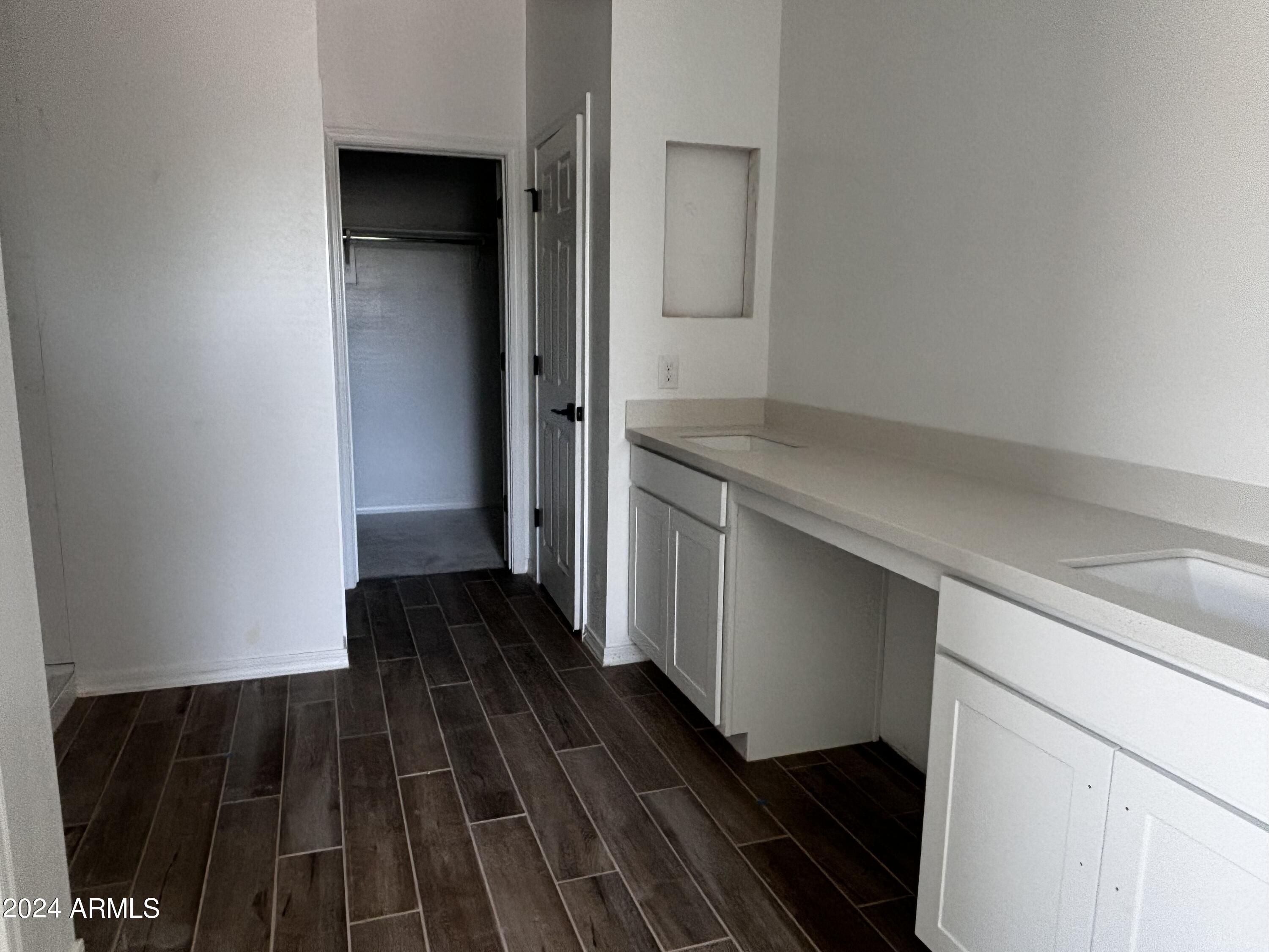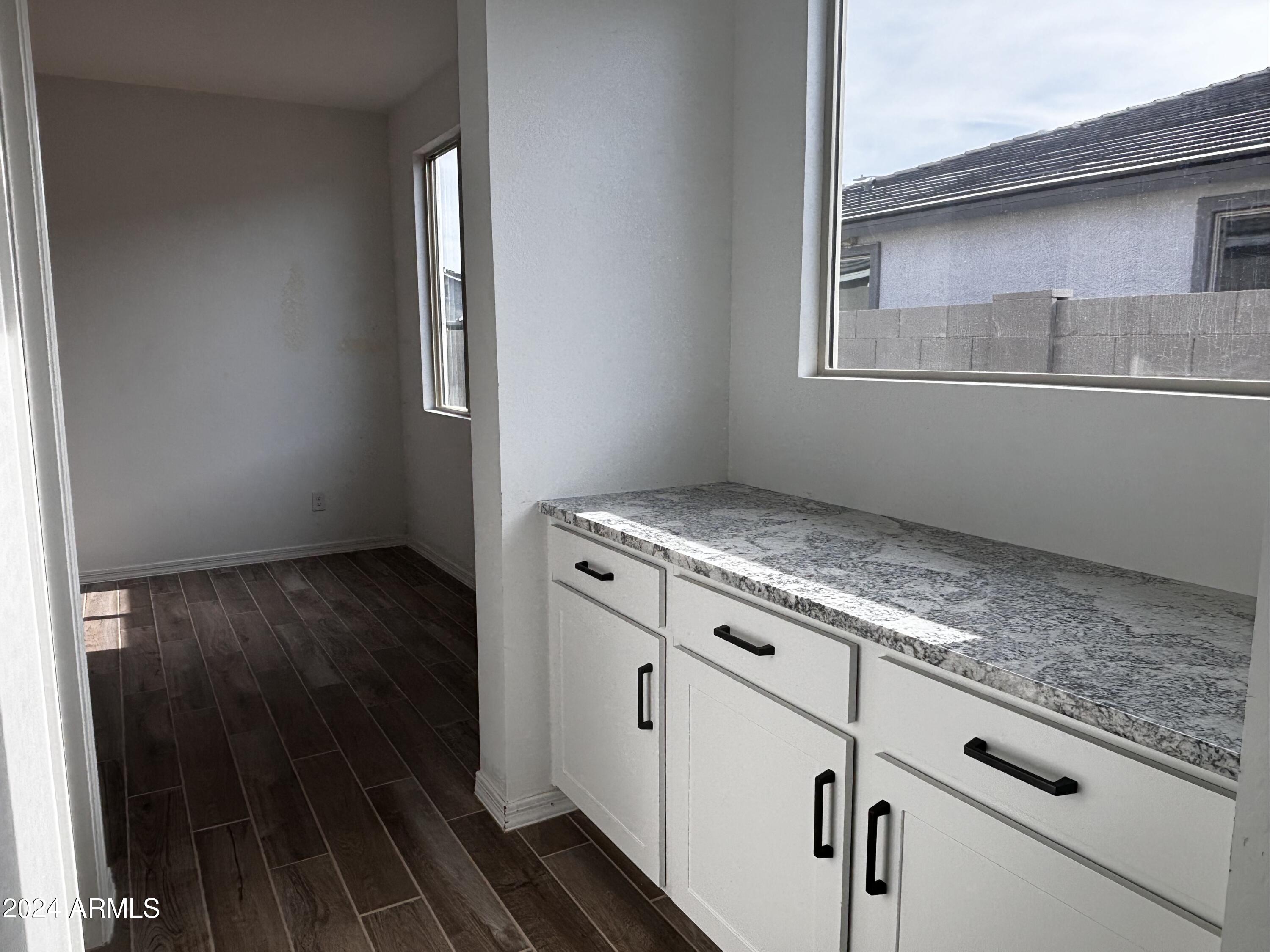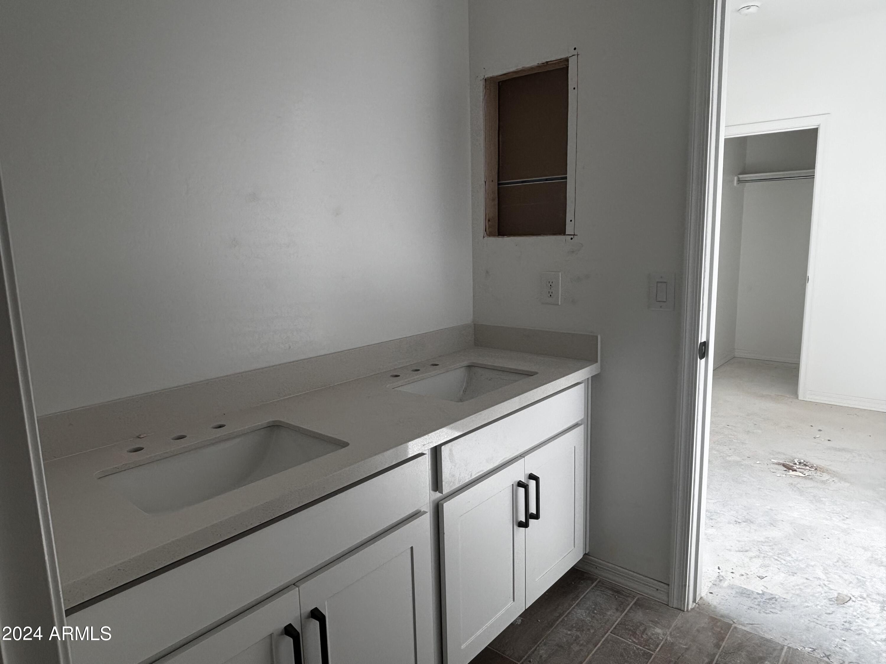 Welcome to this brand-new construction home! You drive up to a Farmhouse exterior with front desert landscaping, with the interior boasting 2623 sq ft on all one level offering a comfortable and spacious living space. The well-designed open concept floor plan features 9ft ceilings, 4 bedrooms and 3 and a half bathrooms with a 3-car tandem garage. Bedrooms 3 and 4 share a Jack-N-Jill bathroom in the front of the home, along with an additional bedroom and bathroom, while the primary suite is tucked away in the back of the home creating the ideal split floorplan. All bathrooms provide a clean quartz countertop with square modern sinks. The primary bedroom in the back of the home offers a spacious and private retreat with double square sinks, quartz countertops for the vanity and primary shower surrounds, extra linen closet for storage, and private water closet. The 3-car tandem garage allows for ample storage and additional parking. The design promotes seamless flow between the living, dining, and kitchen areas making it ideal for entertaining. Additionally, the formal dining space has a butler pantry are that connects into the kitchen creating an elegant space with additional cabinetry. The kitchen boasts a large island with beautiful granite countertops, contemporary shaker style white 42" upper cabinets, and subway style backsplash in the kitchen. The large great room offers ample entertaining space with a 8ft 4-Panel Slider for easy access to the covered patio. This home is fully move-in ready with all your appliances installed! You'll find stainless-steel kitchen appliances including dishwasher, gas range, and refrigerator. The plank tile floors throughout the home offer durability and easy maintenance, while creating a cohesive and stylish look. Plush carpeting with an enhanced carpet pad in the bedrooms adds a touch of comfort and coziness. In the laundry room, located off the garage entry, the matching washer and dryer ensure your home is equipped to take on whatever your family throws at it! Estimated to be complete in June. Located right off the new Loop 202 and Dobbins. Great location close to dining, freeways, parks, and entertainment.