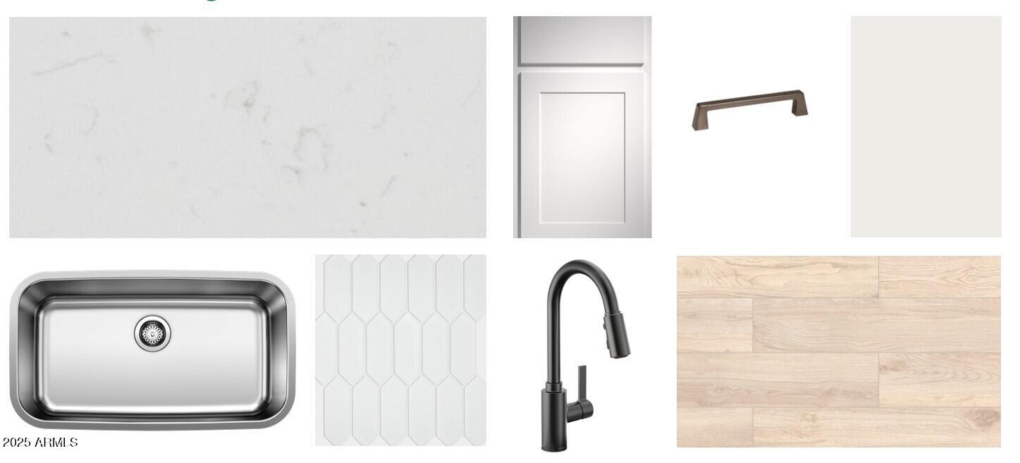 Inside, you'll be welcomed by 9 ft ceilings, enhancing the home's sense of openness and luxury with 8 ft interior doors throughout. The kitchen showcases white 42" cabinets that give a fresh, modern aesthetic with cool gunmetal hardware. The white Carrara Breeze quartz island adds a touch of luxury, while the stunning mosaic backsplash provides a pop of texture. The kitchen is equipped with an undermount stainless steel sink, matte black kitchen faucet, all appliances, and pendant prewire ensuring both style and practicality. Whether preparing a meal or enjoying a cup of coffee, this kitchen is sure to impress. The kitchen opens to an open concept dining space and great room. The great room is flooded with natural light by the upgraded 4 panel sliding glass door leading to your covered patio and backyard. The open-concept layout connects the kitchen, dining, and living areas, creating a perfect flow for everyday living or entertaining.