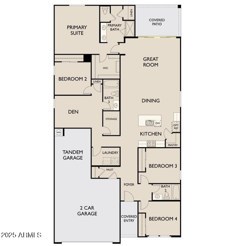 Welcome to this stunning Sage floor plan with a Modern Desert Elevation, offering 2,150 sq. ft. of contemporary living space. This beautiful home features 4 spacious bedrooms, 3 luxurious baths, and a versatile den that can easily serve as an office or additional living area. The 3-car tandem garage provides ample storage and parking options.