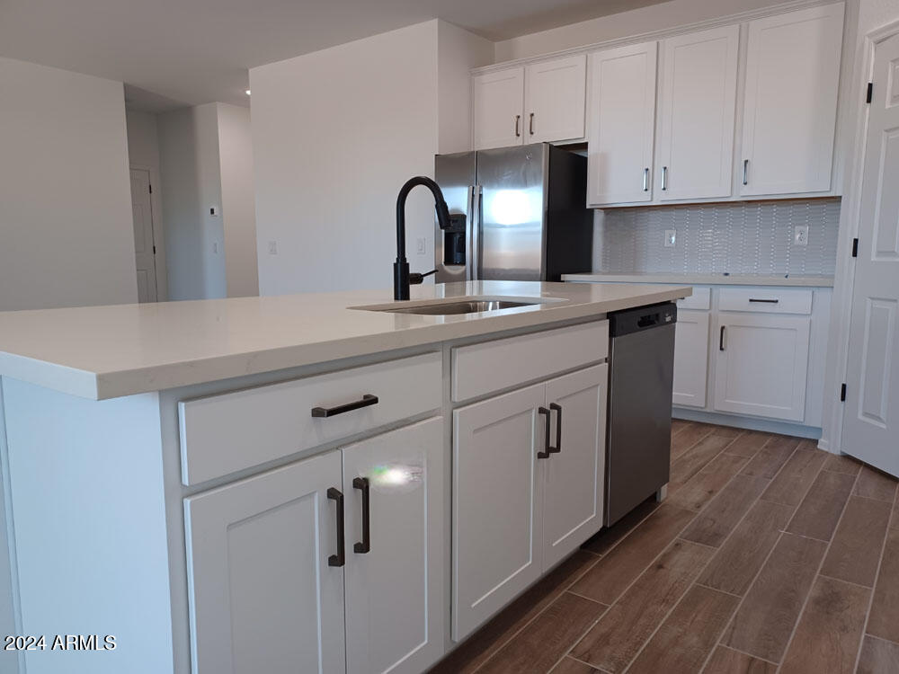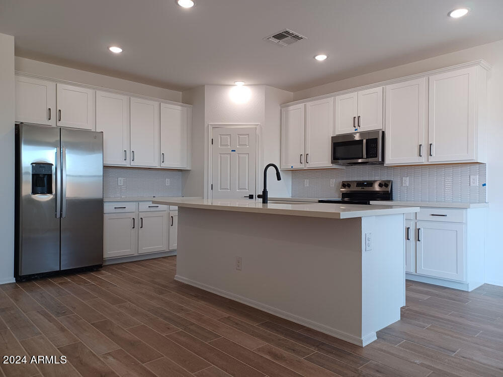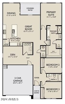 This beautiful new construction single-story residence has 1,953 square feet of thoughtfully designed living space. This charming home features 3 bedrooms and 2.5 bathrooms with the primary suite thoughtfully separated from the additional bedrooms. The open concept floor plan creates a seamless flow throughout the main living areas, ideal for entertaining and everyday living. The kitchen is a chef's delight boasting a large island with Carrara Breeze quartz countertops, Fairview White 42-inch upper cabinets with handles and an eye catching Revalia Remix Calming White Mosaic backsplah. The wood-look tile flooring throughout the main areas adds warmth and style, while the cozy carpeted bedrooms ensure a soft and inviting retreat. The craftsman elevation exterior exudes charm and curb appeal. This home offers tons of outdoor potential as it is on a lot with 9,950 square feet. Think of all the possibilities with the backyard space and the side yards. Don't miss the opportunity to make this exceptional home yours.
