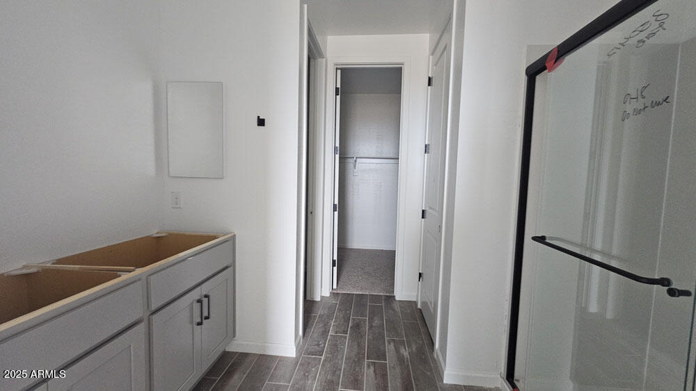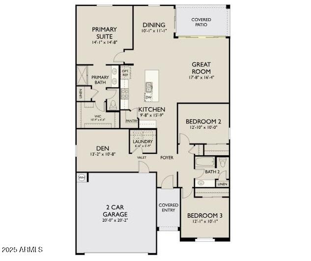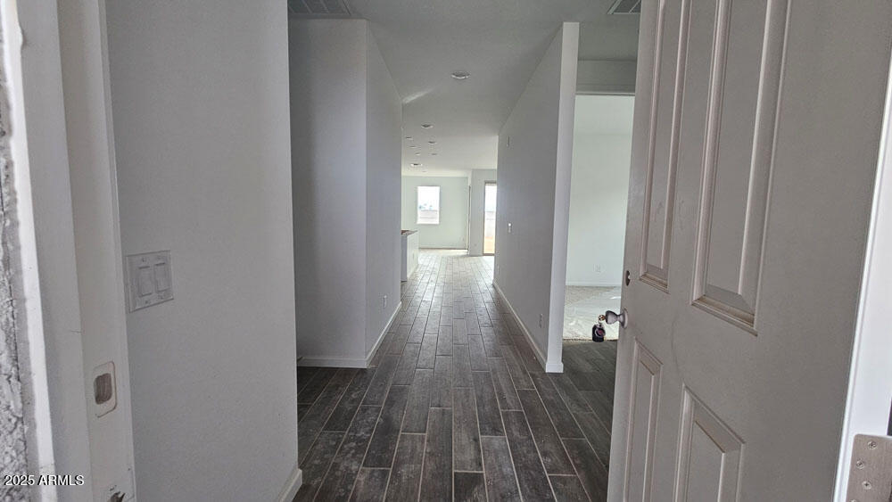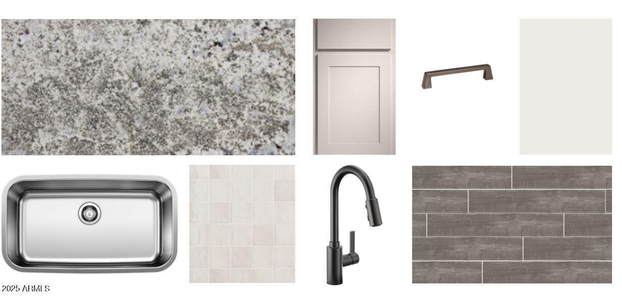 Step into the Marigold floorplan featuring 1,777 sq ft of single-story living with 3 bedrooms, 2 baths, a versatile den, and 2-car garage, wrapped in a upgraded Farmhouse exterior. Theinterior designer cultivated Artisan Collection features gray cabinets, speckled granite countertops, backsplash, wood-look tile flooring, and upgraded fixtures. A 12' sliding glass door connects the great room to outdoor space. Enjoy 8' interior doors, blinds, stainless steel appliances along with a fridge, washer, and dryer, and a soft water loop. Located in Skyline with pool, splash pad, pickleball, volleyball, basketball, tot lots, walking paths, fitness center, and community kitchen--this home is truly move-in ready!
