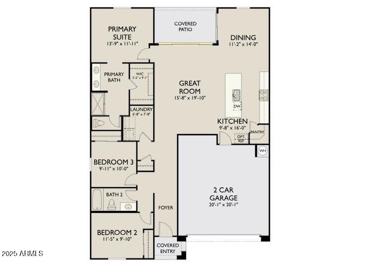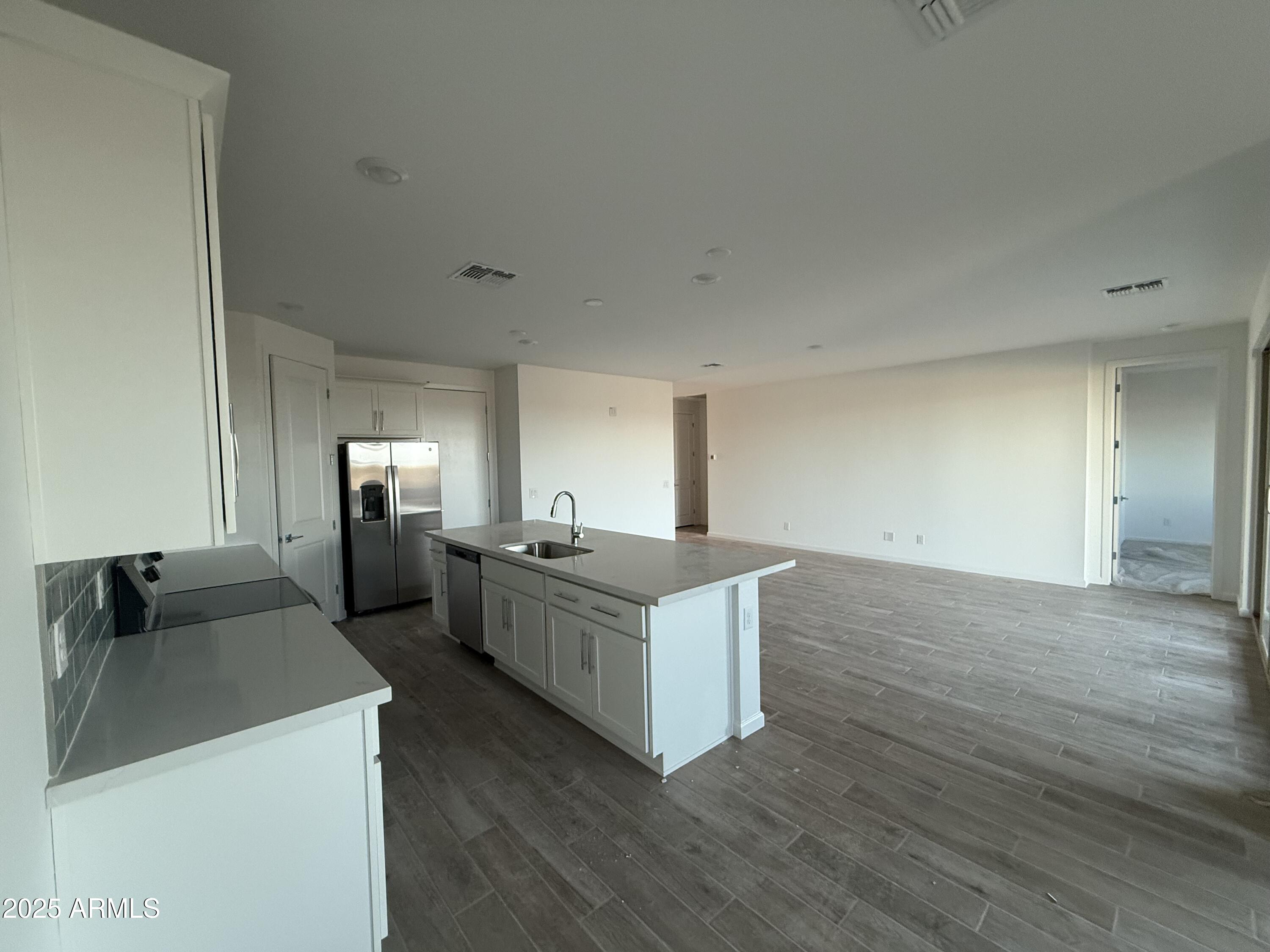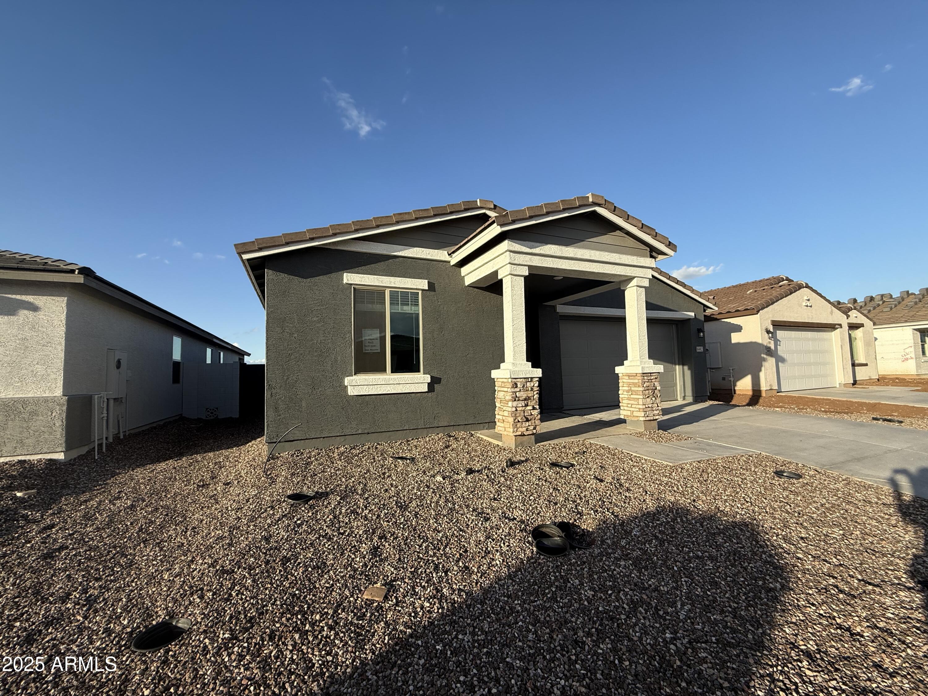 Welcome to the Violet at Skyline--a thoughtfully crafted 1,567 sq ft single-story home featuring 3 bedrooms, 2 bathrooms, and a 2-car garage with Craftsman charm. Bright and open, the layout shines with designer finishes from the Coastal Collection: crisp white cabinetry, quartz countertops, a bold blue backsplash, wood-look tile flooring, and sleek fixtures throughout. A 12' sliding glass door fills the great room with light and extends your living space outdoors. This move-in ready home includes blinds, fridge, washer, dryer, and a soft water loop. Enjoy Skyline's resort-style amenities: pool, splash pad, fitness center, pickleball, volleyball, basketball, tot lots, trails, and a community clubhouse with kitchen!