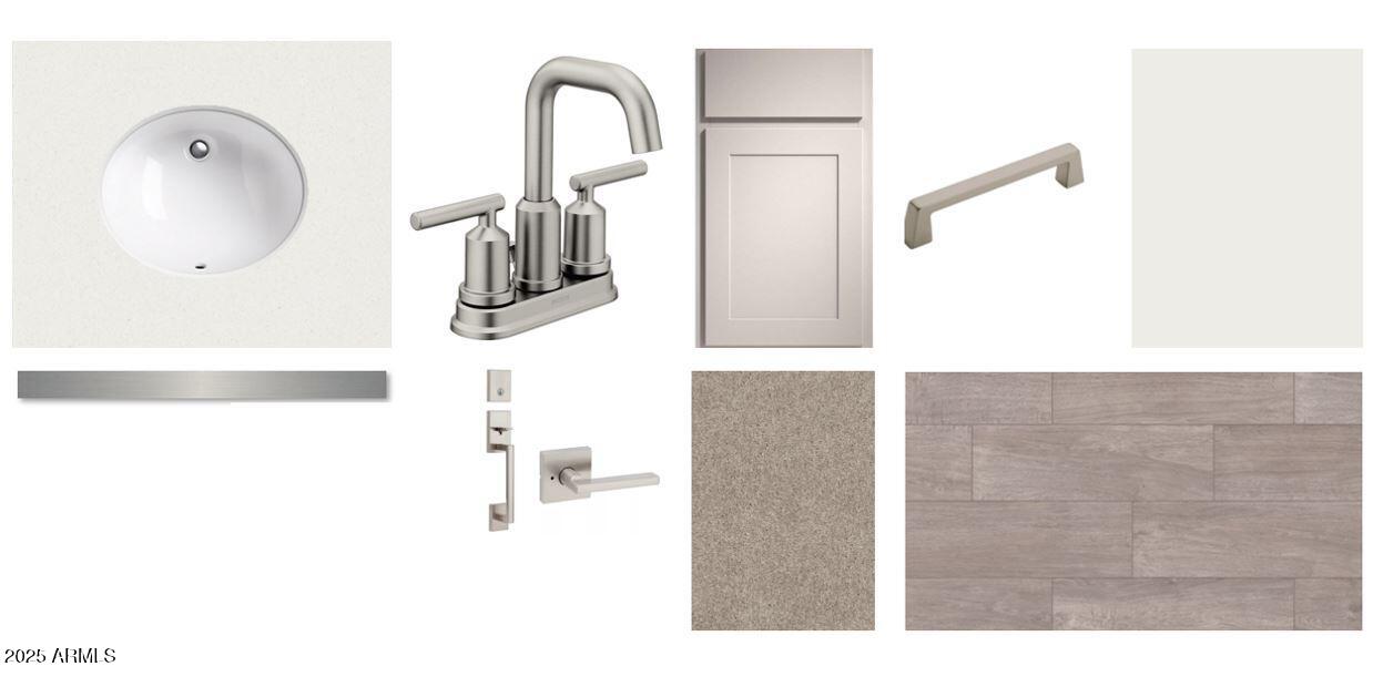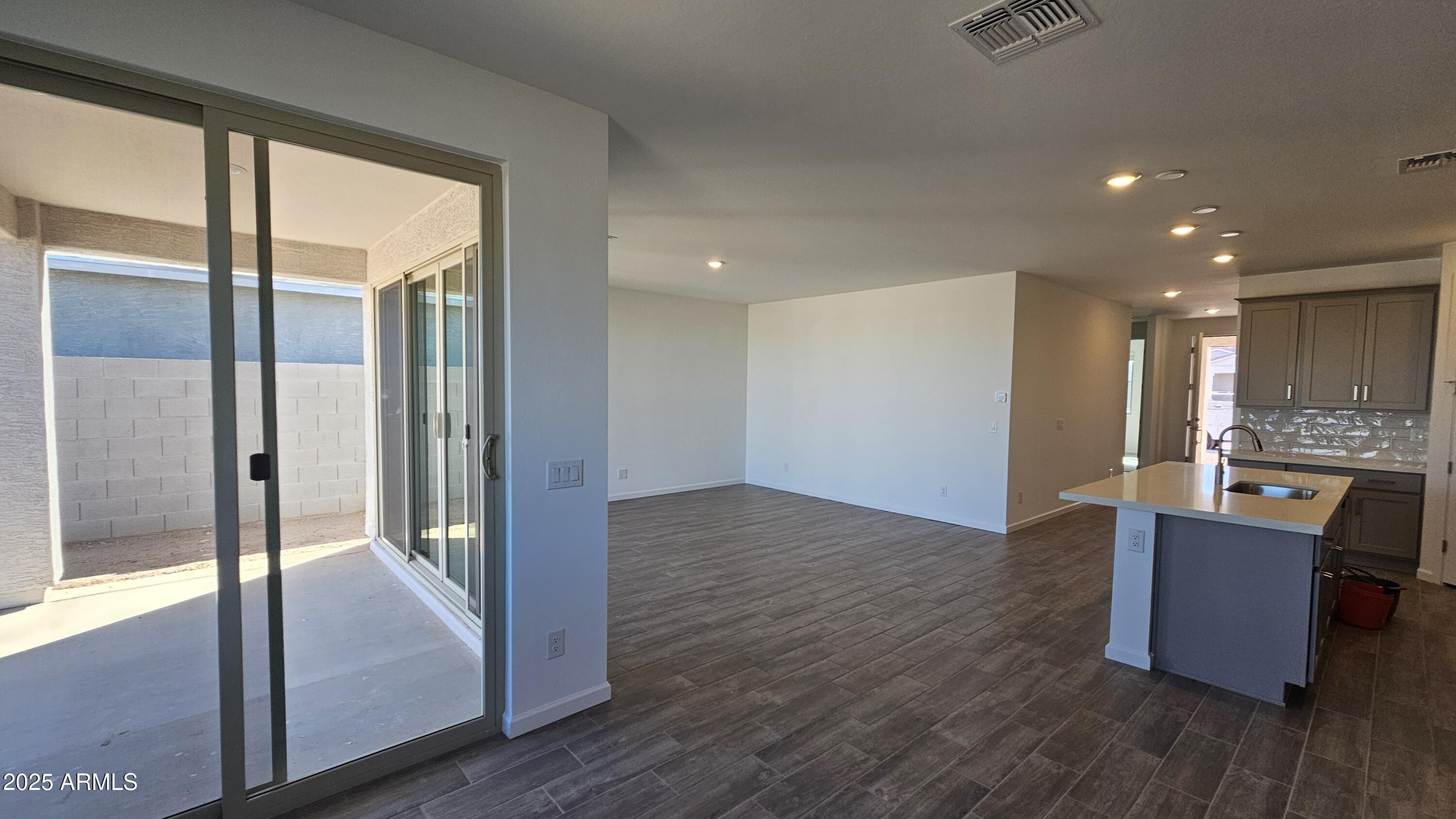 Welcome to the Marigold at Skyline! This 1,777 sq ft single-story home features 3 bedrooms, 2 bathrooms, a flexible den, and a 2-car garage with a stylish Spanish-style exterior. The Milan Collection offers a clean, modern look with gray cabinetry, quartz countertops, satin nickel cabinet pulls, and wood-look tile in all main areas. A 12' sliding glass door brings in natural light and opens to the backyard for seamless indoor-outdoor living. Enjoy 8' interior doors, blinds, stainless steel appliances, refrigerator, washer, dryer, and a soft water loop. Located in Skyline with amenities including a pool, splash pad, pickleball, basketball, volleyball, walking trails, fitness center, tot lots, and a community clubhouse with kitchen. Move-in ready!