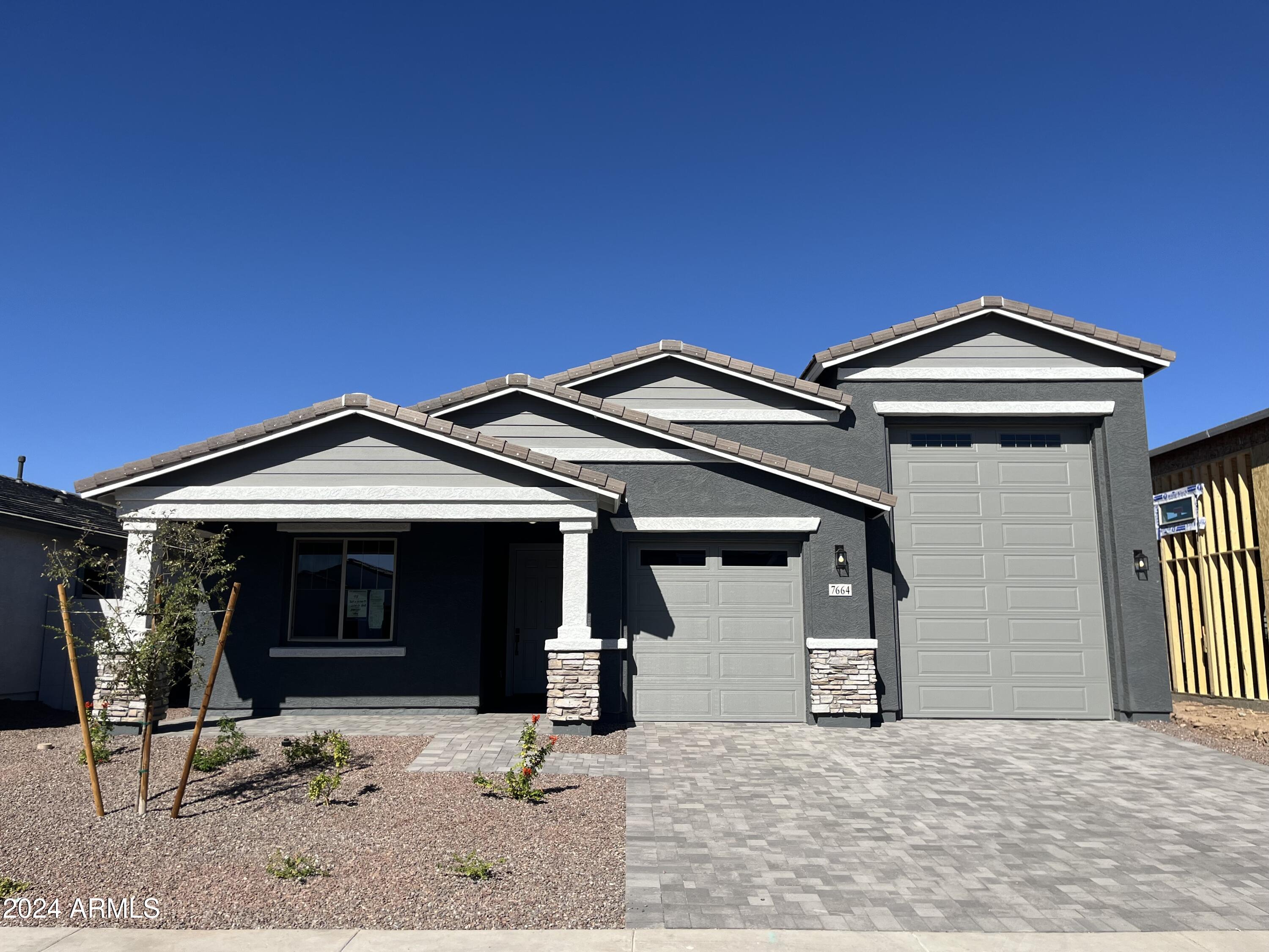 Welcome to Ashton Woods newest community in Peoria -The Sanctuary at Aloravita. This 2,123 Opal floorplan features a Craftsman style elevation and includes 4 bedrooms, 3 baths, a den, plus an RV garage. The impressive kitchen island is perfect for family and friends to gather as it opens to the home's great room for easy entertaining. The kitchen includes matte white appliances with a gas cooktop, apron front undermount sink, under cabinet hood, beautiful painted shaker style cabinets with crown molding, granite countertops, kitchen backsplash, and large pantry. The great room offers a 4 panel center sliding glass door so you can step out into your covered patio to enjoy indoor/outdoor living in your backyard with friends and family. Other features include, 8' interior doors, 9x35 wood plank style floor tile, upgraded carpet/pad, a soft-water loop, and much more! This home also includes an RV garage, perfect for an RV or a car enthusiast! Great location close to dining, freeways, parks, and entertainment!