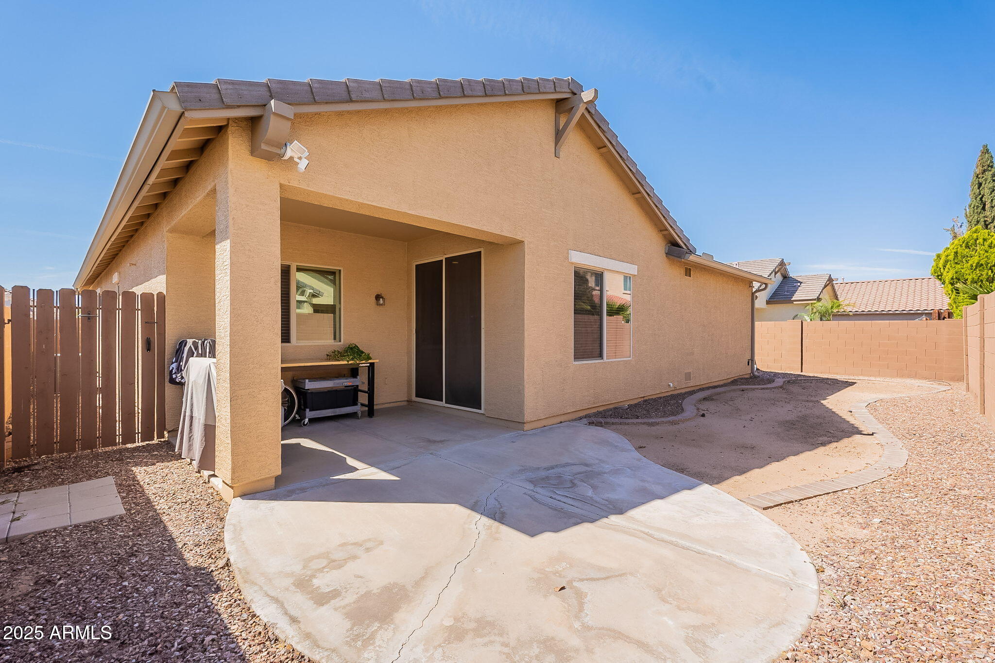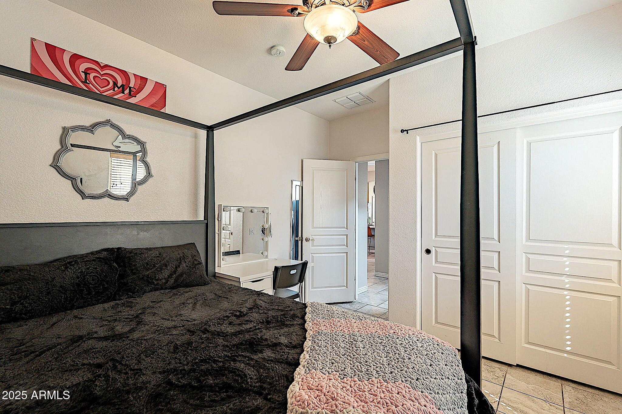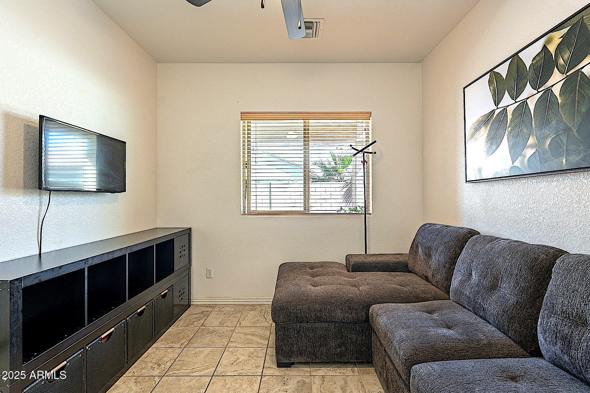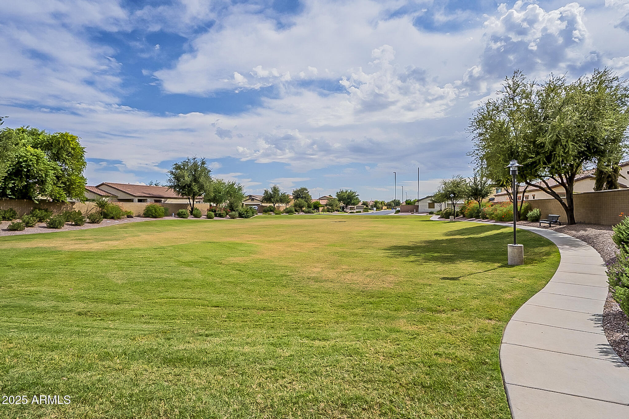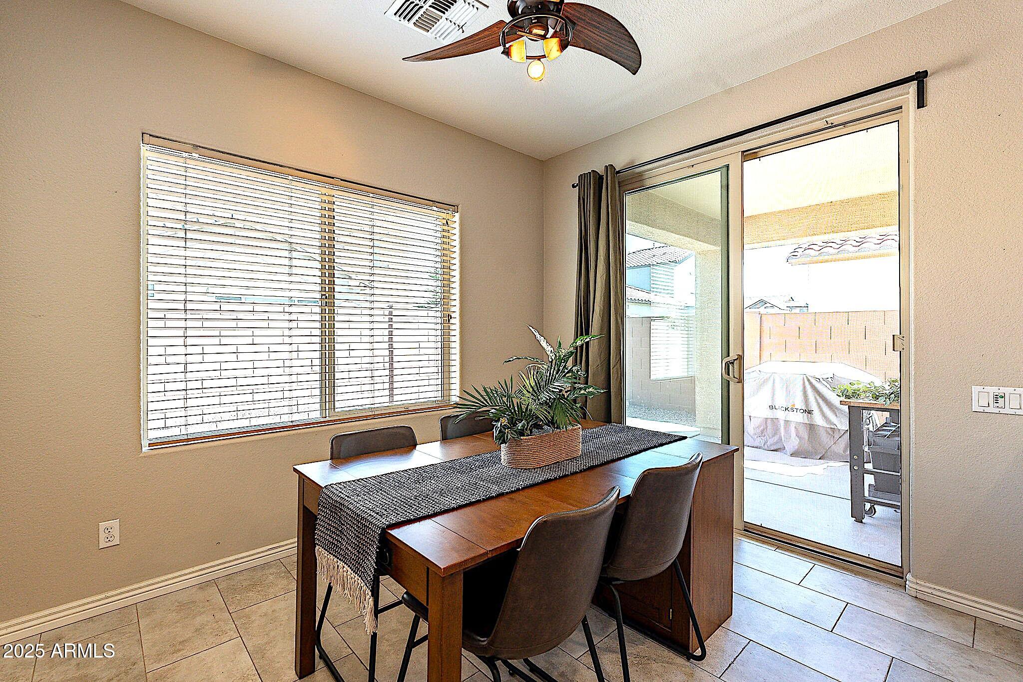 This beautifully maintained single-level home offers 3 bedrooms, 2 baths, and an open-concept greatroom and dining area with sliders leading outside. The kitchen comes complete with black stainless steel appliances, sleek quartz countertops, ample cabinets, and 2 large islands with breakfast bar seating. The private primary suite has a large bedroom, natural lighting, and bathroom with dual sinks, soaking tub/shower combo, and custom-designed walk-in closet. Tile flooring throughout, new AC unit (2023), new water heater (2025), water softener, and RO system. Parking for up to 5 vehicles and epoxy floors and ceiling storage racks in the garage. Nestled in a highly desired gated lake community with lush greenbelts, walking paths, playgrounds, covered ramadas, BBQ grills, & basketball court.