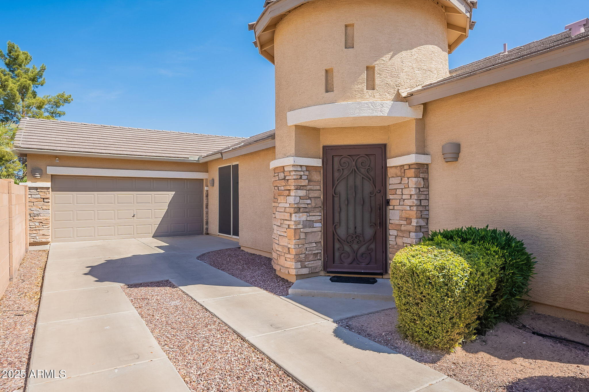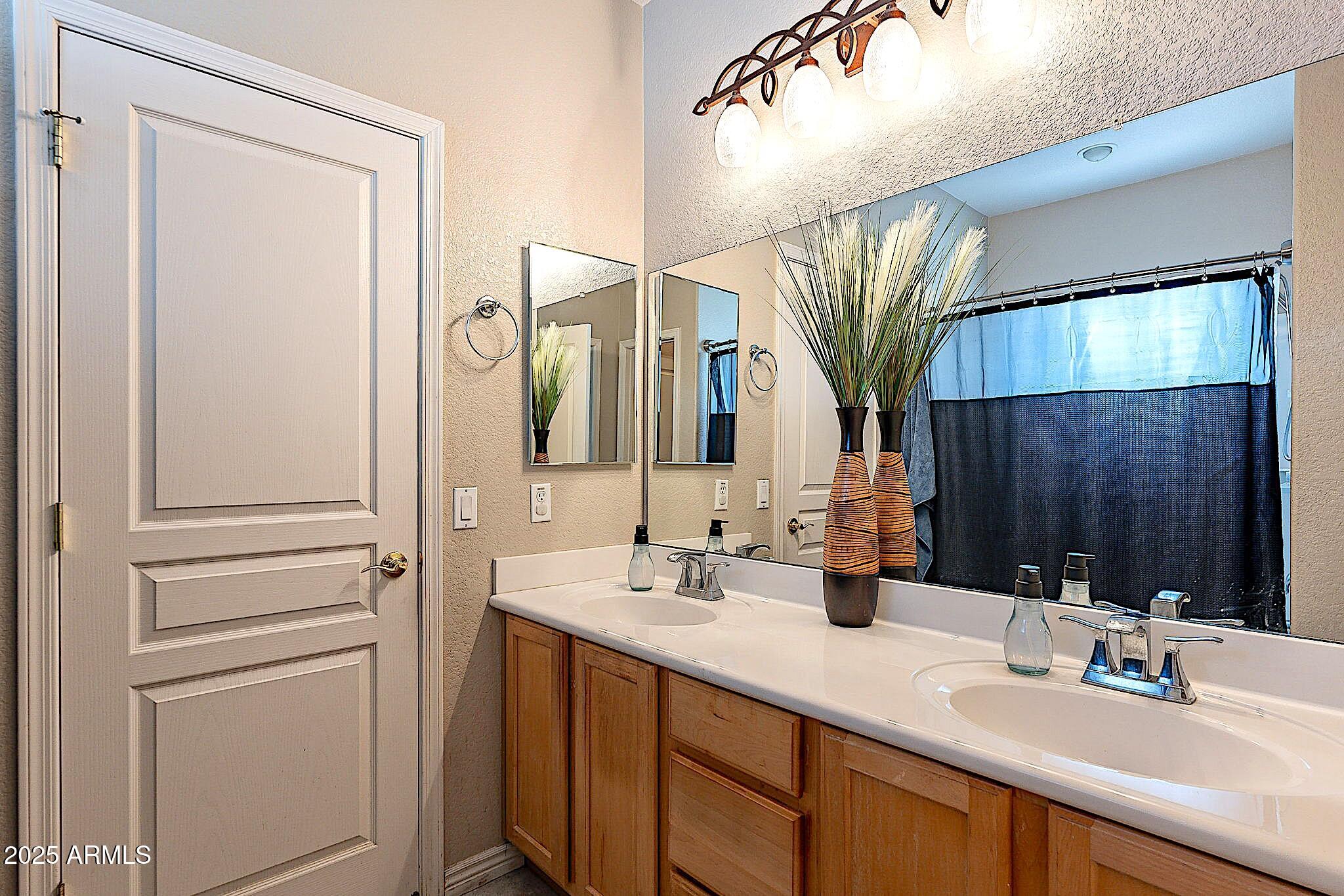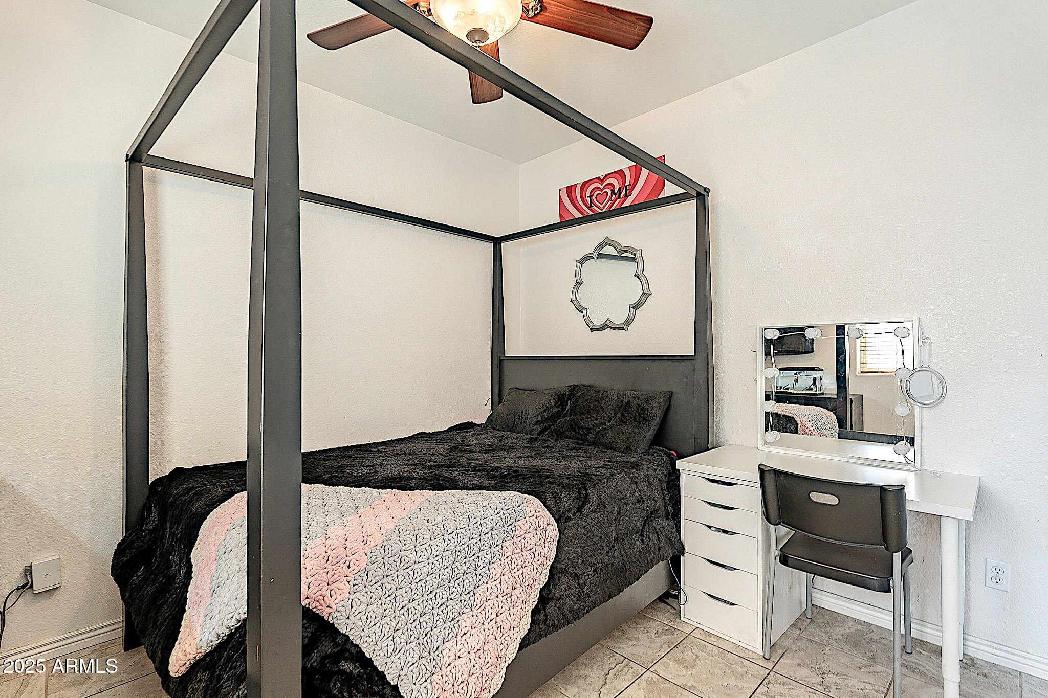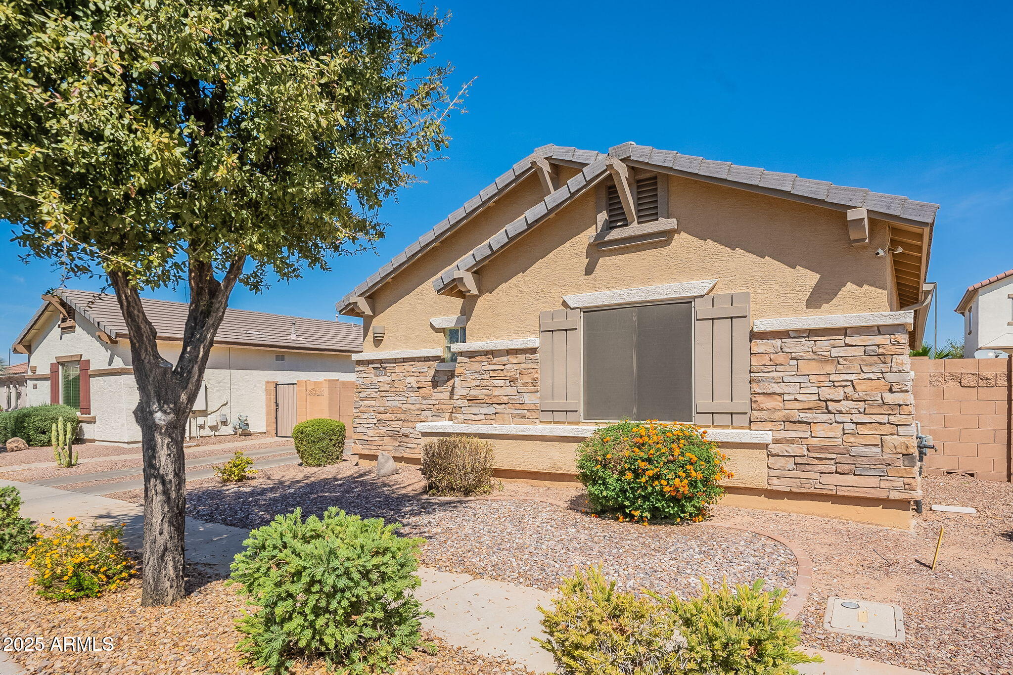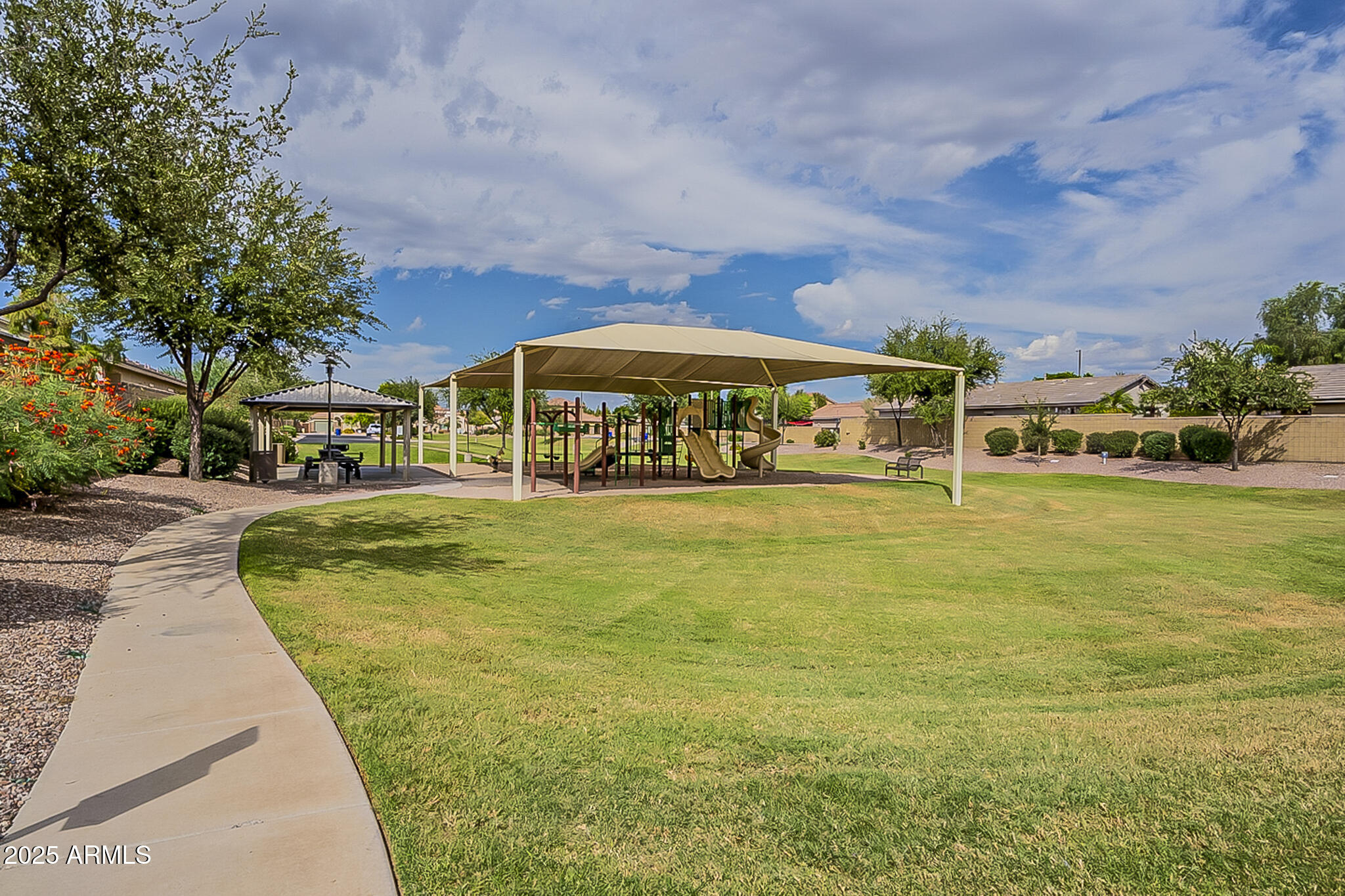 This beautifully maintained single-level home offers 3 bedrooms, 2 baths, and an open-concept greatroom and dining area with sliders leading outside. The kitchen comes complete with black stainless steel appliances, sleek quartz countertops, ample cabinets, and 2 large islands with breakfast bar seating. The private primary suite has a large bedroom, natural lighting, and bathroom with dual sinks, soaking tub/shower combo, and custom-designed walk-in closet. Tile flooring throughout, new AC unit (2023), new water heater (2025), water softener, and RO system. Parking for up to 5 vehicles and epoxy floors and ceiling storage racks in the garage. Nestled in a highly desired gated lake community with lush greenbelts, walking paths, playgrounds, covered ramadas, BBQ grills, & basketball court.